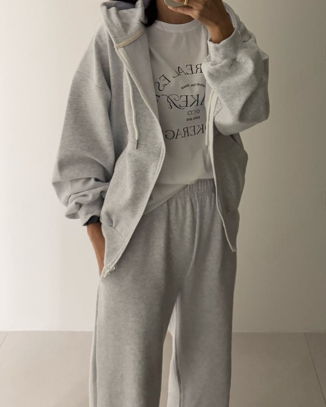 #セットアップ #ボア素材 #ジップアップパーカー #ワイドパンツ #大人カジュアル