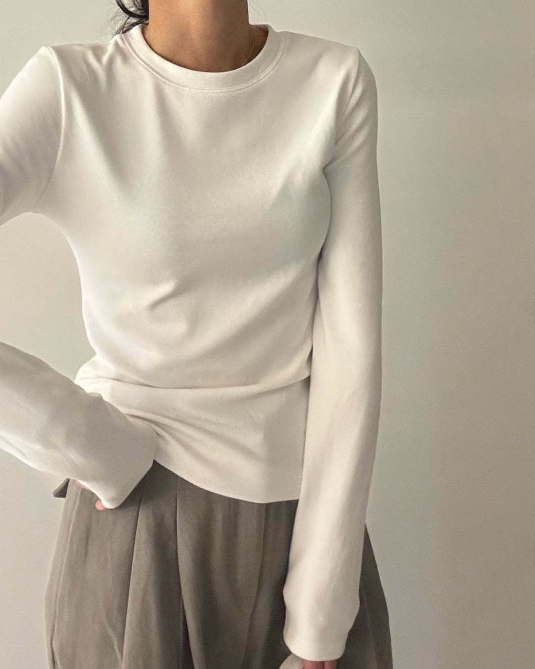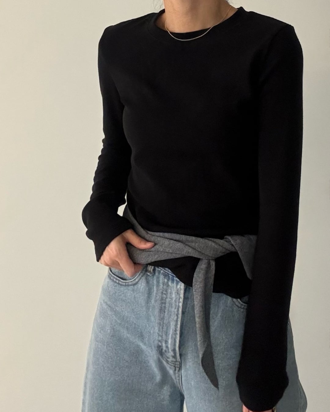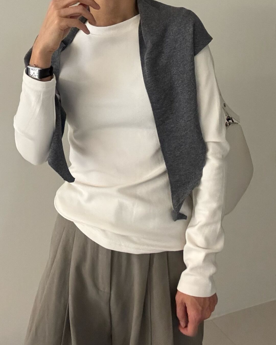 #長袖Tシャツ #ベーシックトップス #ラウンドネック #デイリーウェア #着回しコーデ