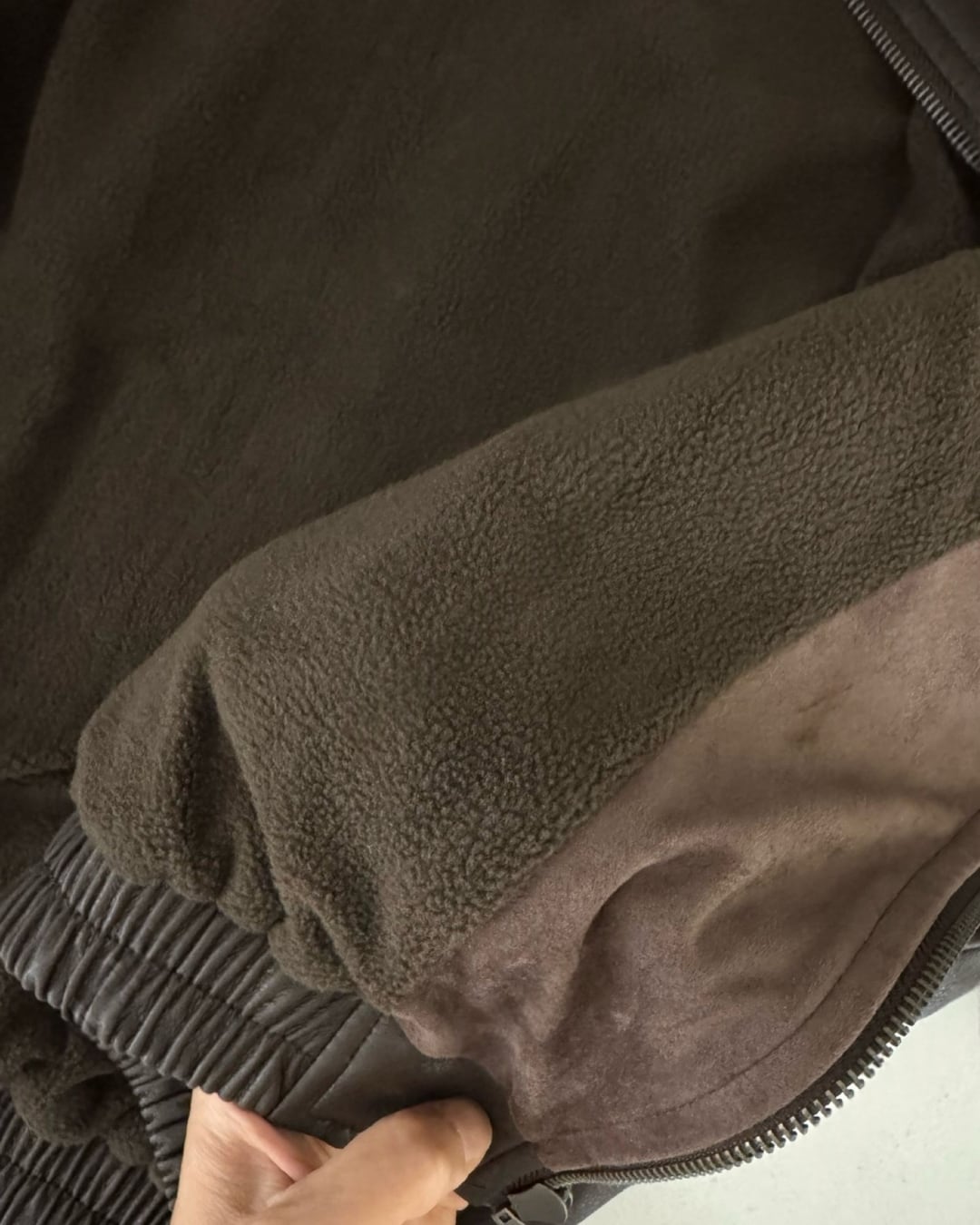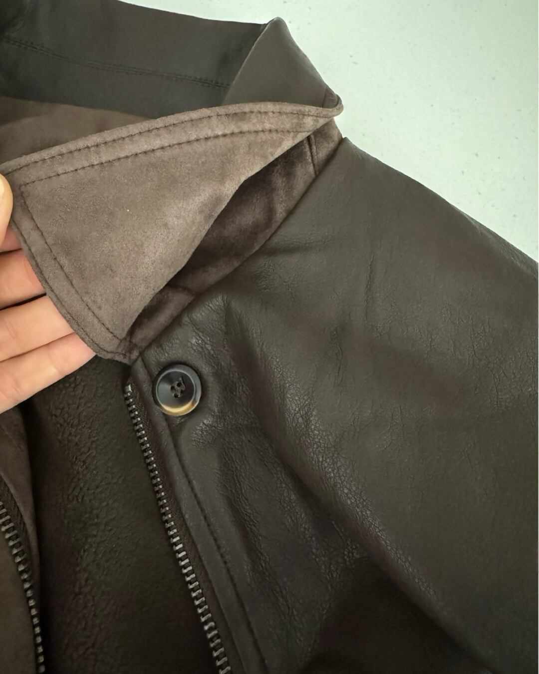 重厚感のあるレザー調素材を使用した、保温性に優れたウォームジャケット。