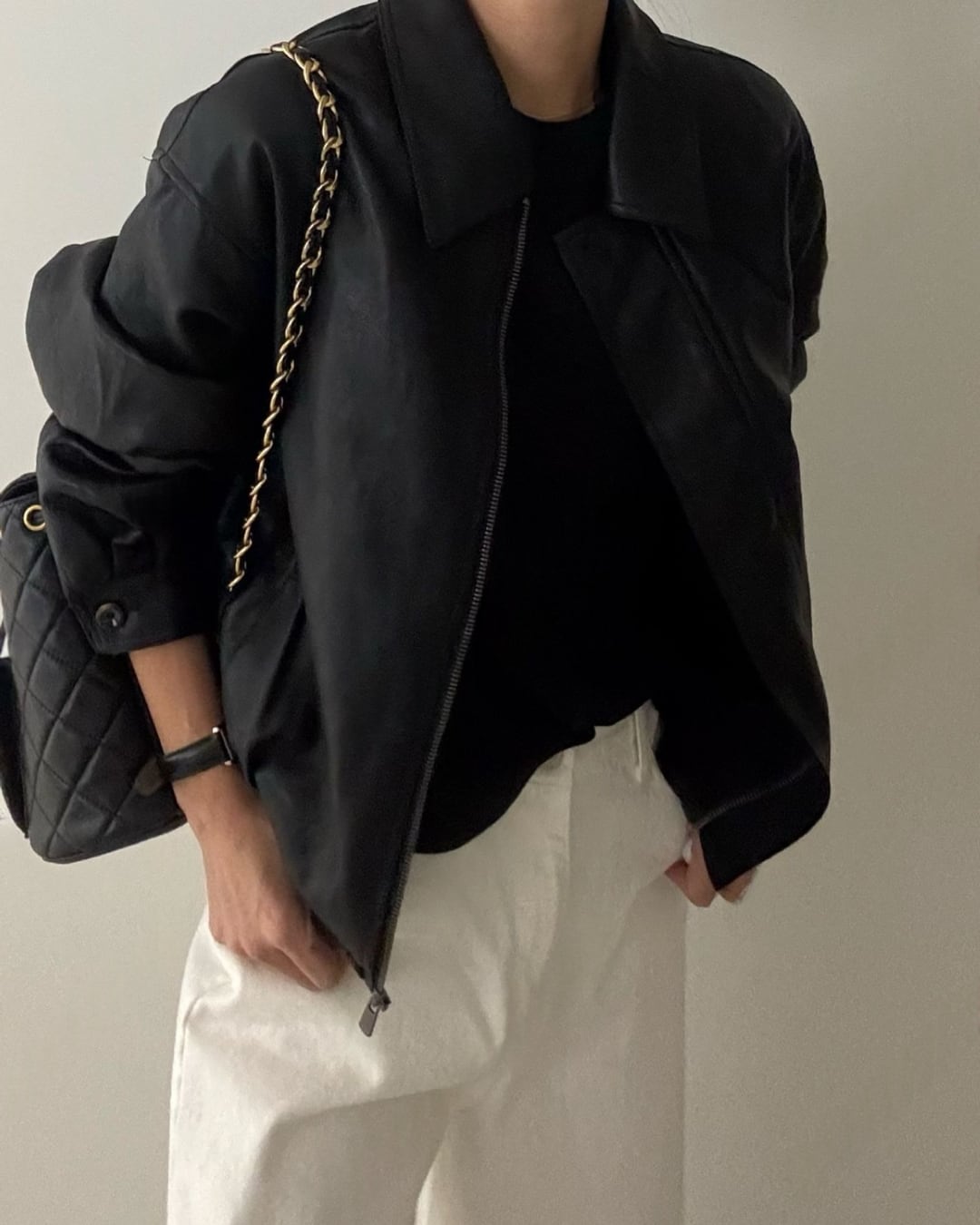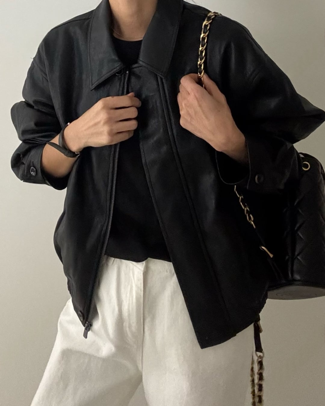#レザージャケット #ウォームアウター #冬ジャケット #シンプルアウター #防寒コーデ