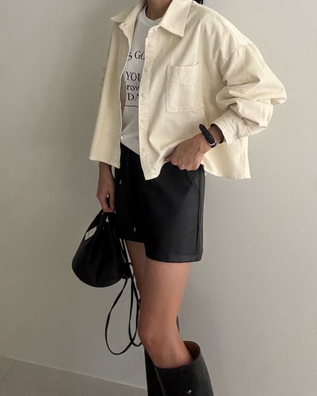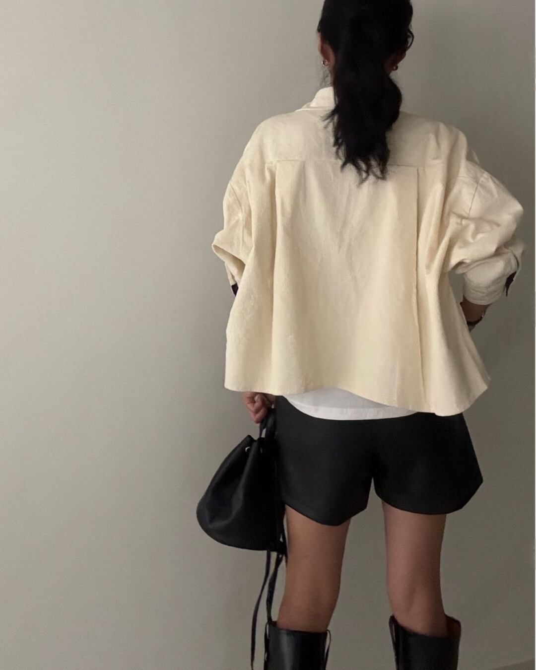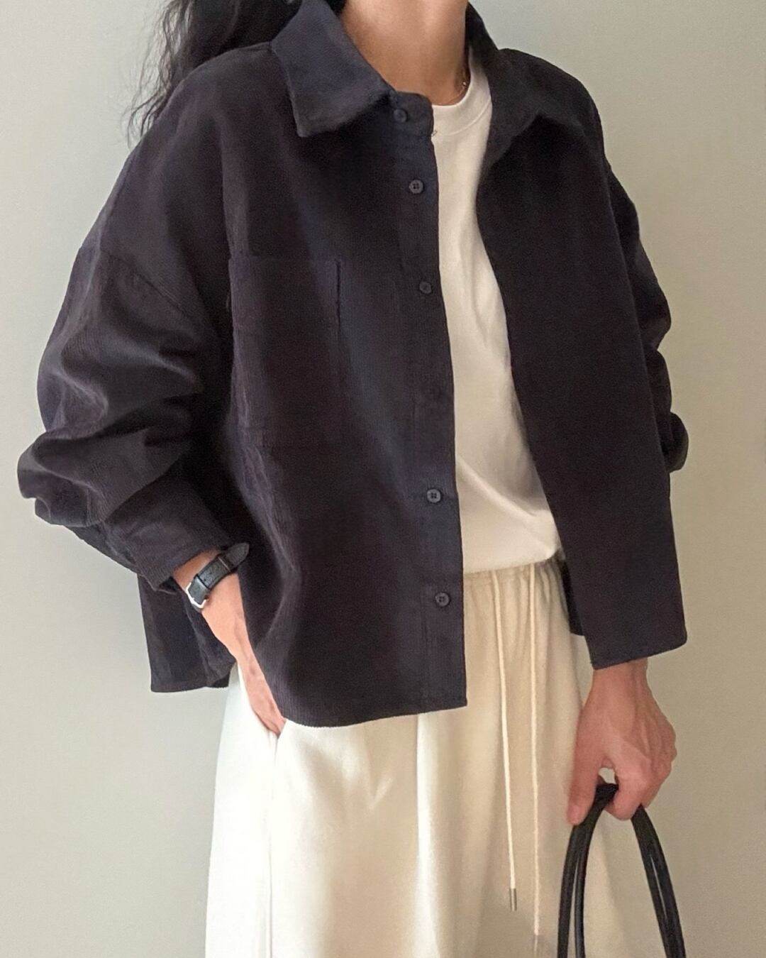 温かみのあるコーデュロイ素材を使用した、トレンド感のあるクロップ丈シャツジャケット。