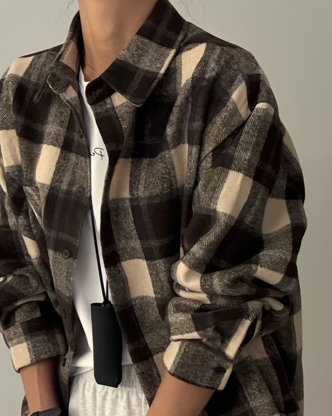 トレンドのチェック柄シャツ。シンプルで着回しやすいデザインで、カジュアルから少しきれいめなスタイルまで幅広く活躍するアイテムです。フリーサイズでゆったりとしたシルエット。