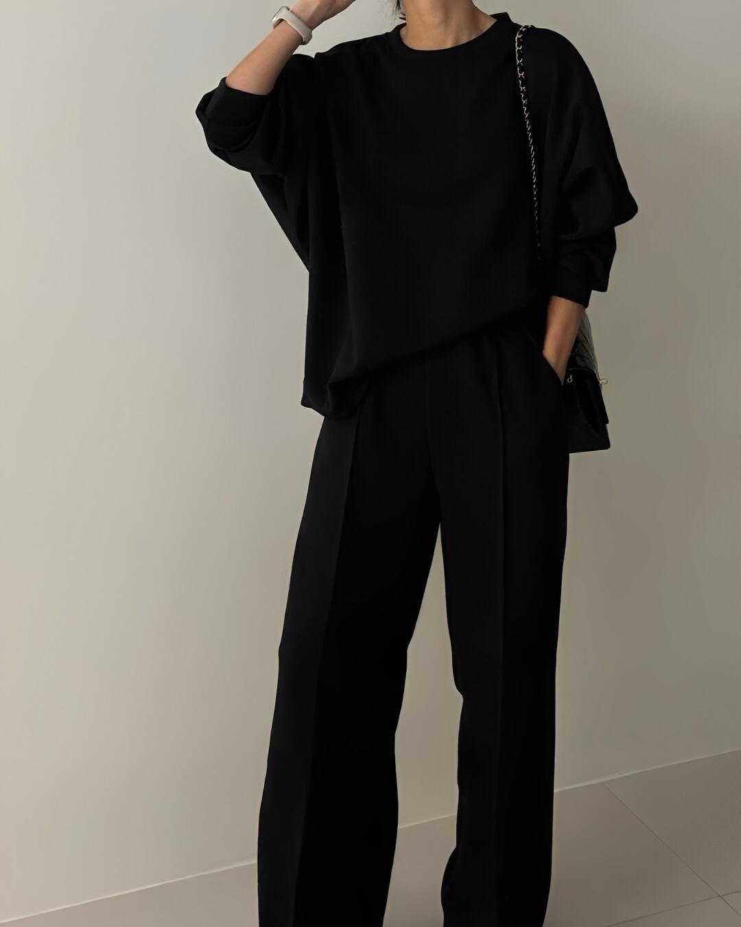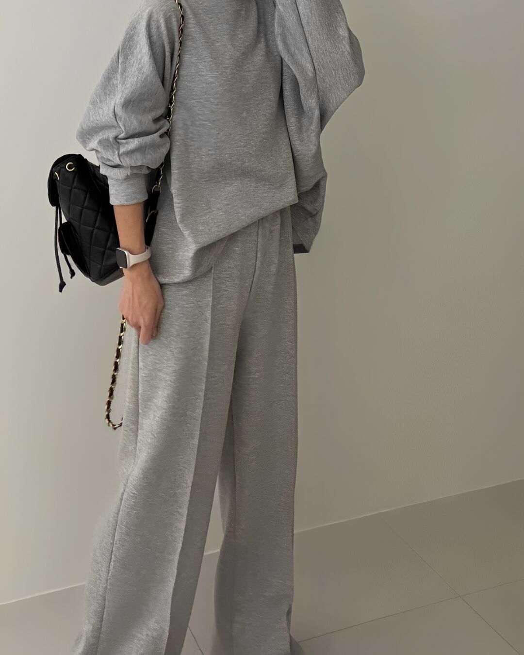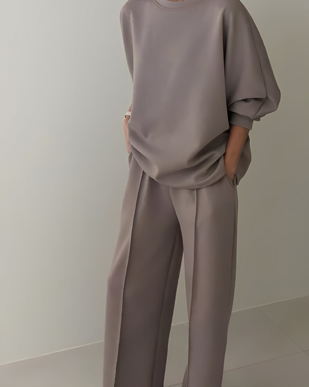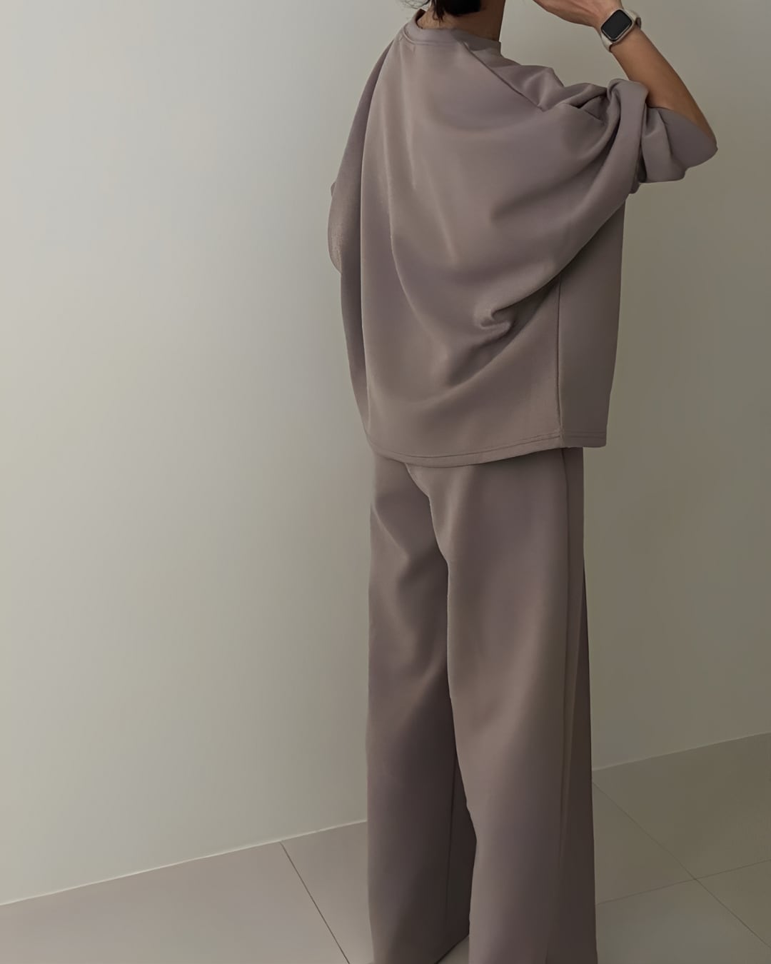 裏地が起毛になっていて肌触りが良く、リラックスした着心地のセットアップ。シンプルでありながら、リラックス感を大切にしたデザインが魅力的です。