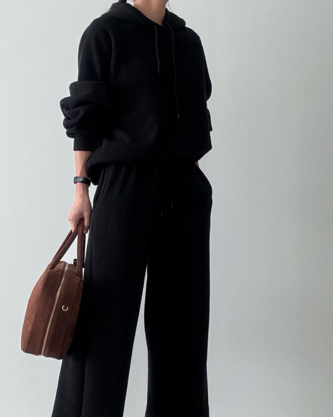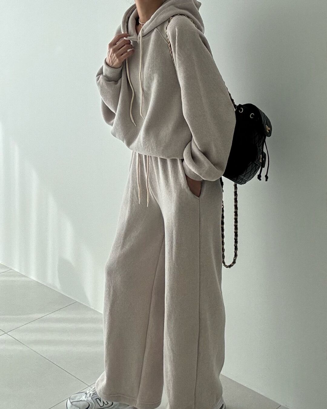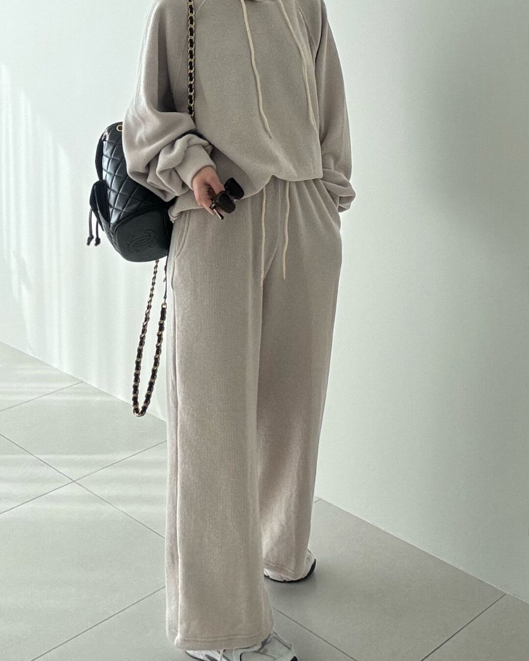 #裏起毛セット #リブニット #フード付き #ワイドパンツ #リラックスコーデ