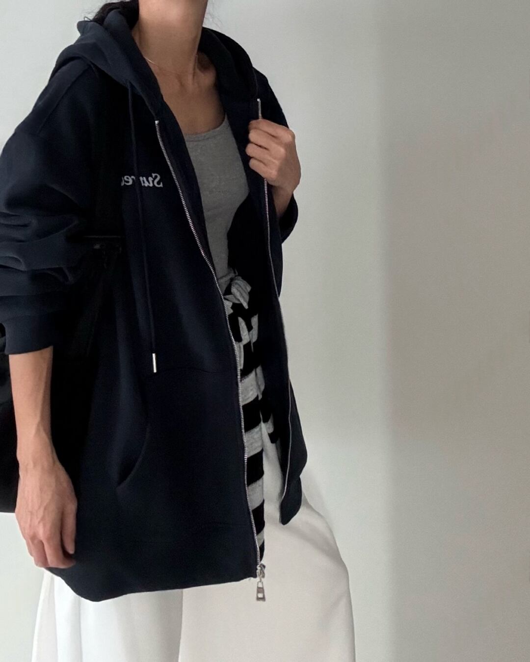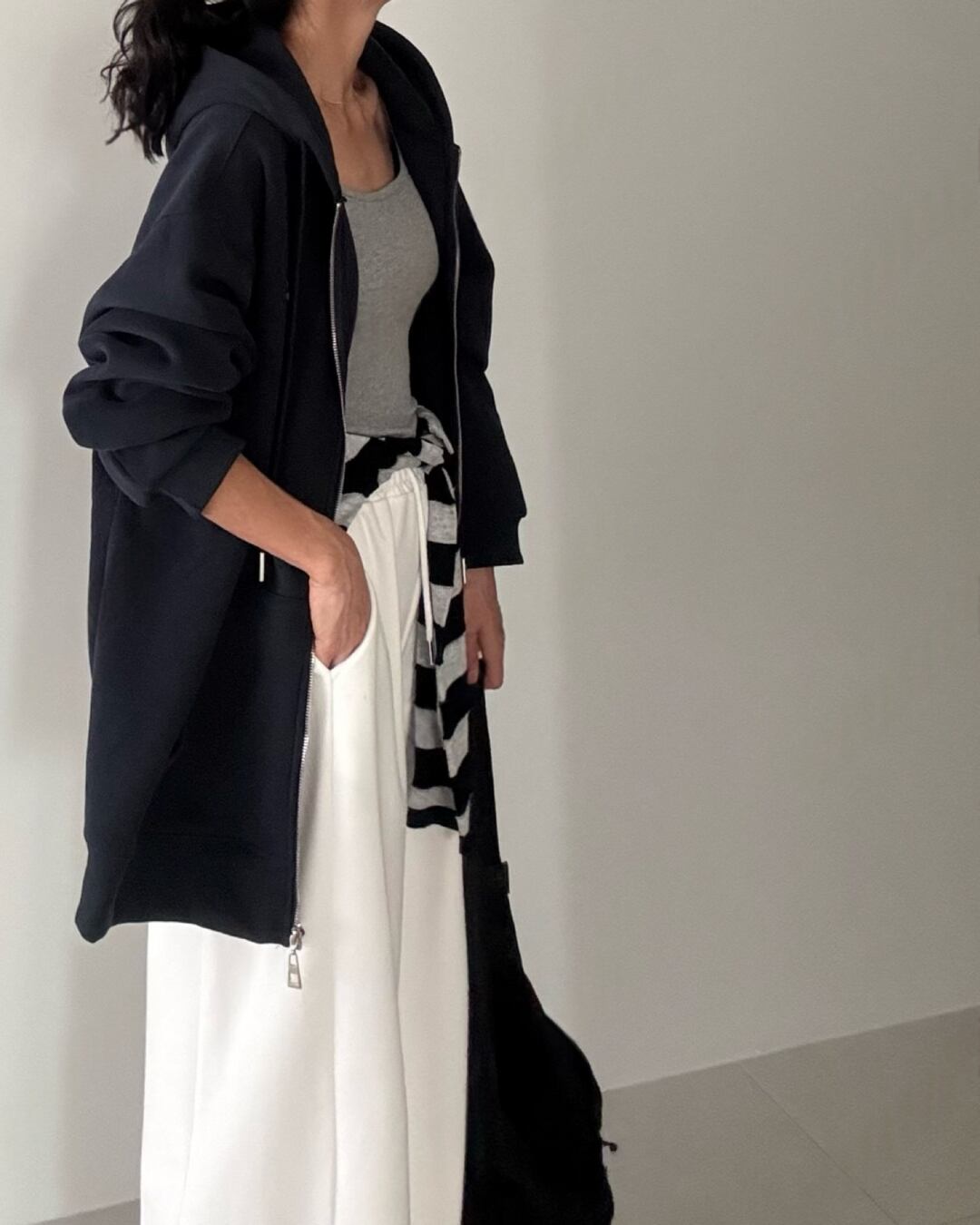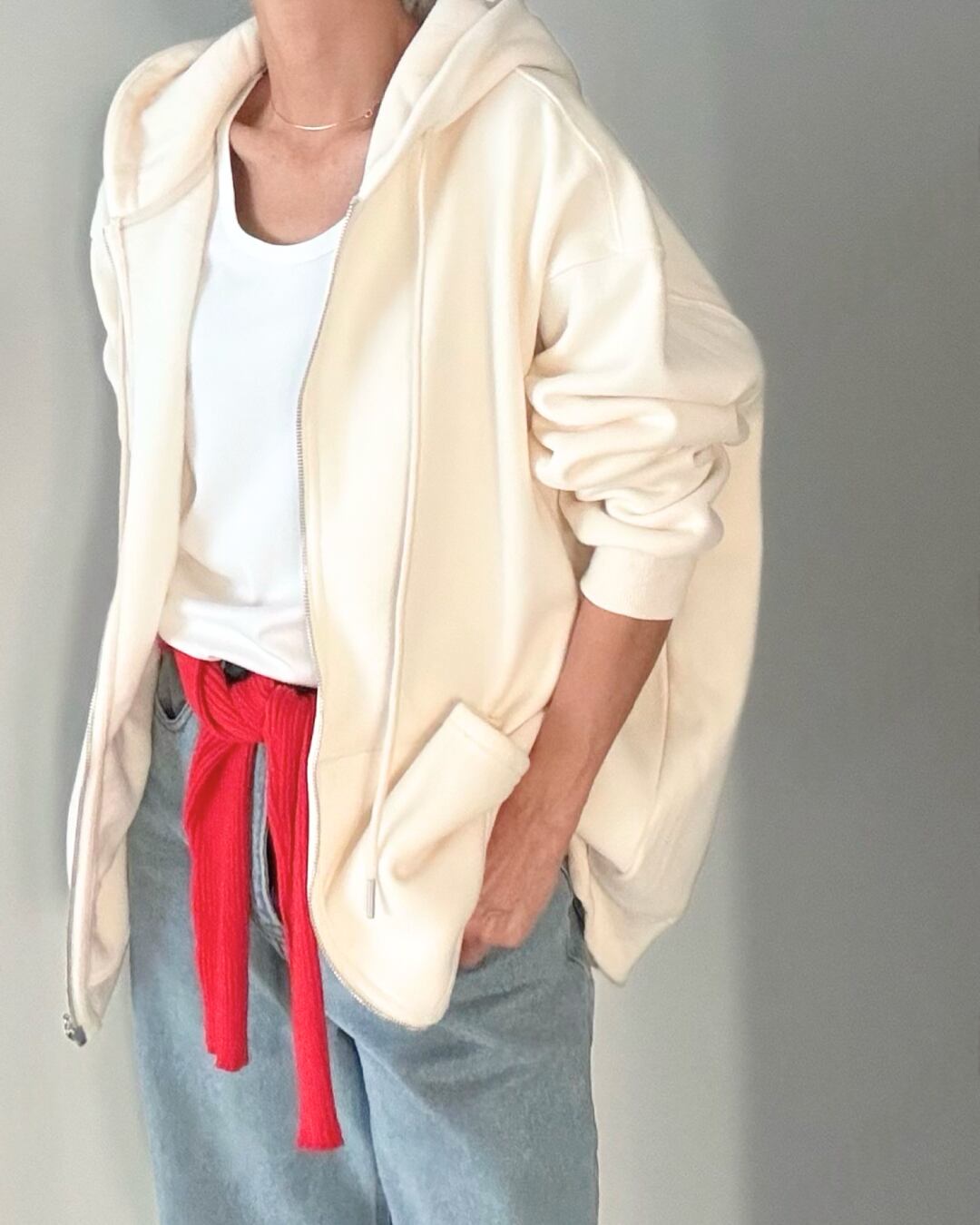 #フードジップアップ #フリース裏地 #カジュアルコーデ #秋冬アウター #シンプルコーデ
