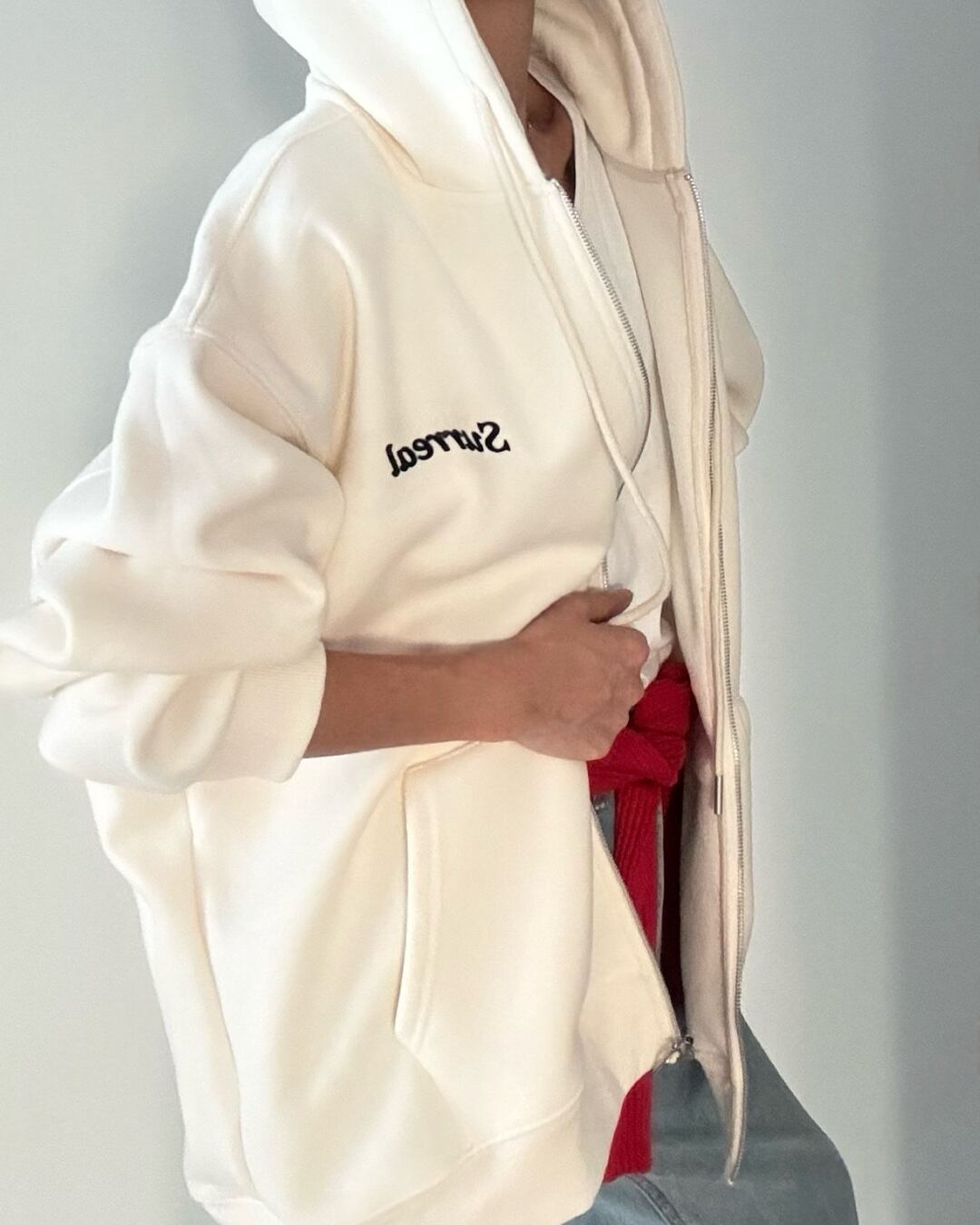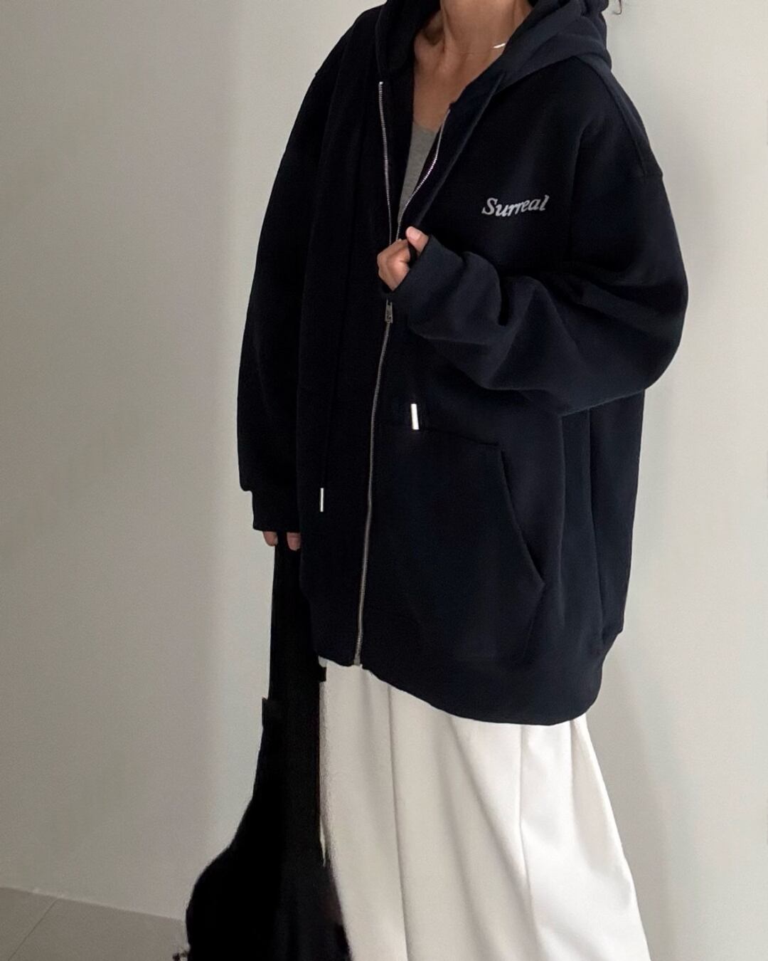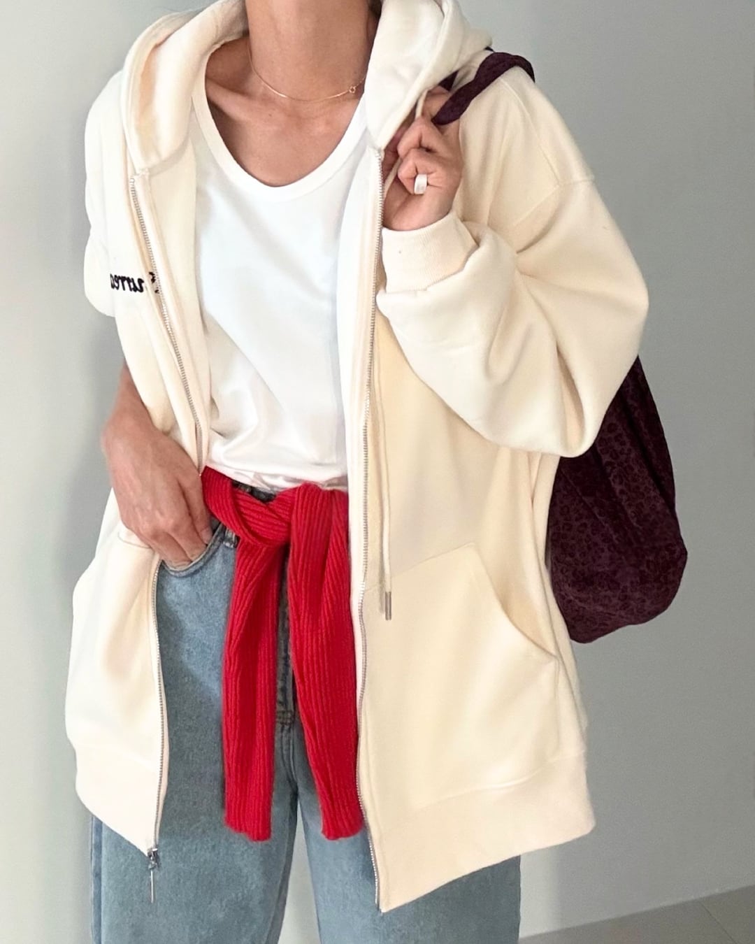 #フードジップアップ #フリース裏地 #カジュアルコーデ #秋冬アウター #シンプルコーデ