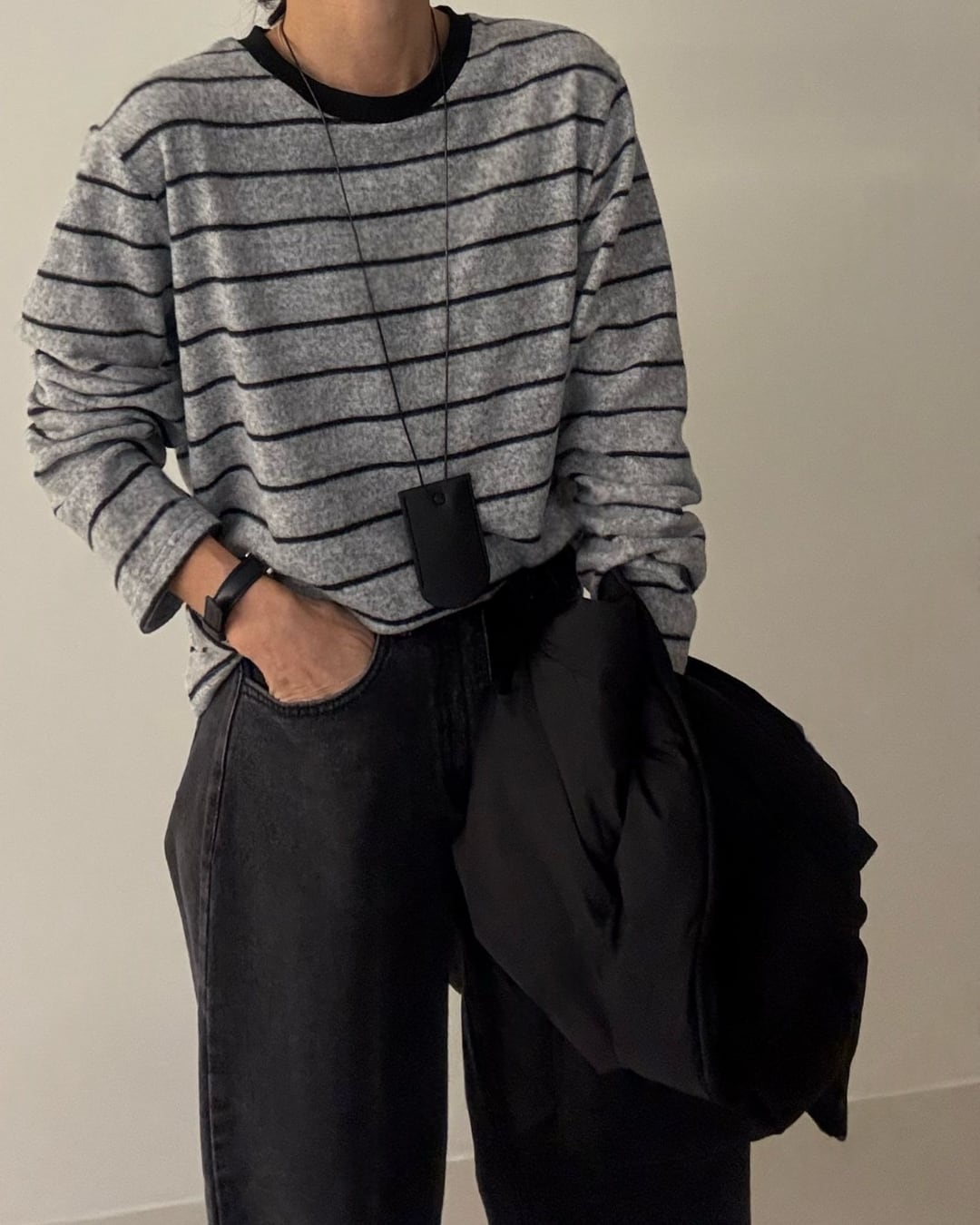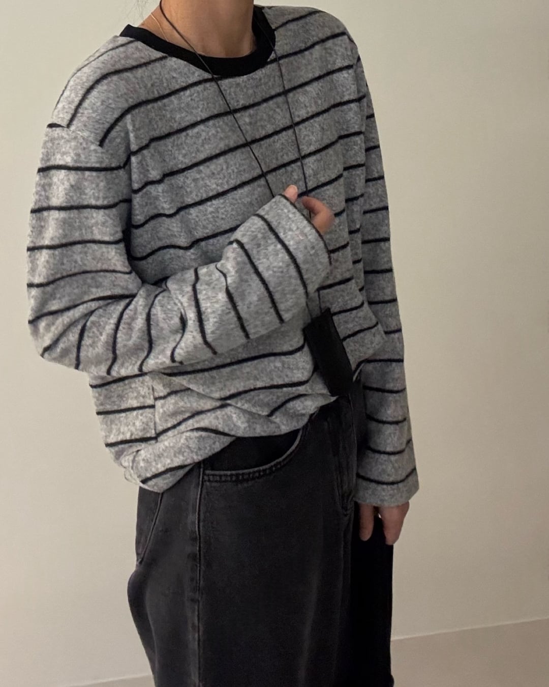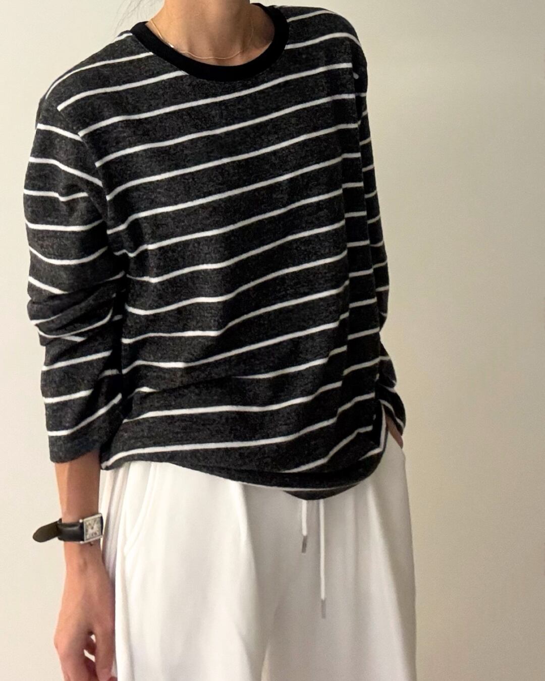 #フリースTシャツ #ストライプTシャツ #カジュアルコーデ #秋冬アイテム #リラックスコーデ