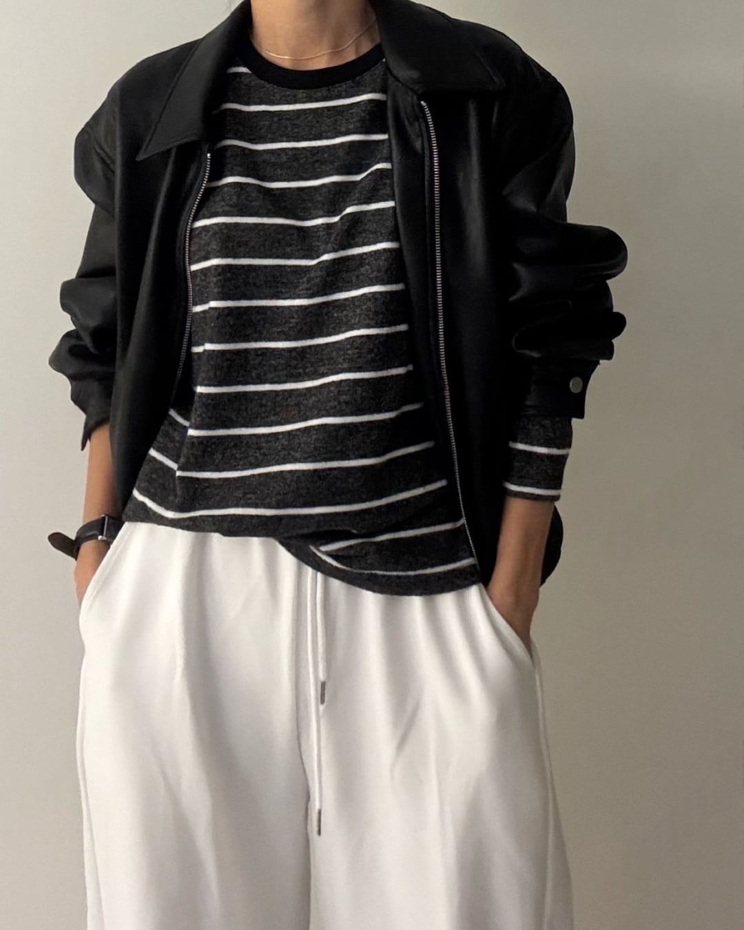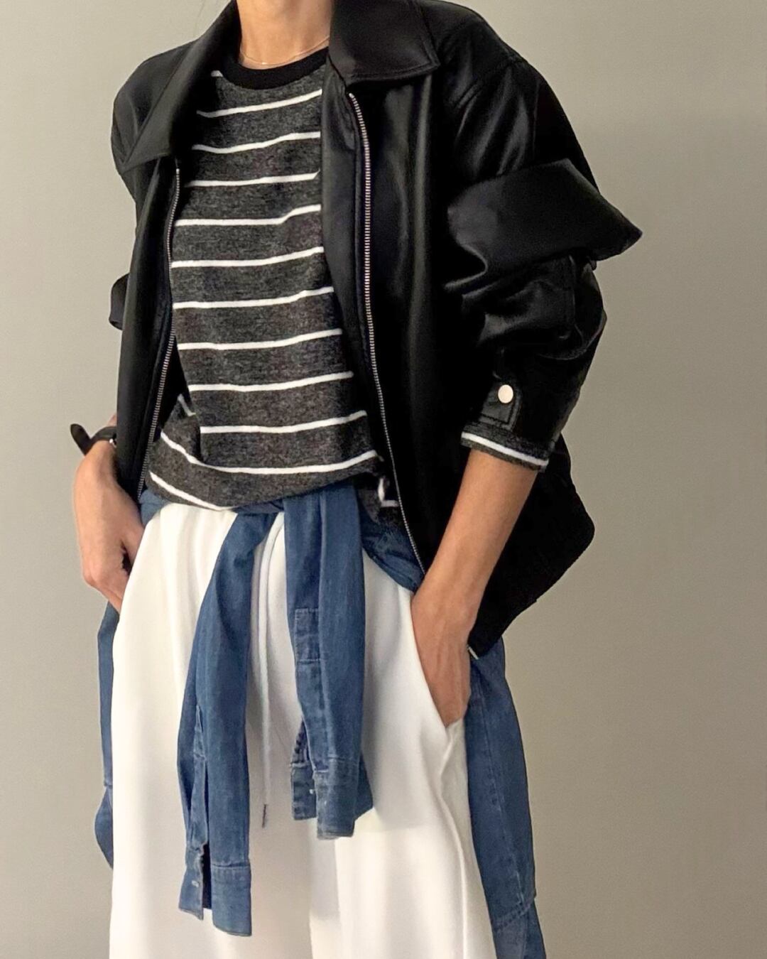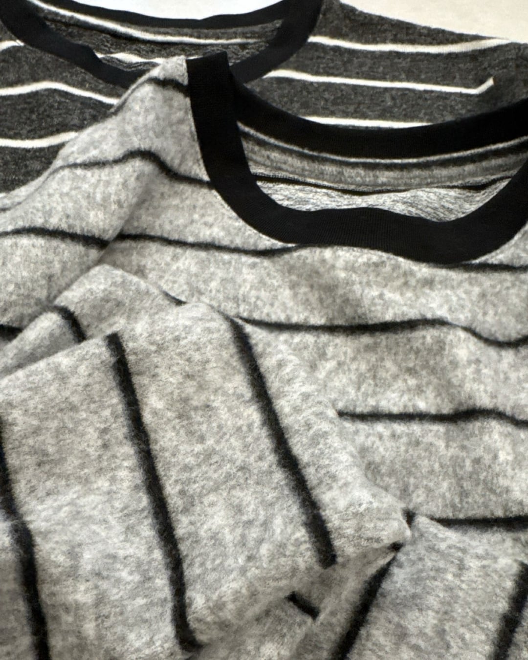 #フリースTシャツ #ストライプTシャツ #カジュアルコーデ #秋冬アイテム #リラックスコーデ