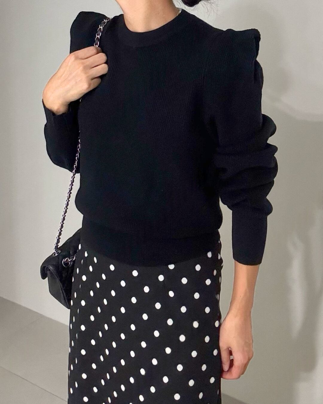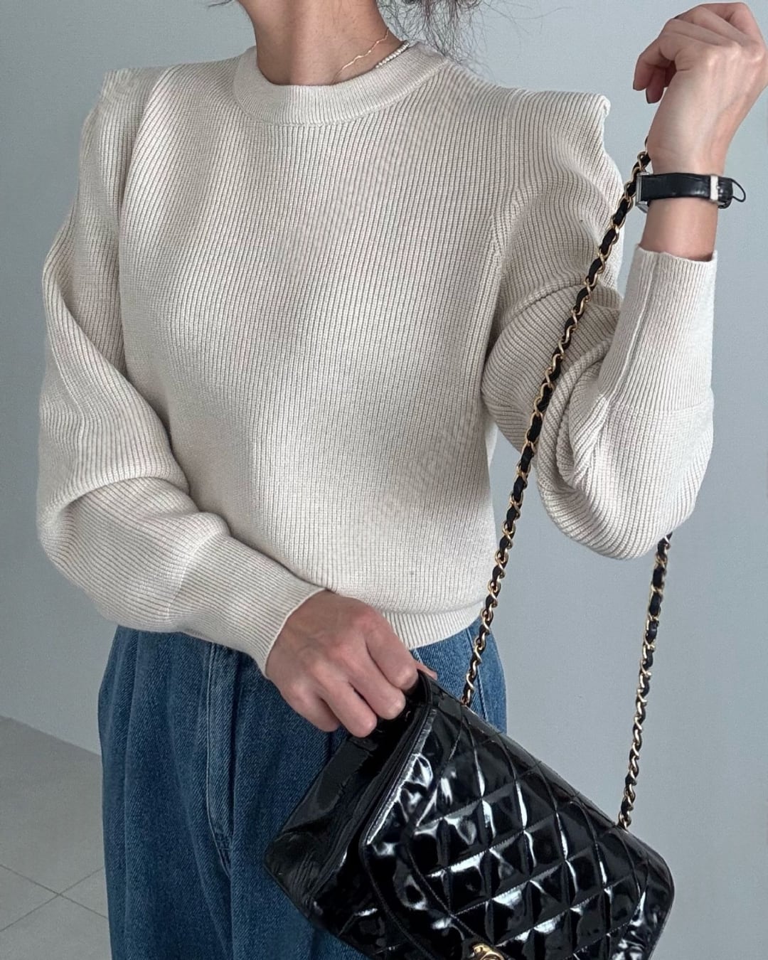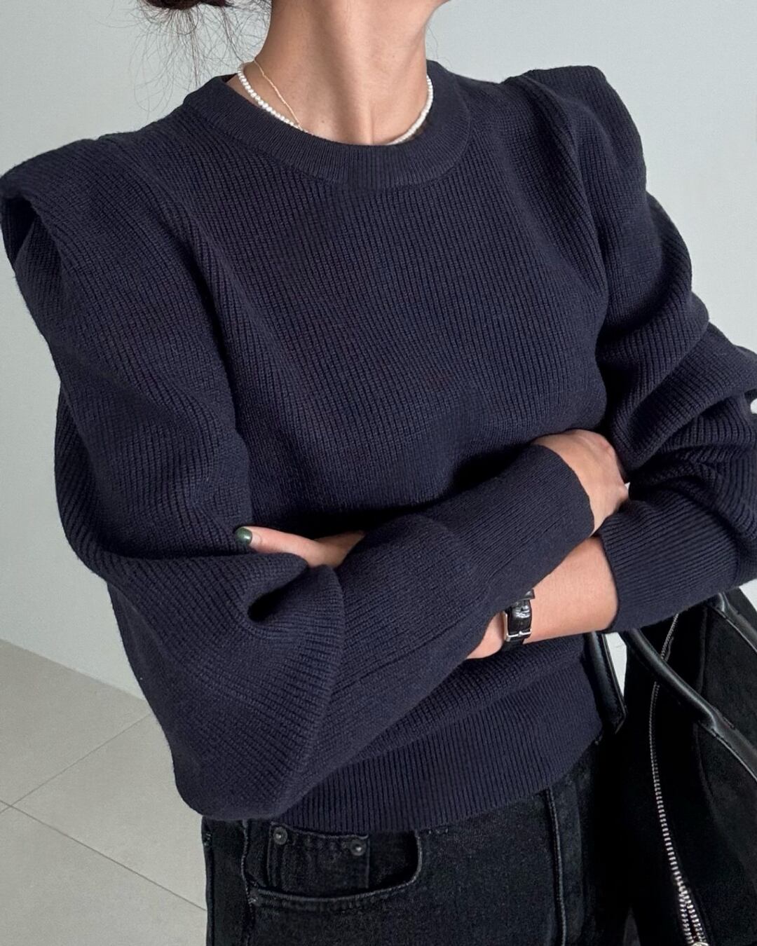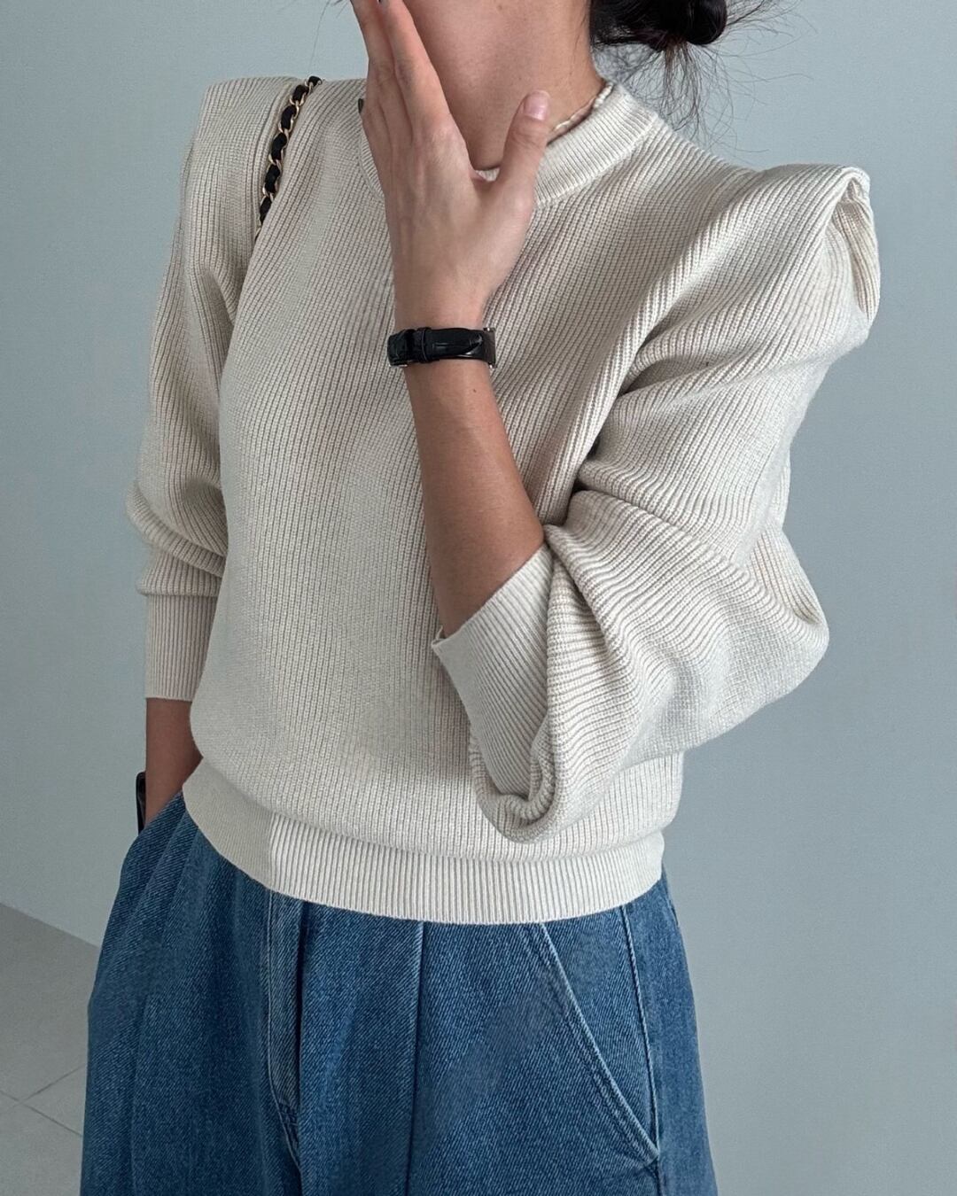 肩部分にデザイン性を持たせた、厚手のショルダーニット。スタイルを引き立てるアクセントで、冬まで活躍する暖かいアイテム。シンプルでありながら、着るだけで華やかさが加わる一着です。
