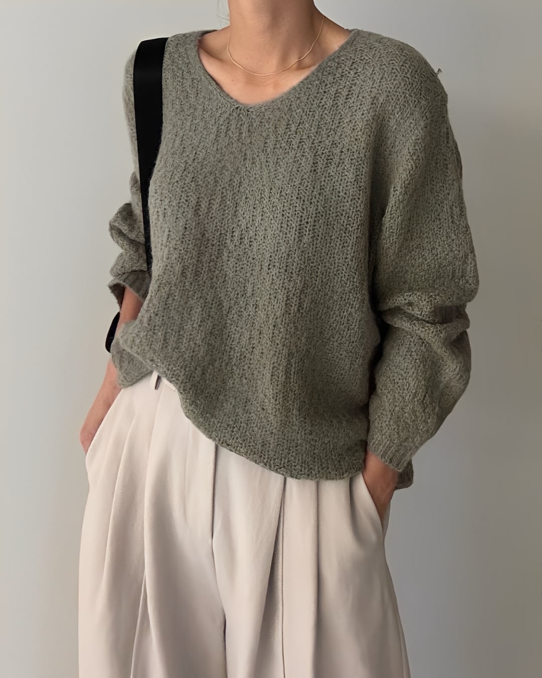 ナイロンやウールをブレンドした柔らかい素材で、軽やかな着心地を実現。シンプルでありながらも、どんなコーディネートにも合わせやすい洗練されたVネックニットです。