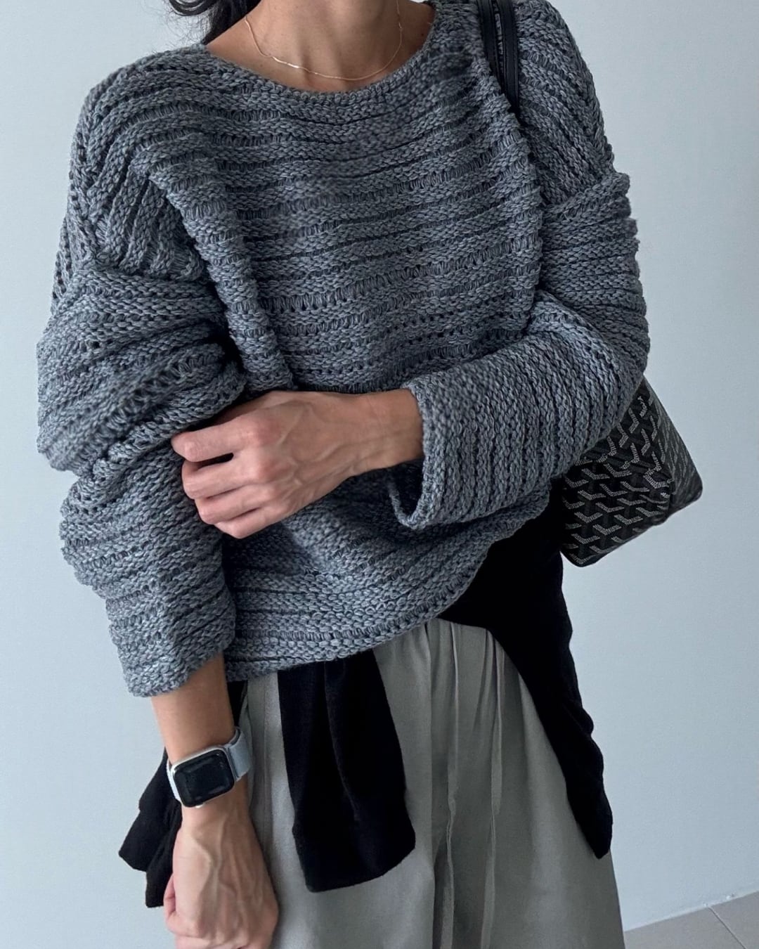 #ルーズフィット #リラックススタイル #ニットセーター #シンプルデザイン #秋冬コーデ