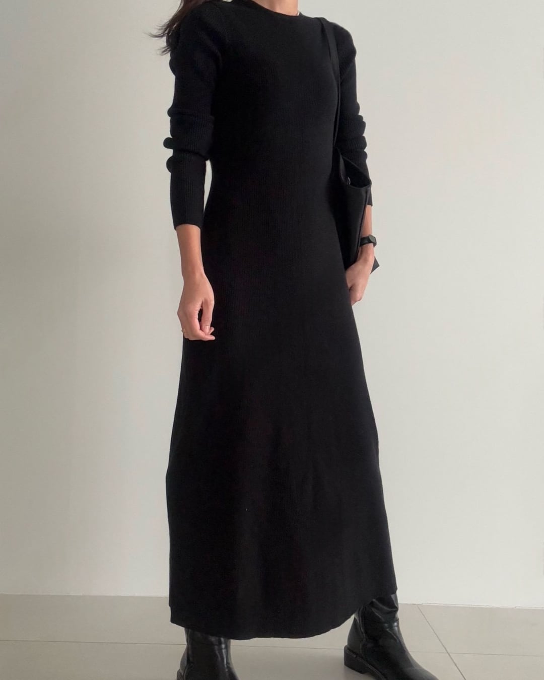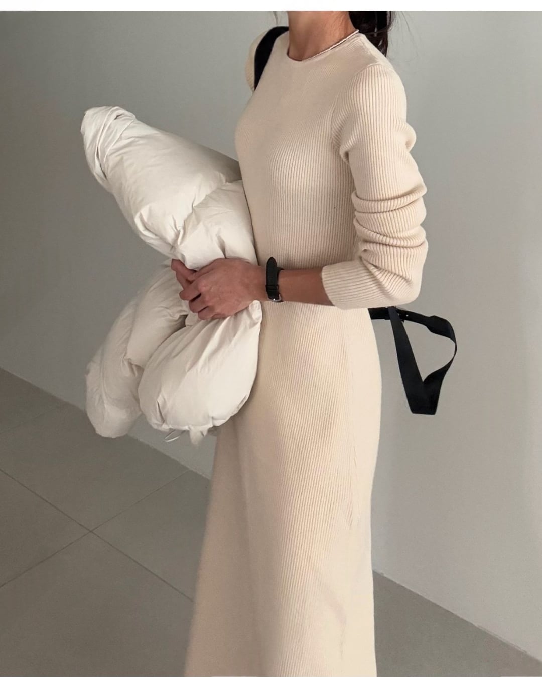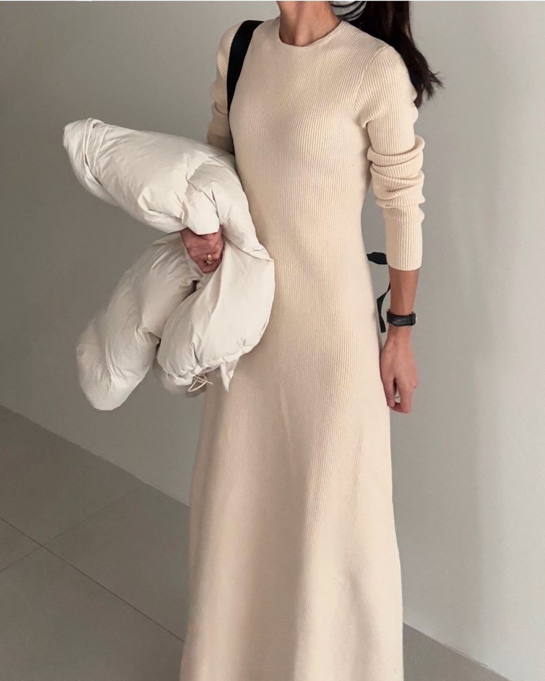 #リブニット #ロングワンピース #フレアシルエット #リラックスニット #ワントーンコーデ