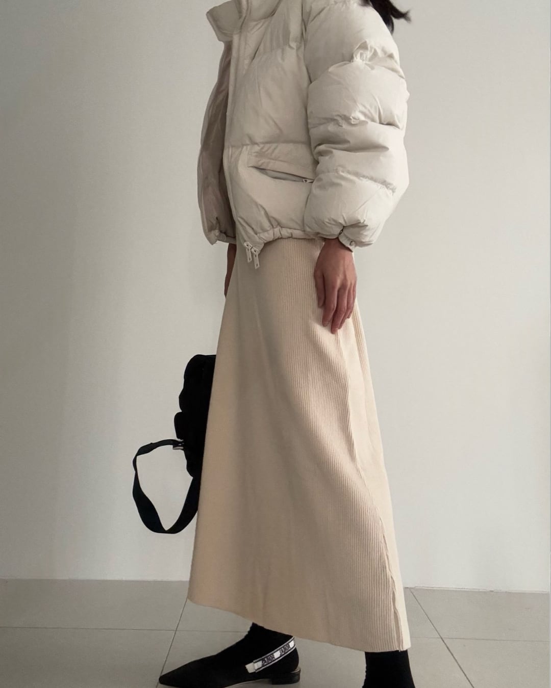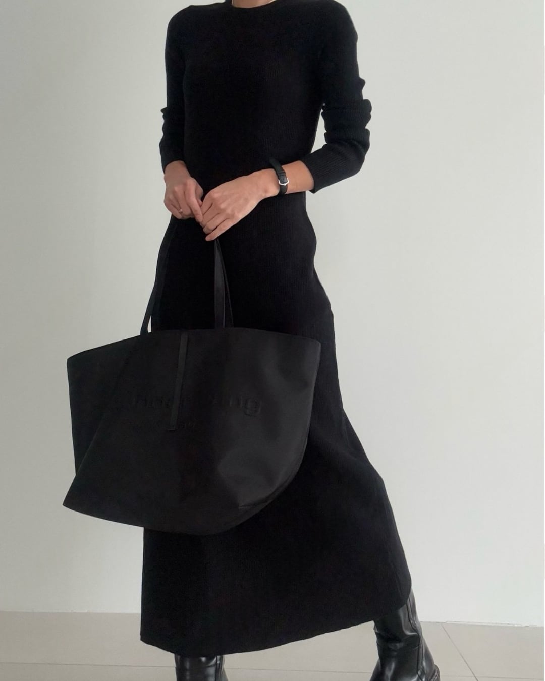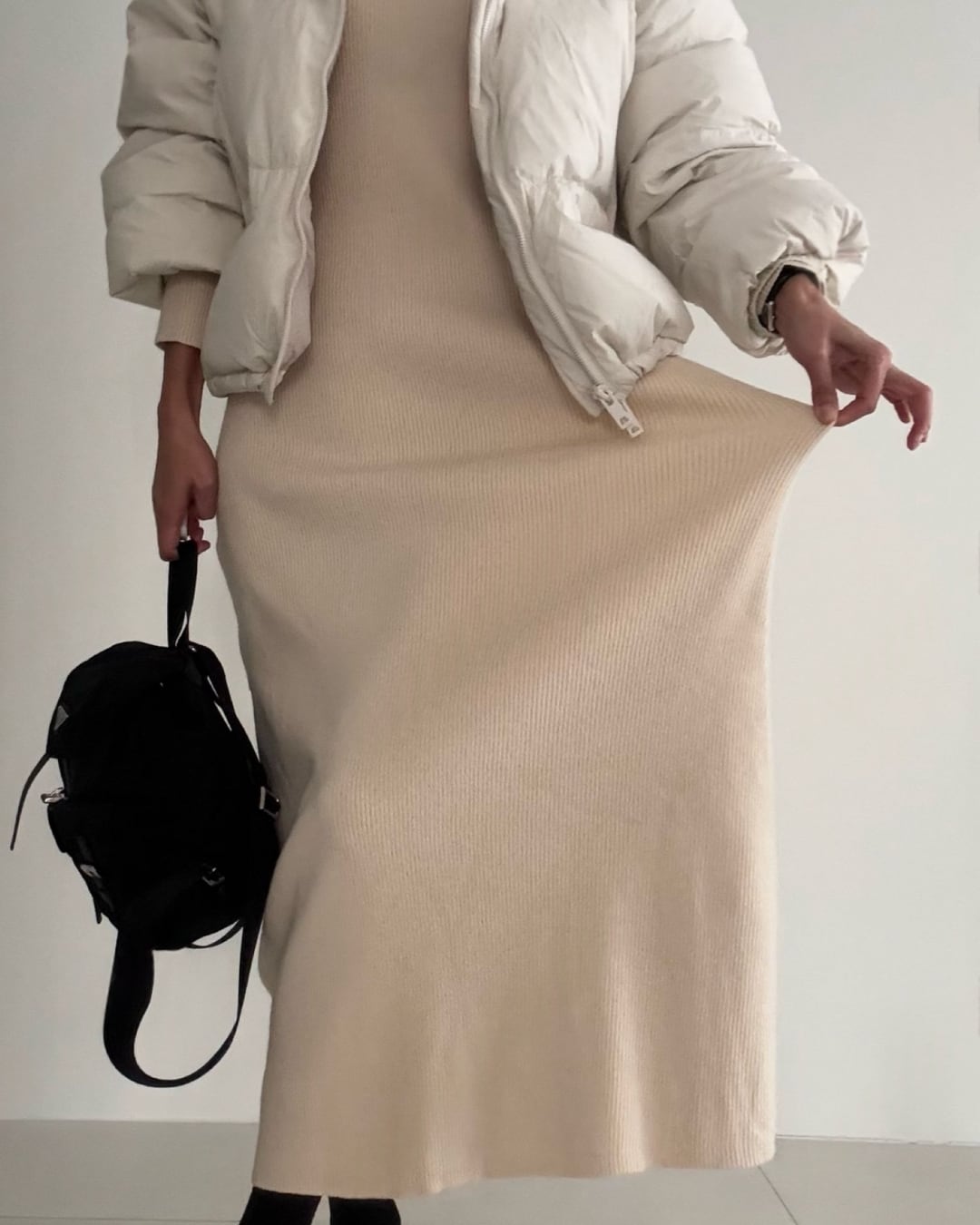 #リブニット #ロングワンピース #フレアシルエット #リラックスニット #ワントーンコーデ