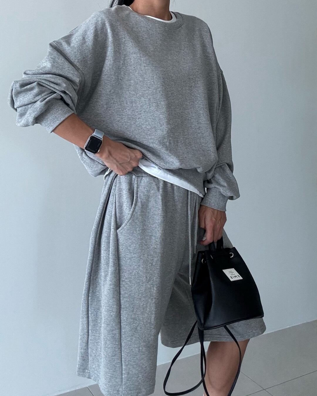 柔らかく伸縮性のあるスウェット素材で仕立てた、リラックスシルエットのハーフパンツセットアップ。ウエストはゴム&ドローストリング付きで、快適な履き心地を実現。ブラック、グレー、ライトグレーのベーシックカラー展開で、トップスを選ばずコーディネート可能。