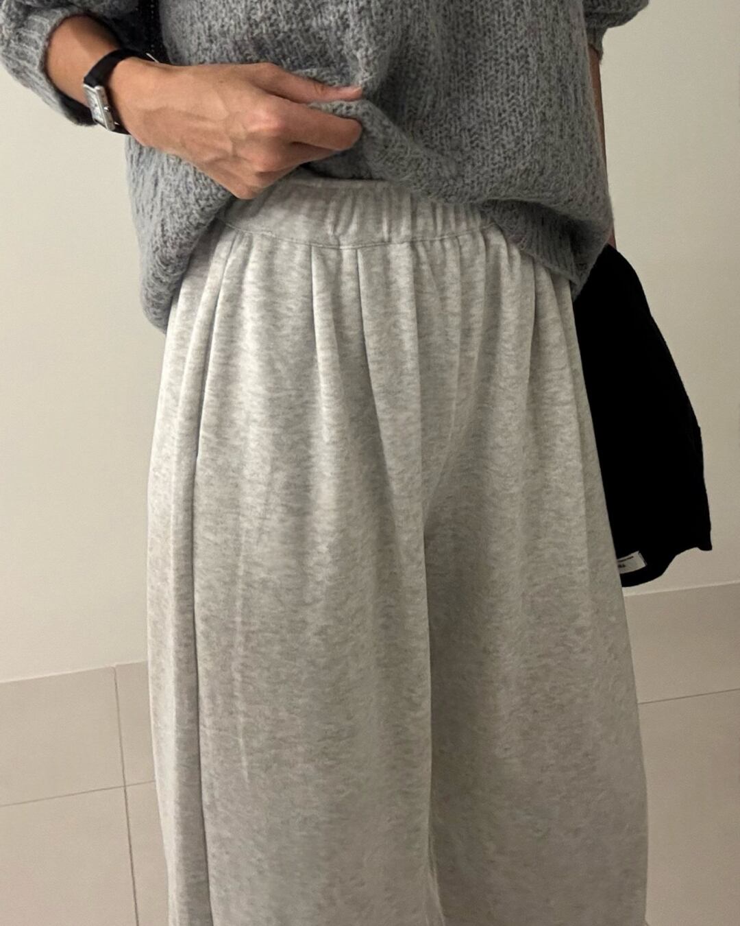 柔らかく軽いポリエステル素材で仕立てた、リラックスシルエットのワイドパンツ。ウエストはゴム仕様で、快適な履き心地を実現。ブラック、グレー、ライトグレーのベーシックカラー展開で、トップスを選ばずコーディネート可能。