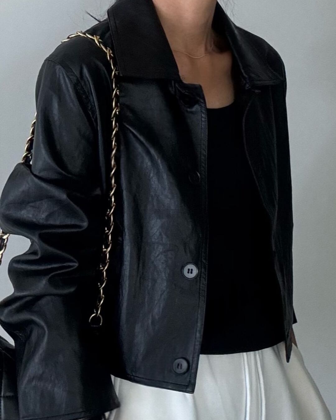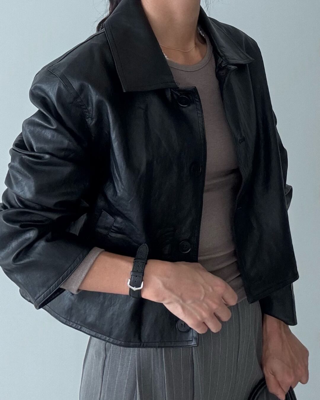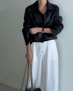 #レザージャケット #ノーカラージャケット #ブラックアウター #大人カジュアル #きれいめコーデ