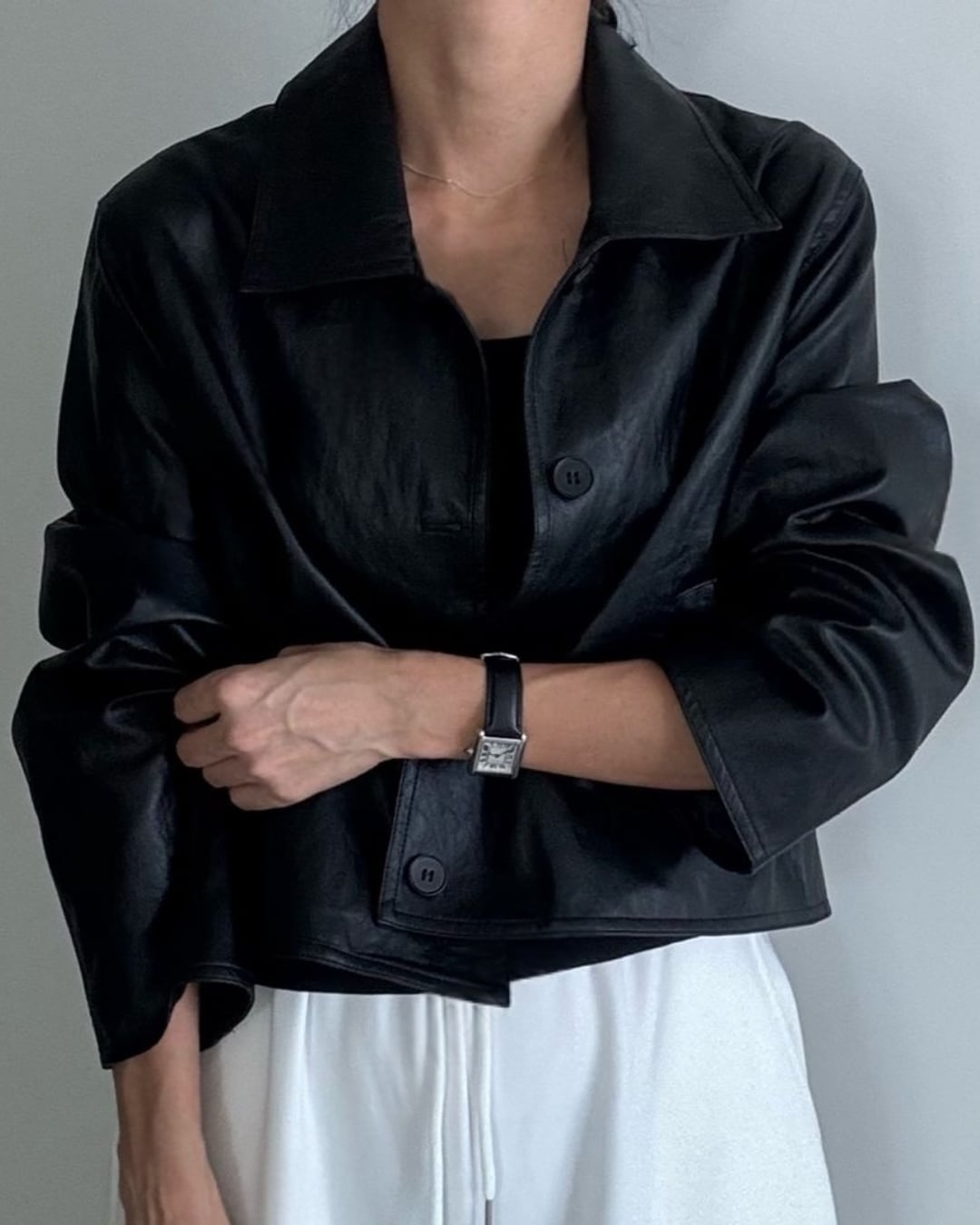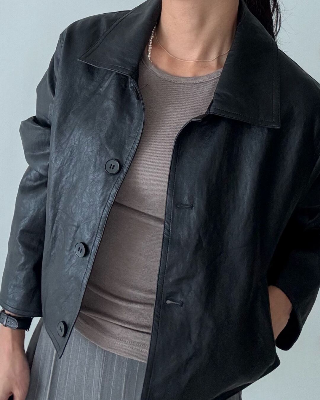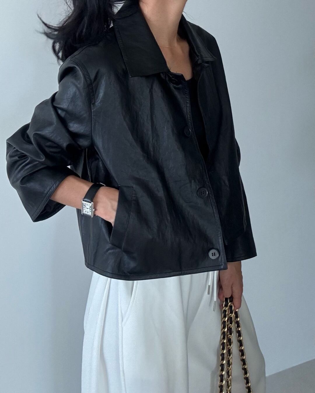 程よい光沢感と柔らかな質感が魅力のモトレザージャケット。ノーカラーデザインですっきりとした印象に仕上げ、女性らしいスタイリングにも好相性。軽めの着心地ながら裏地付きで、季節の変わり目にさっと羽織れる万能アウターです。