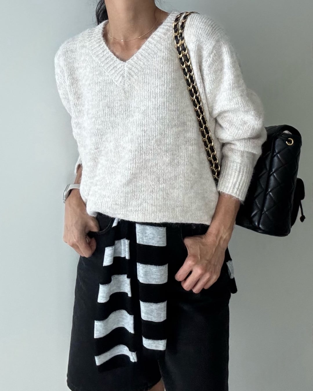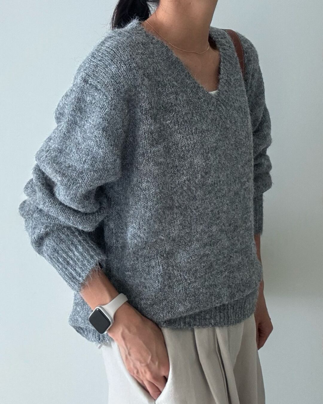 #Vネックニット #ビーバーニット #ふんわりニット #大人カジュアル #秋冬トップス