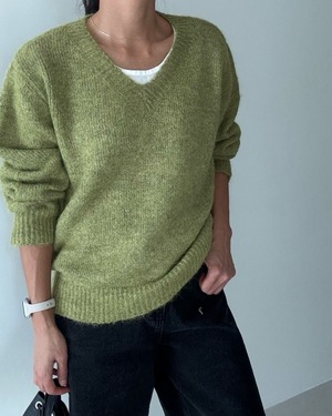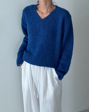 ふんわりとしたビーバータッチの質感が魅力のVネックニット。程よく開いたネックラインが首元をすっきり見せ、女性らしい抜け感を演出します。軽やかな着心地ながら暖かく、レイヤードにも一枚着にも活躍する万能ニットです。