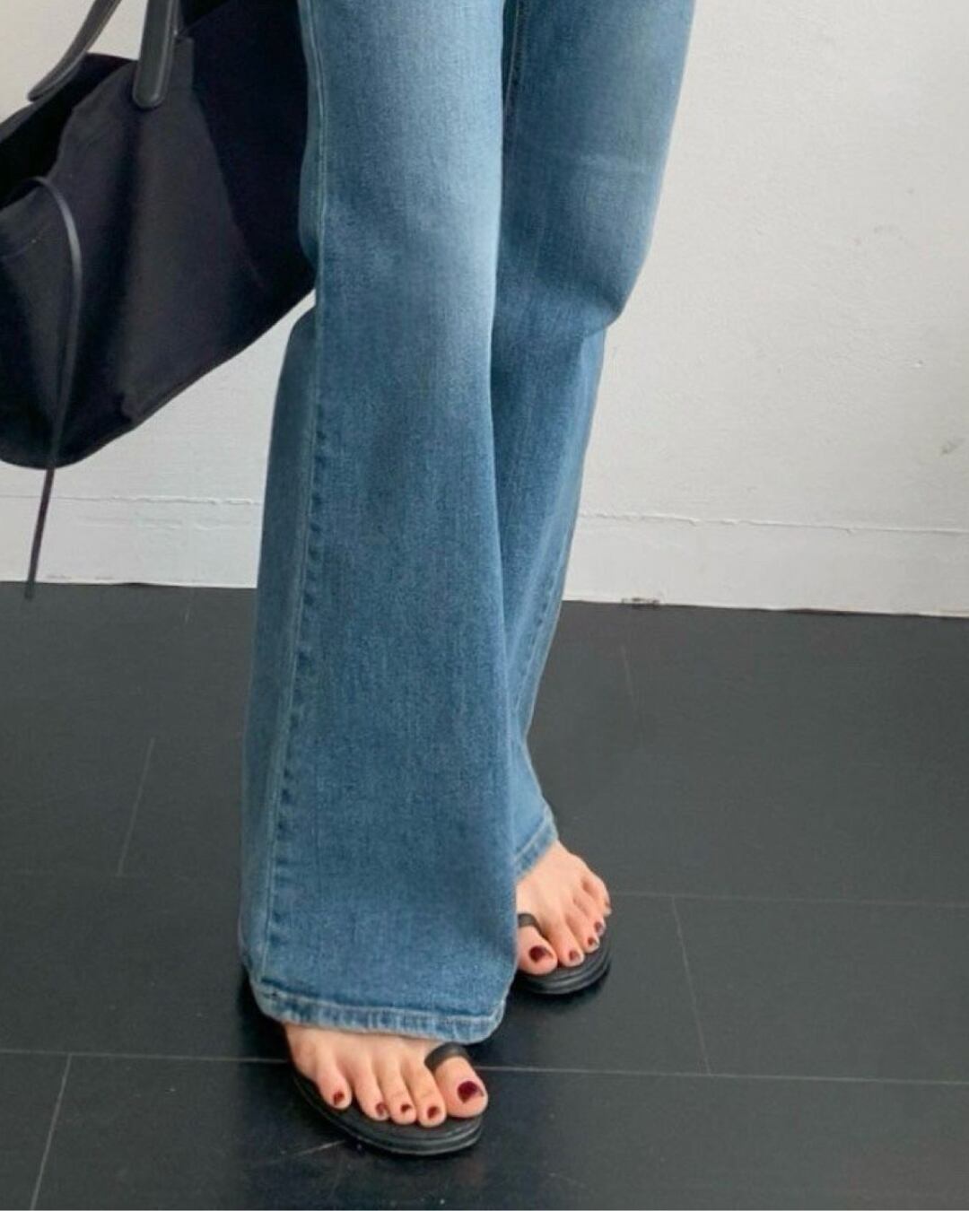 #デニムパンツ #セミフレア #美脚シルエット #ベーシックデニム #大人カジュアル