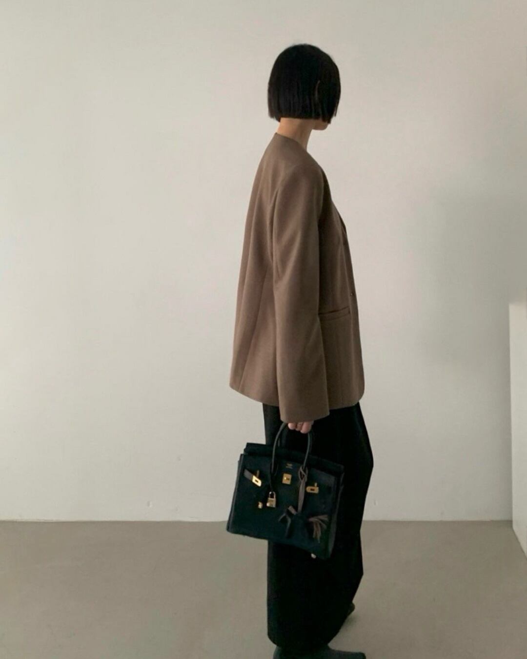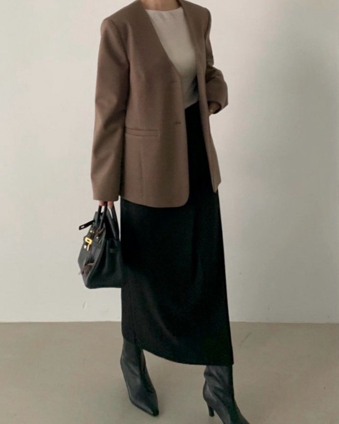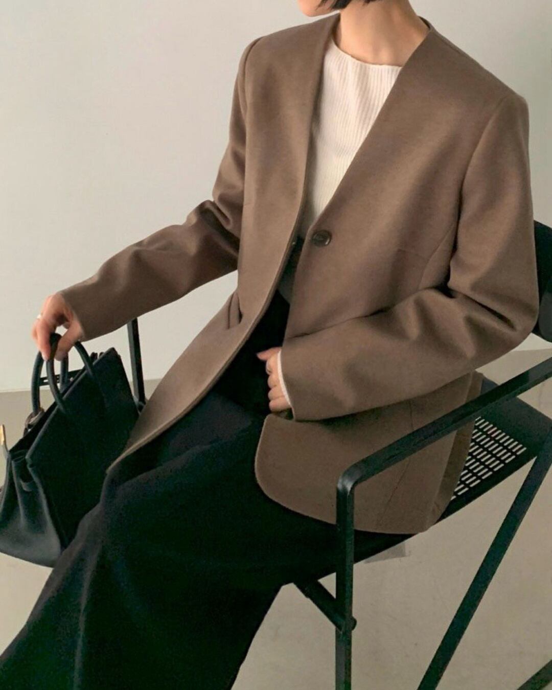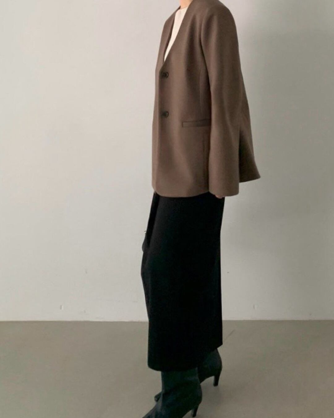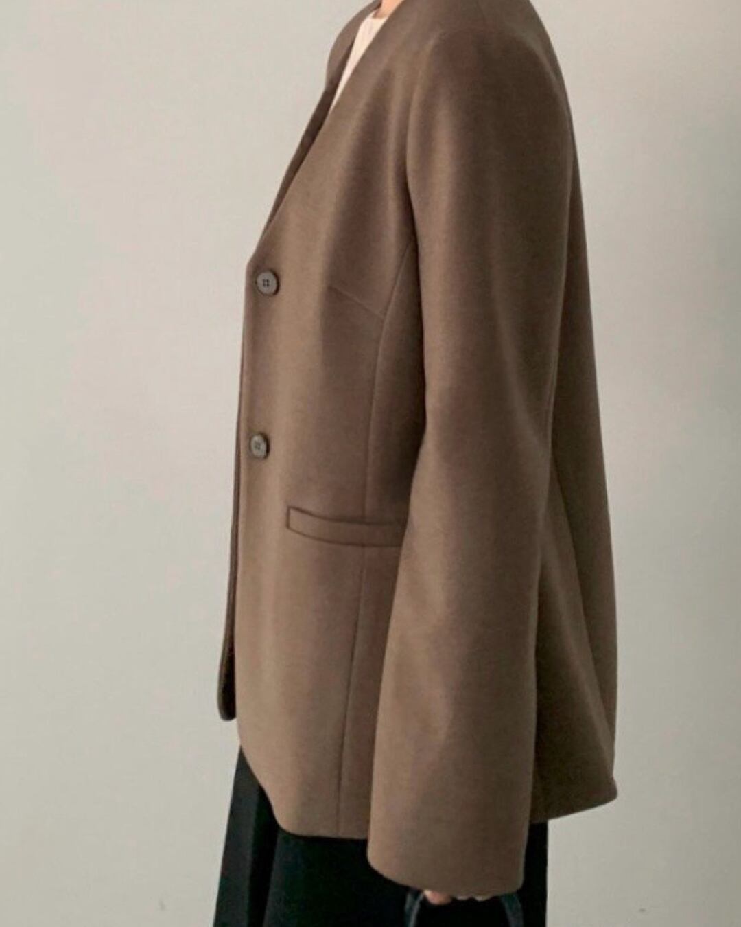#ノーカラージャケット #ミニマルコーデ #きれいめアウター #大人シンプル #羽織アイテム