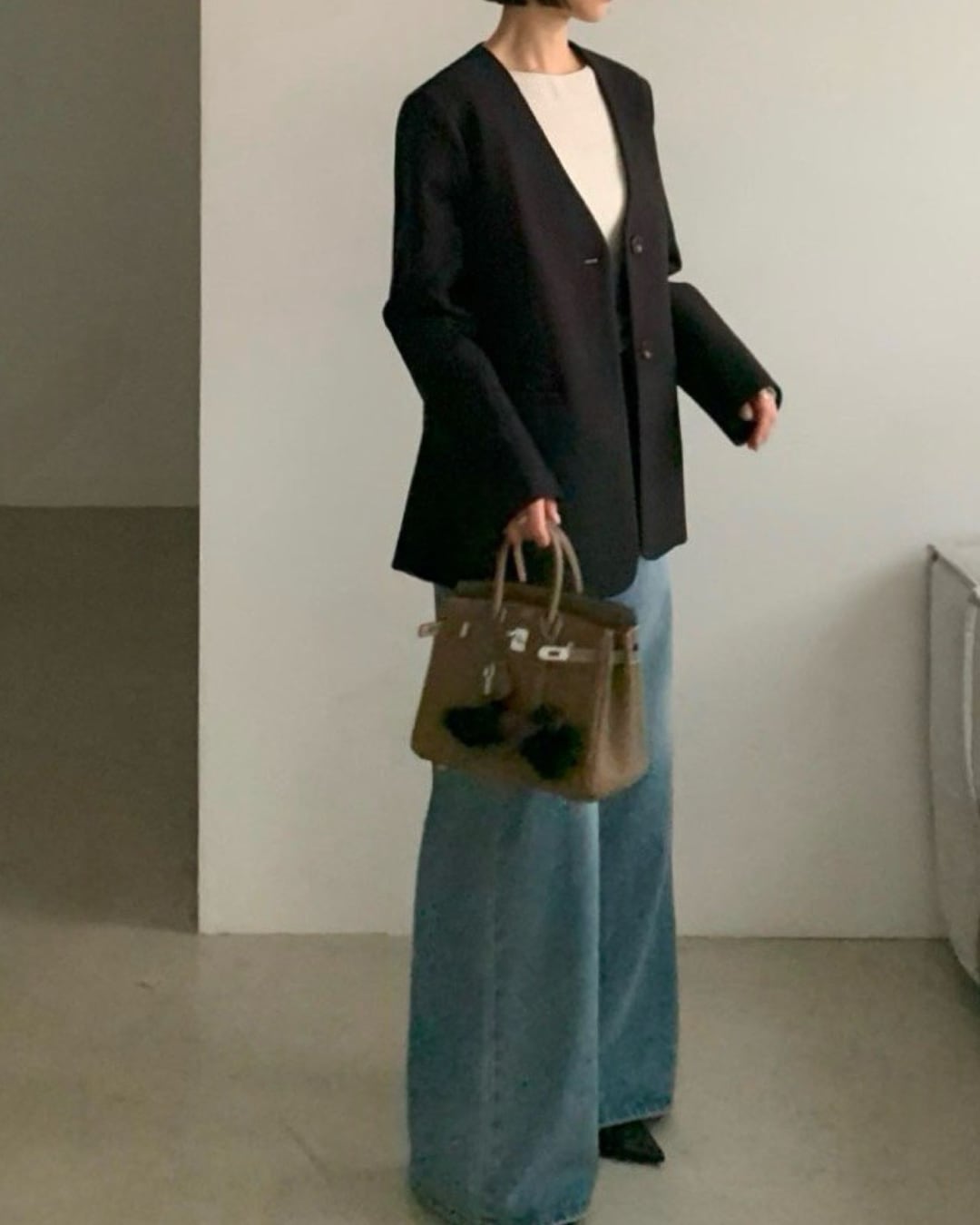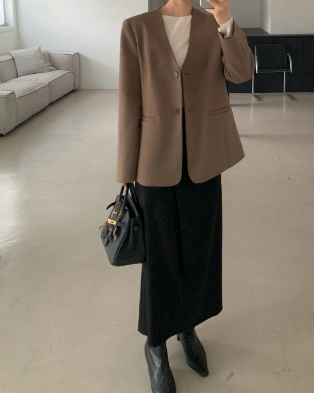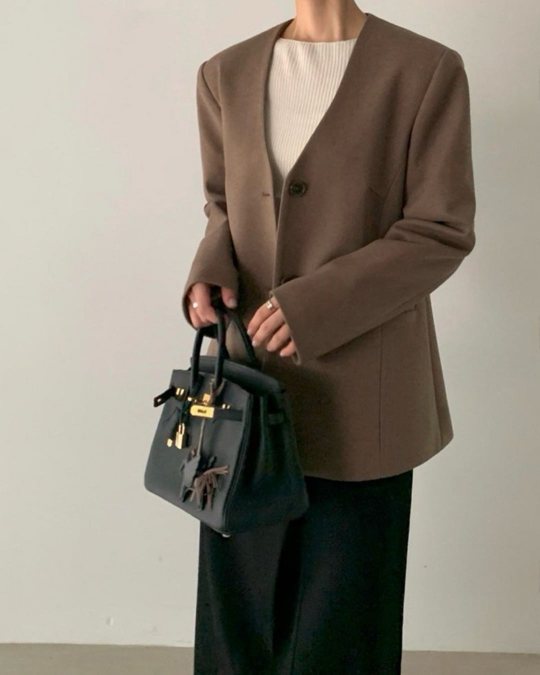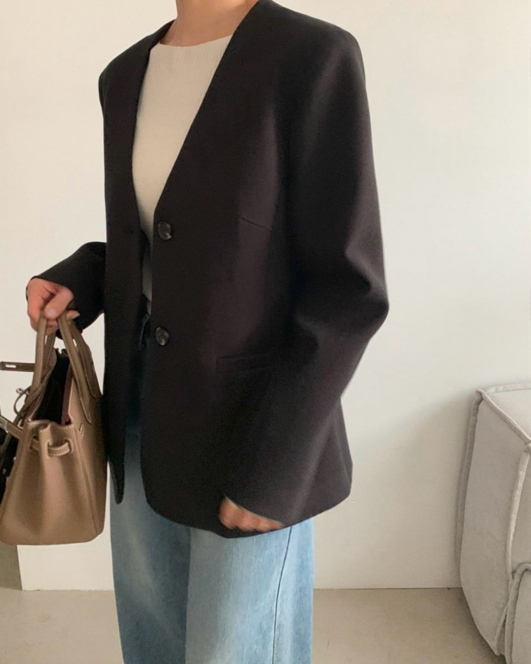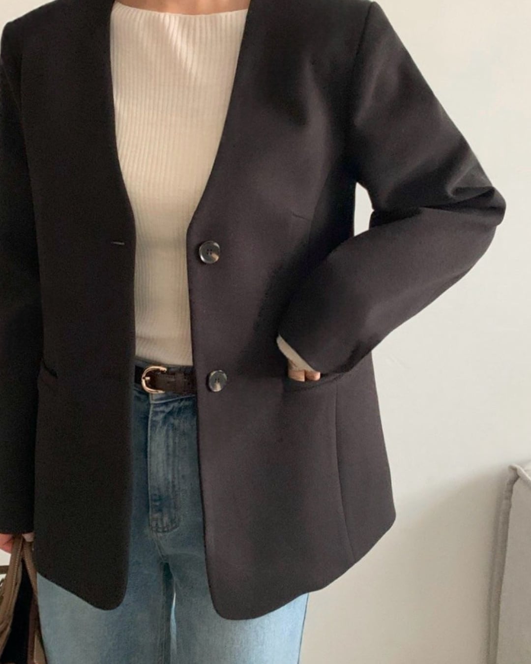 #ノーカラージャケット #ミニマルコーデ #きれいめアウター #大人シンプル #羽織アイテム
