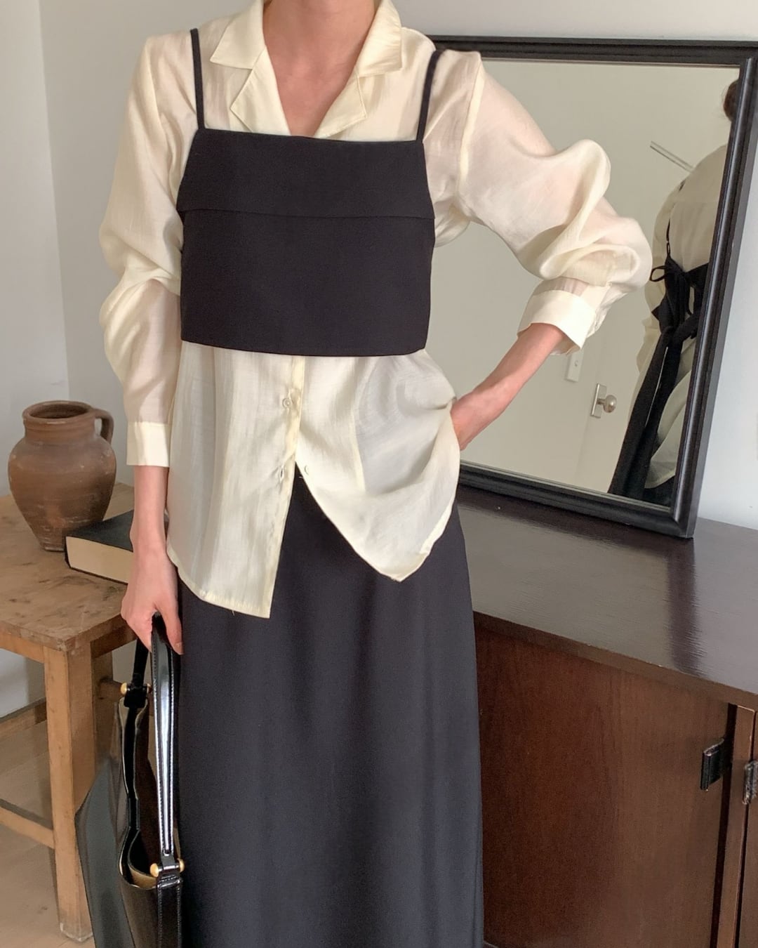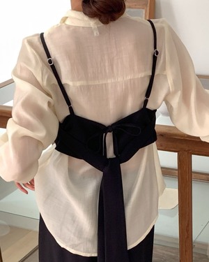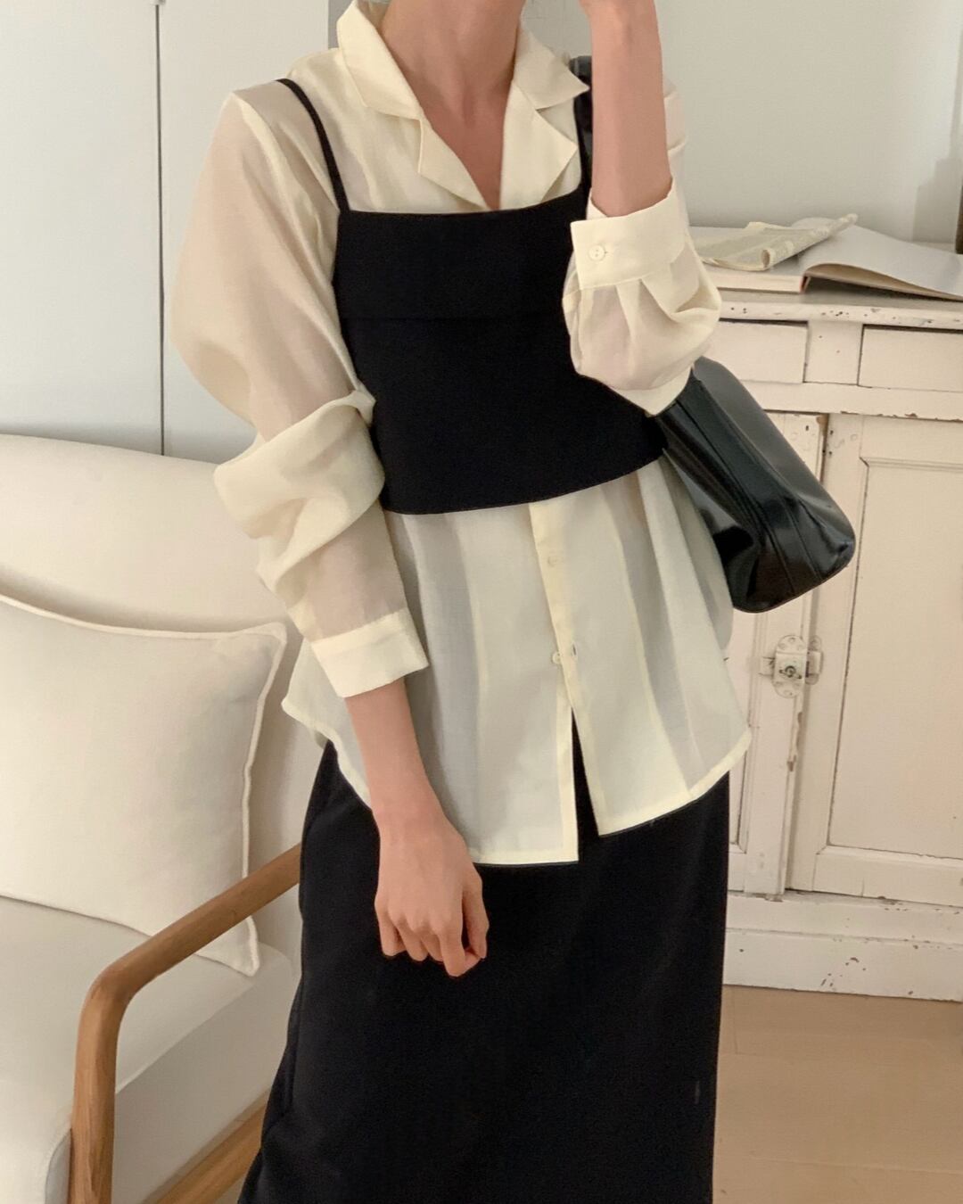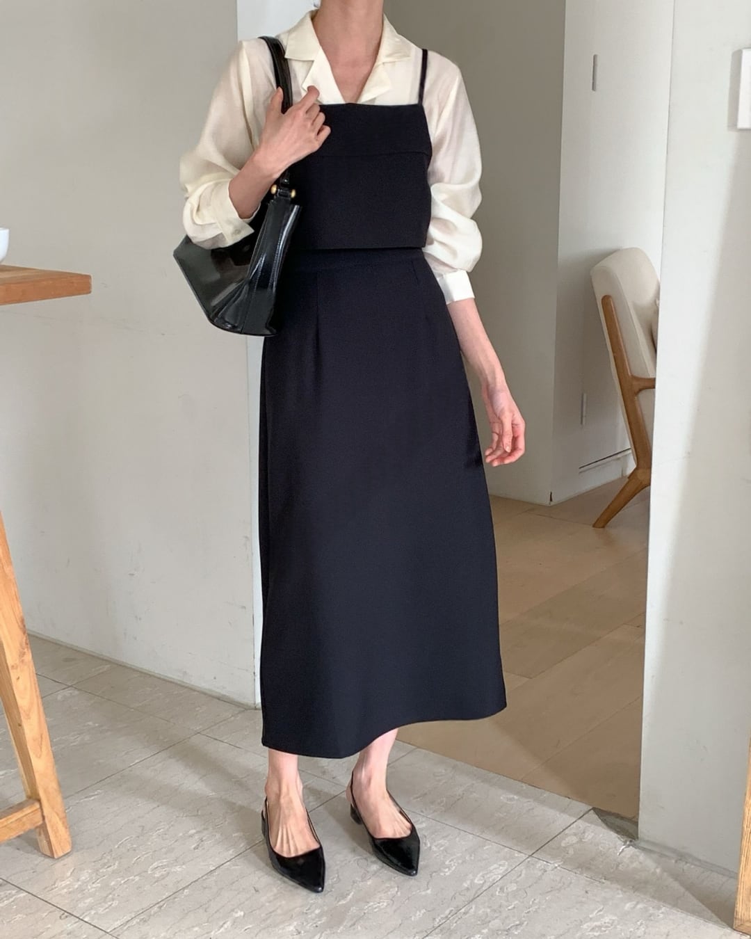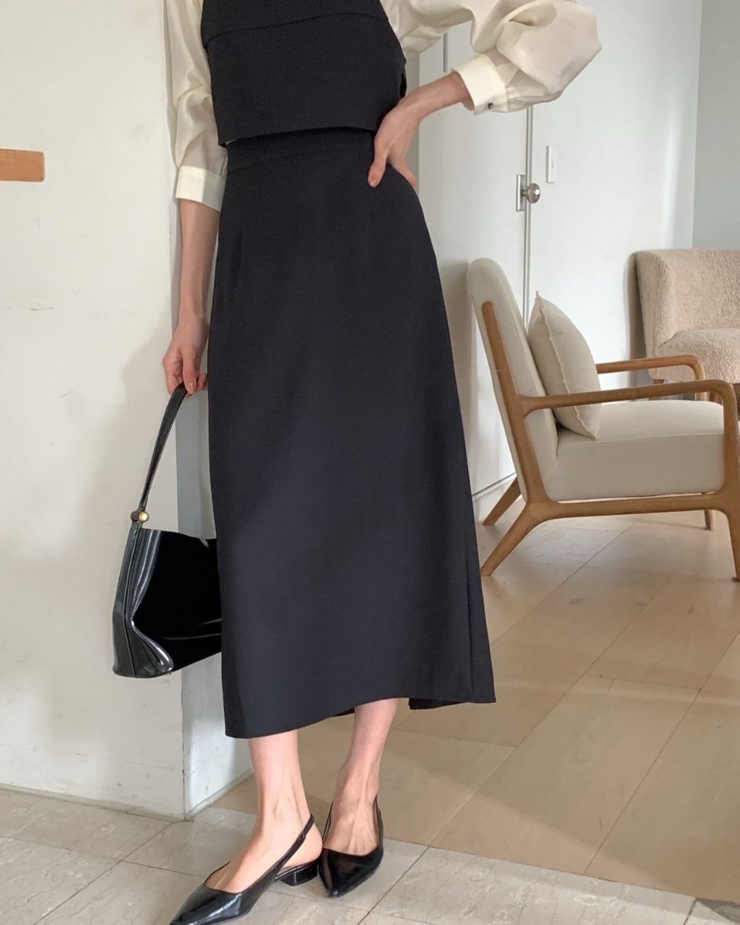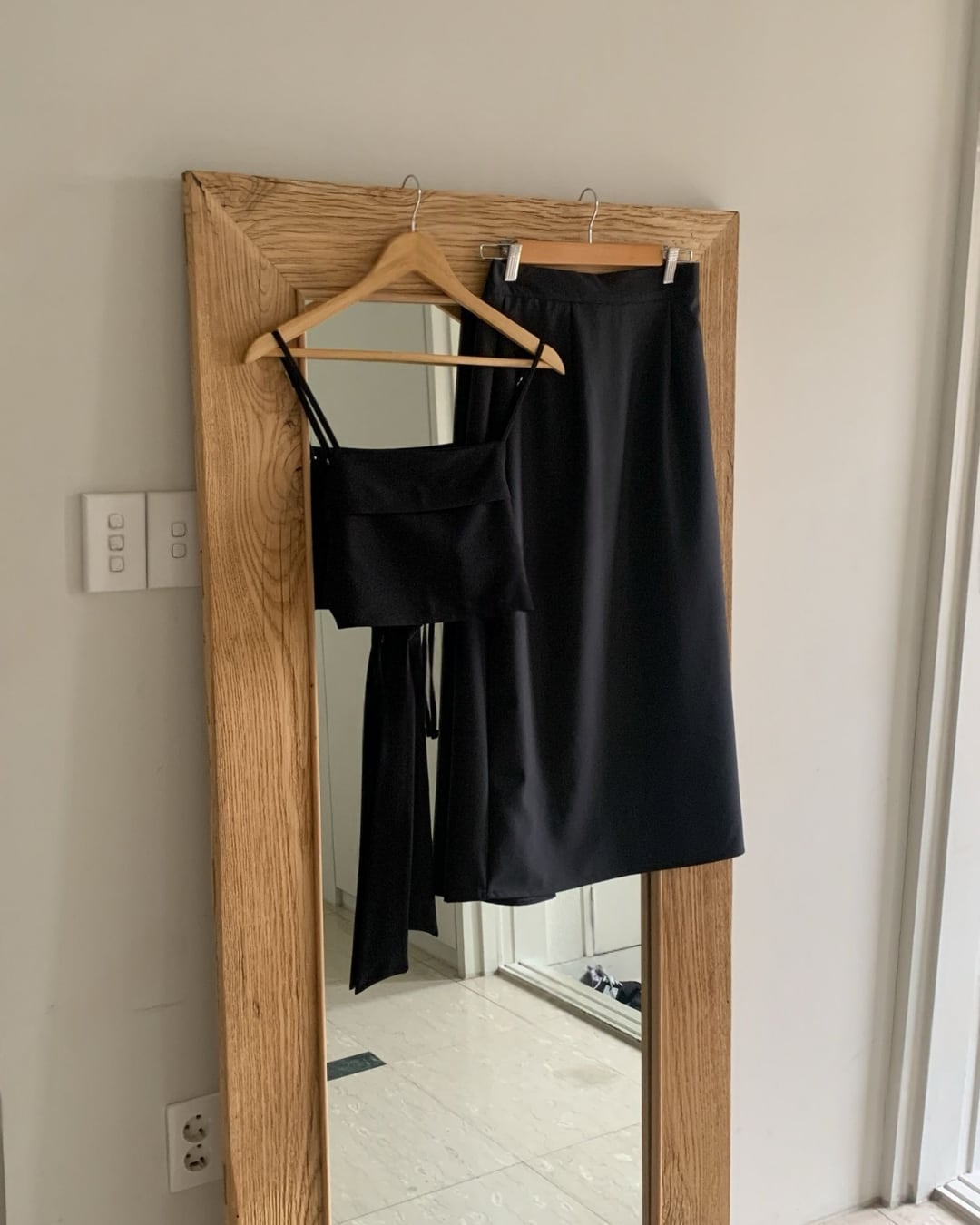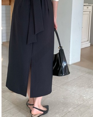 シンプルながら上品な印象のセットアップスカートが一つになったアイテム。バックリボンのディテールが女性らしさを引き立て、スカートはシルエットにこだわり、上品でエレガントなスタイルに仕上げています。デートやお出かけにぴったりなコーディネートが完成します。