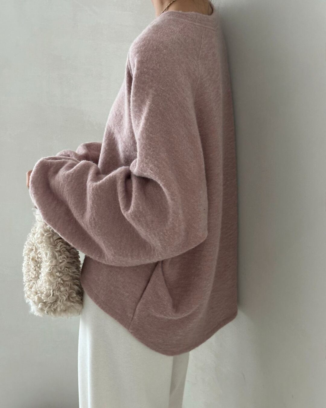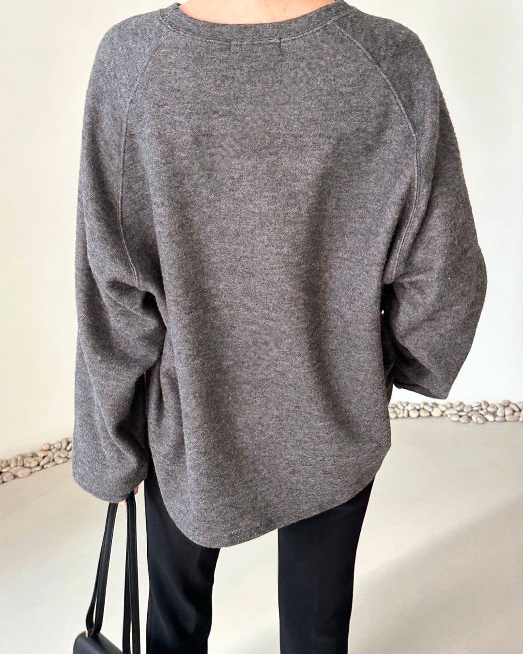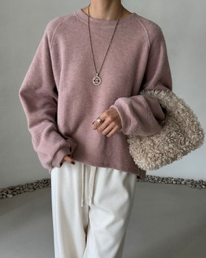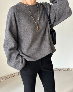 起毛素材を使用したラグランスリーブのスウェットシャツ。シンプルなデザインでありながらも、温かみのある着心地とリラックスしたシルエットが特徴です。カジュアルでありながら、上品な印象を与えるアイテムです。