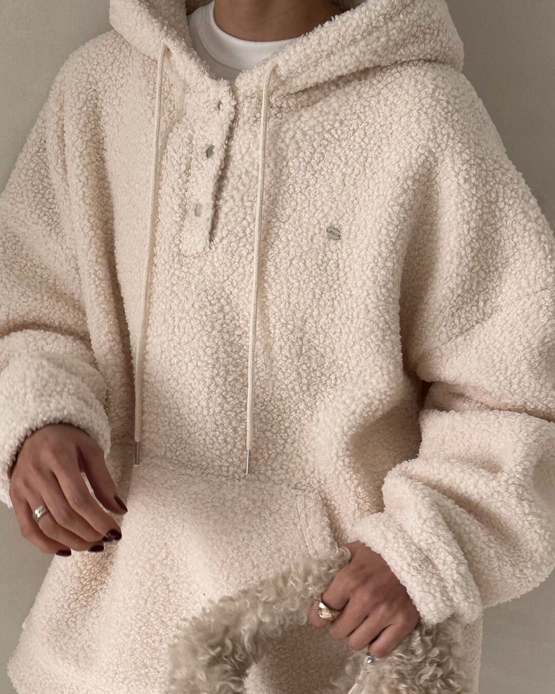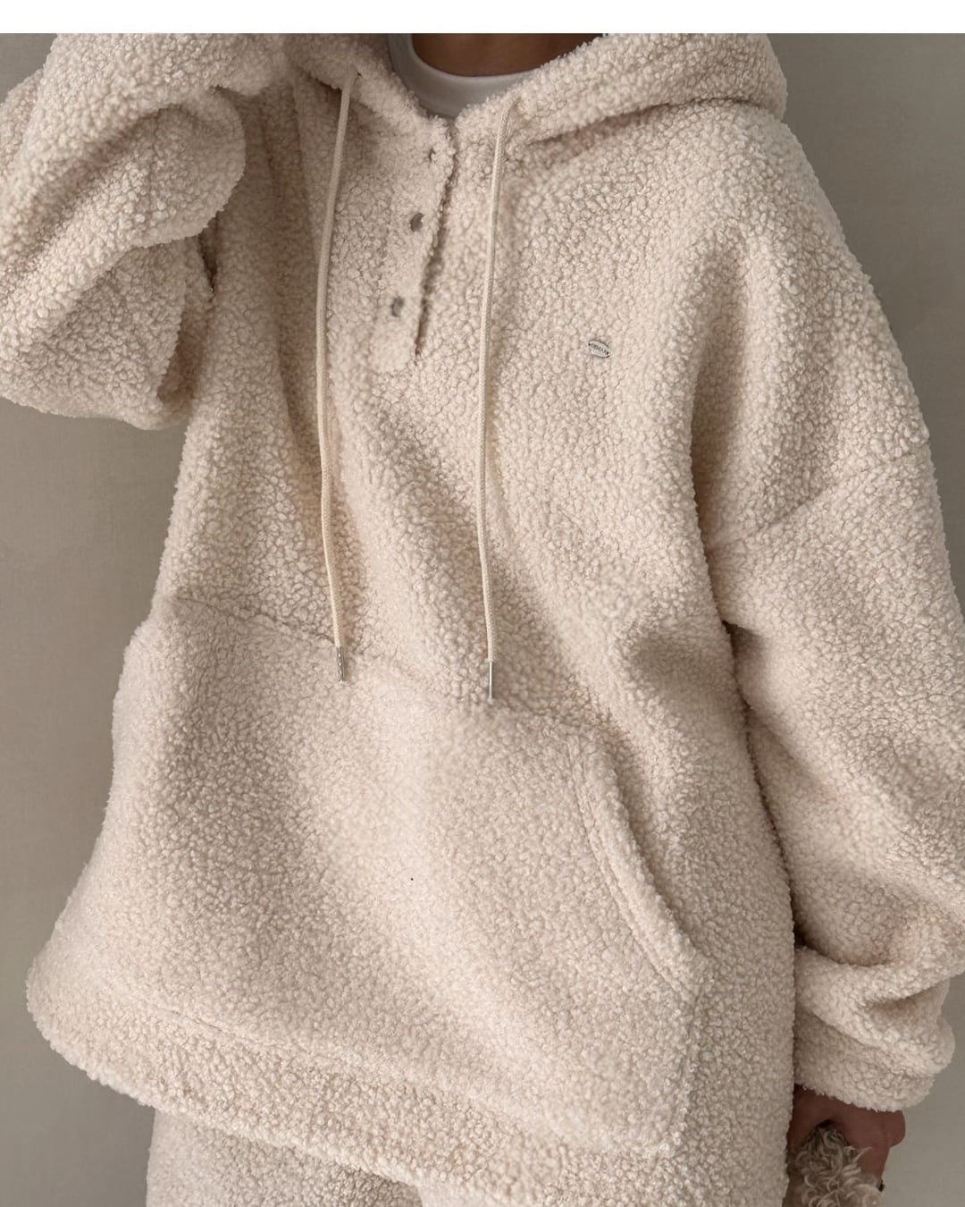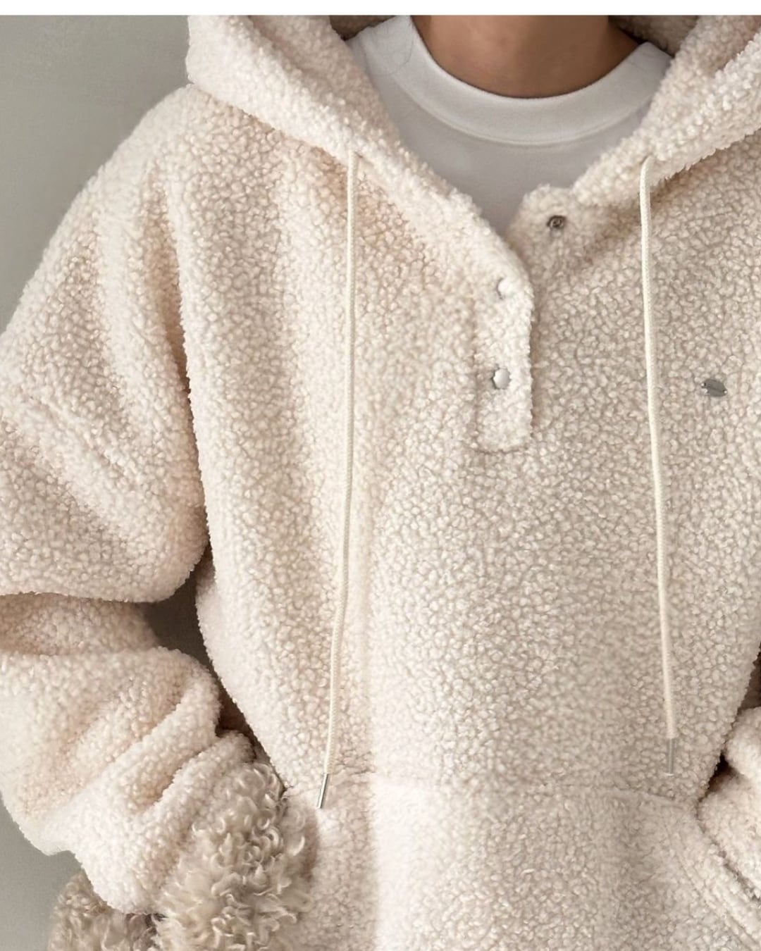 #シアリングプルオーバー #フード付き #アイボリープルオーバー #秋冬コーデ #リラックスコーデ #暖かいトップス