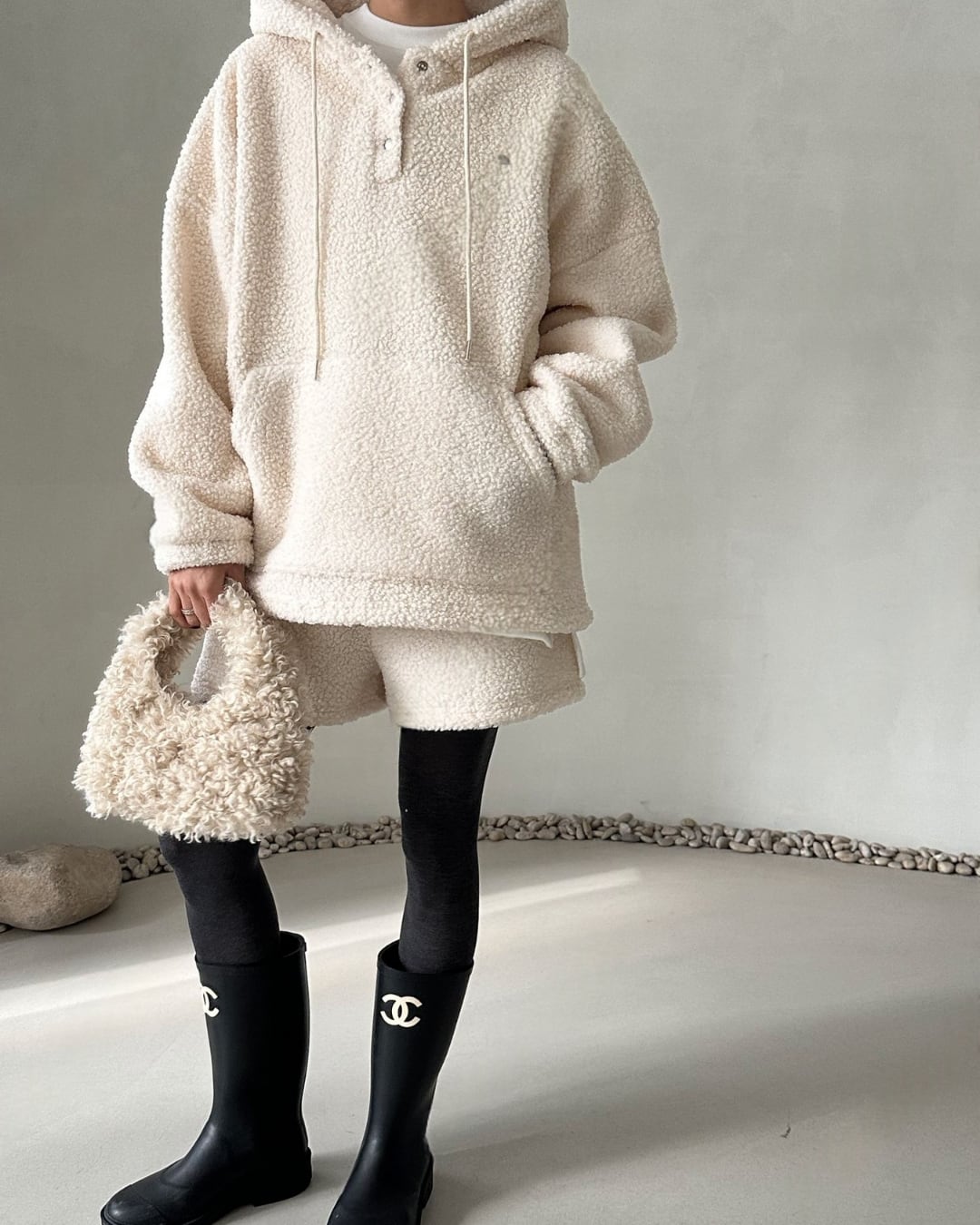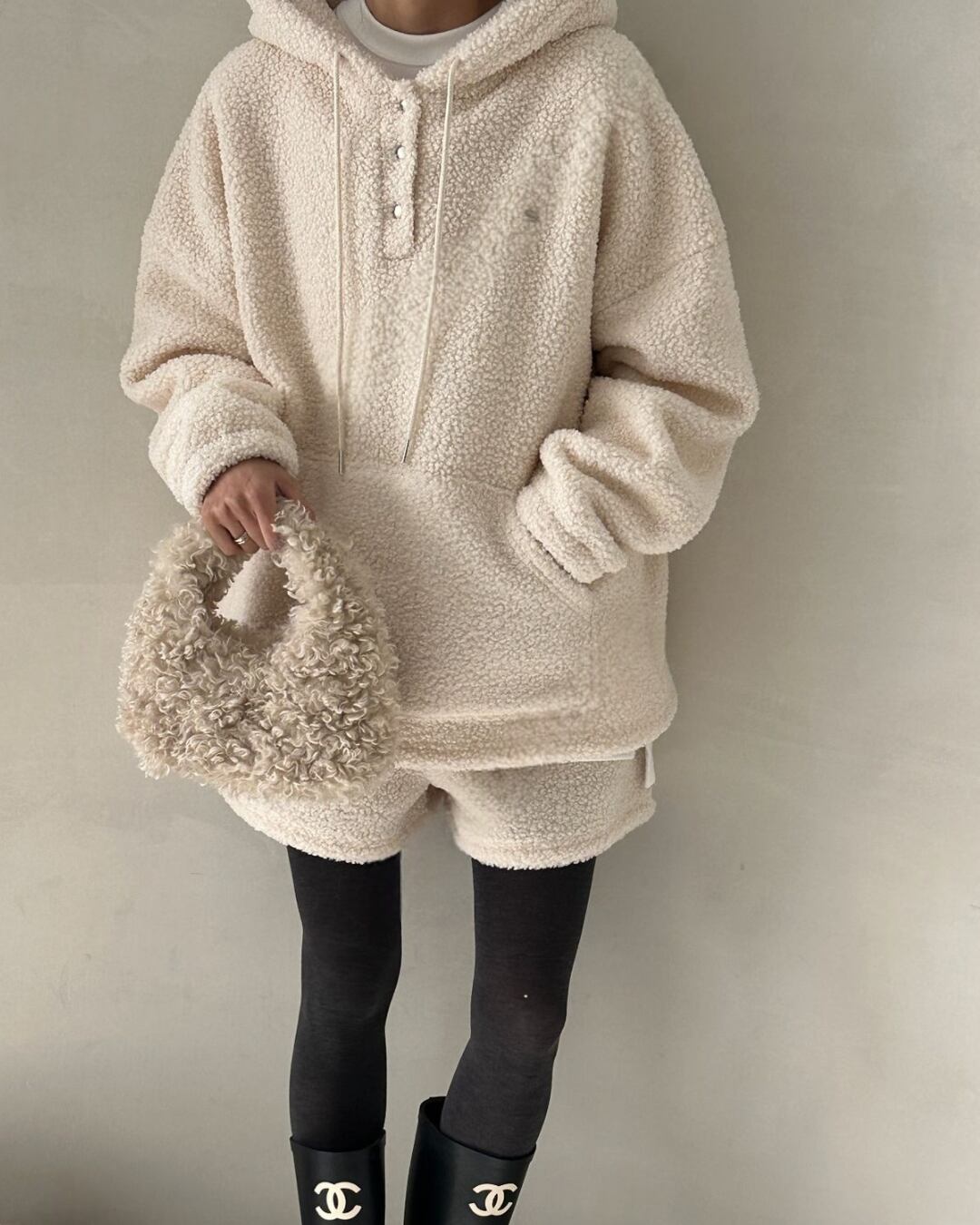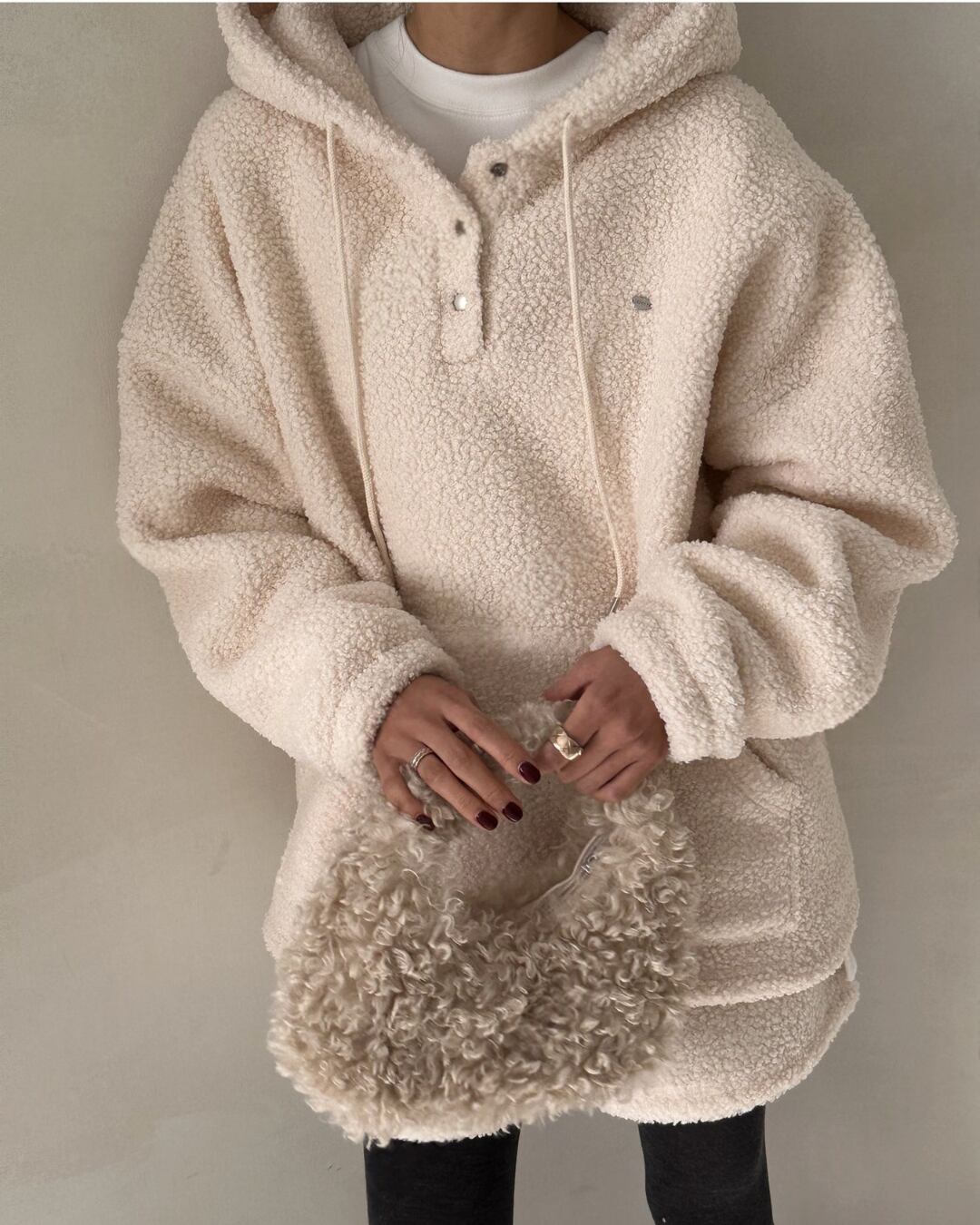#シアリングプルオーバー #フード付き #アイボリープルオーバー #秋冬コーデ #リラックスコーデ #暖かいトップス