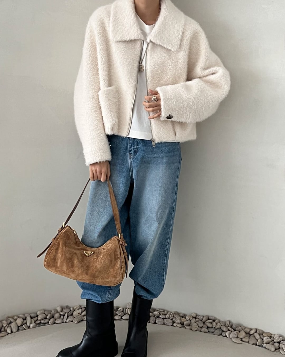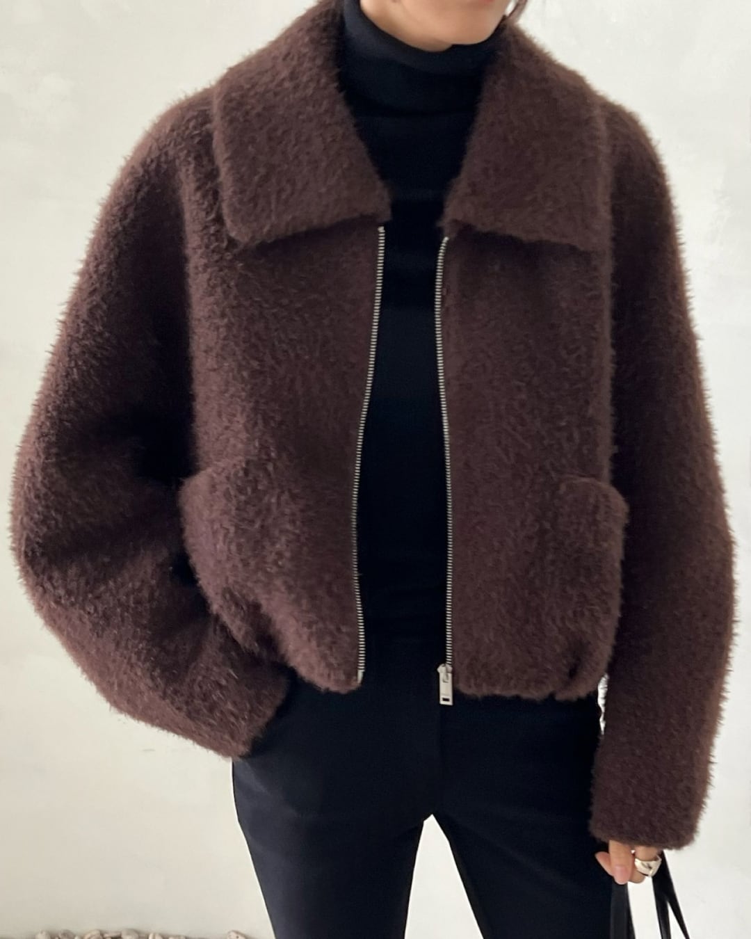 #ファージャケット #ジップアップアウター #冬アウター #大人カジュアル #シーズンコーデ