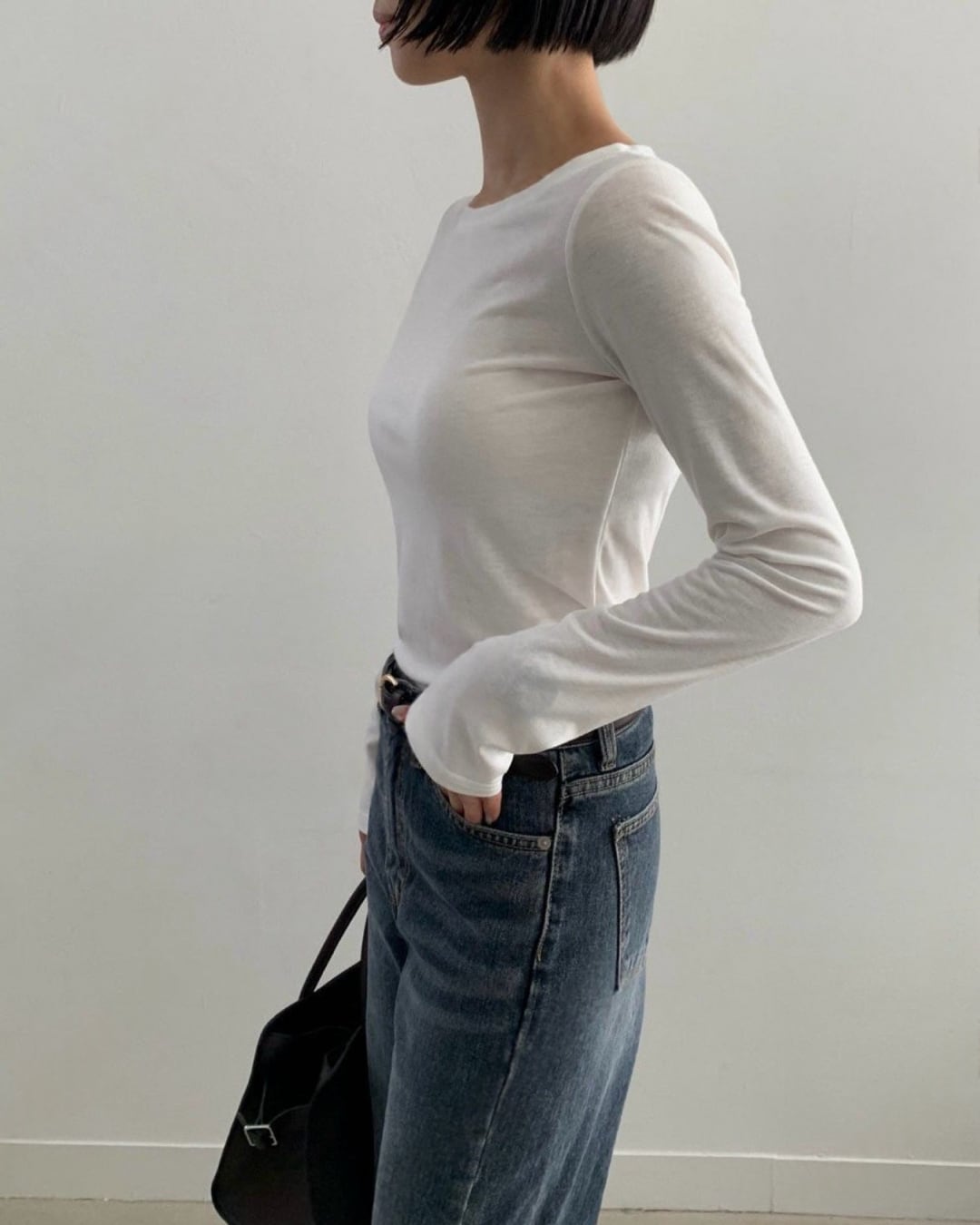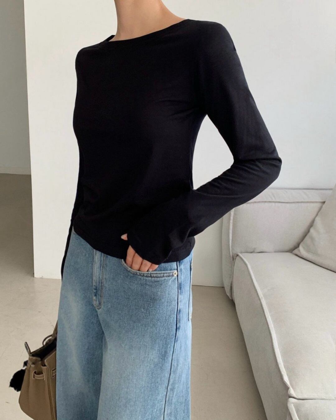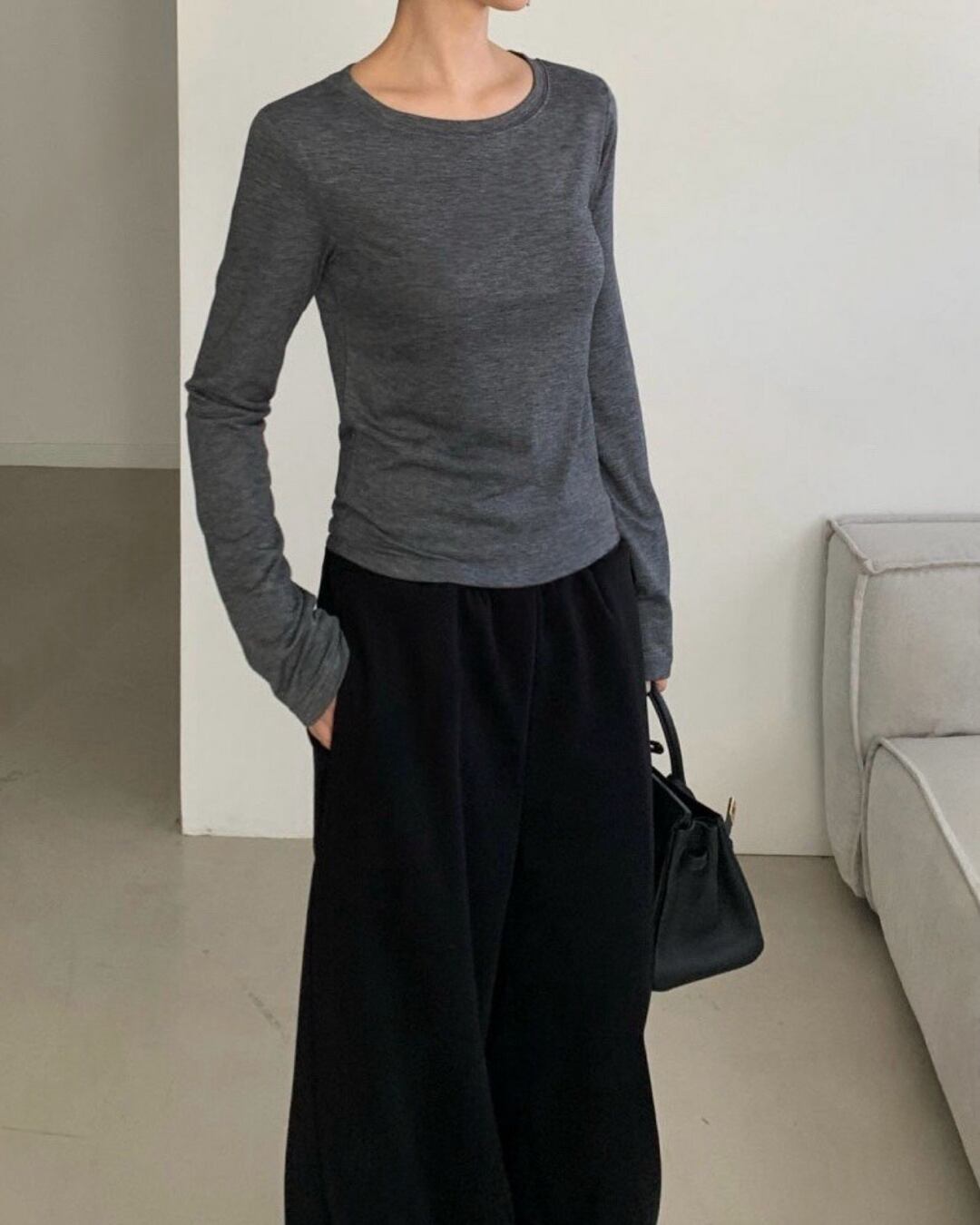 #裏起毛 #ラウンドネック #長袖Tシャツ #インナー使い #ベーシックコーデ