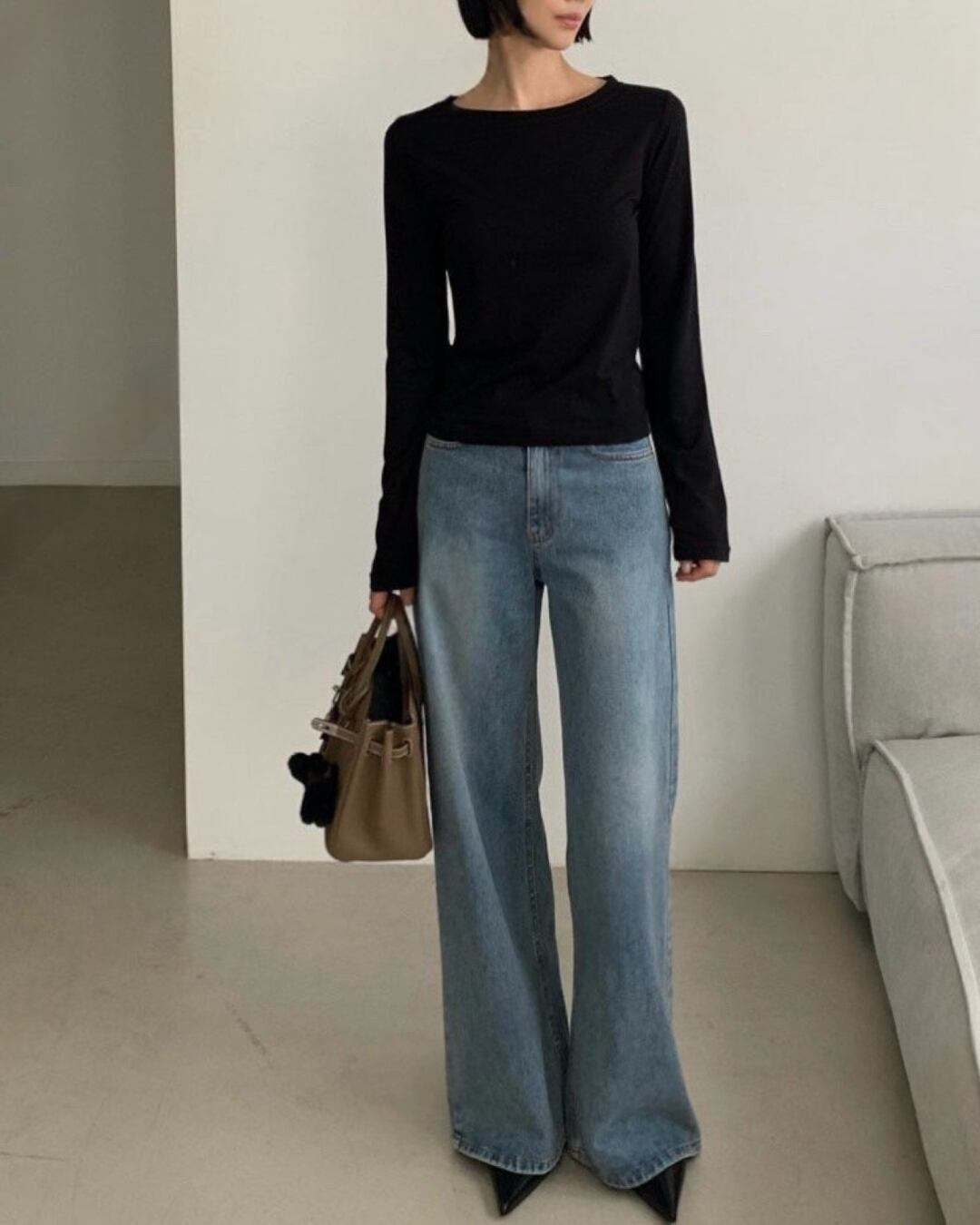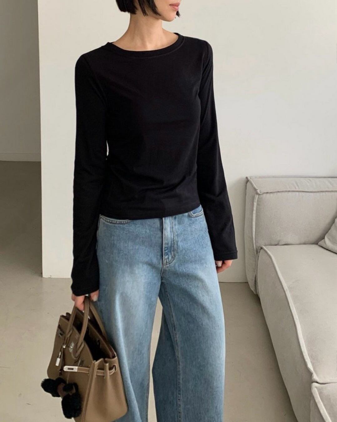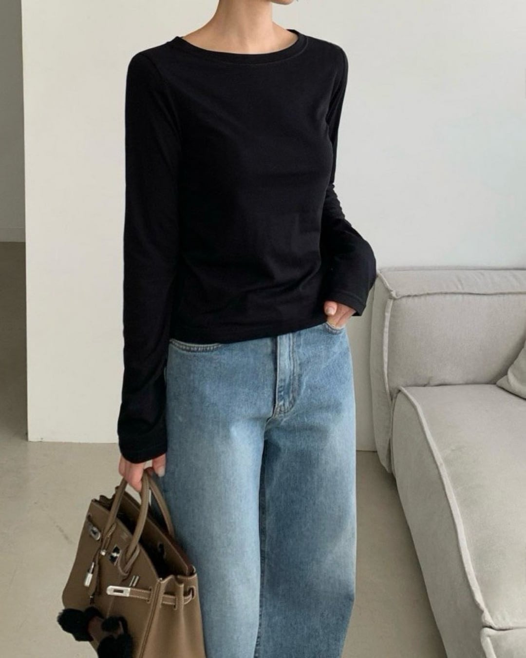 #裏起毛 #ラウンドネック #長袖Tシャツ #インナー使い #ベーシックコーデ