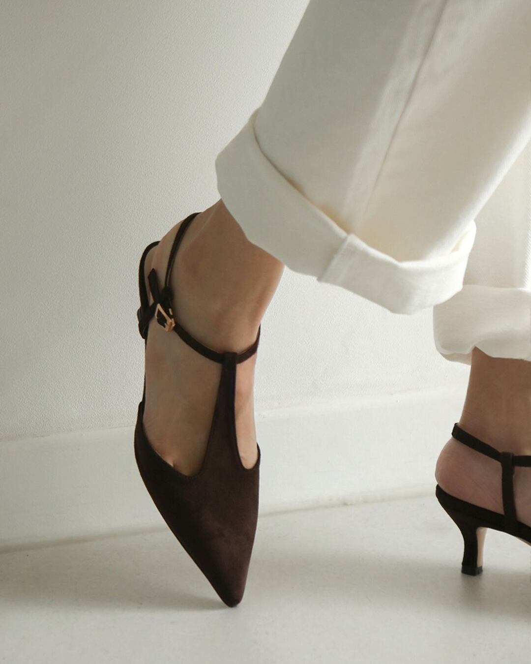 #パンプス #フラットシューズ #ストラップパンプス #スエード #大人コーデ