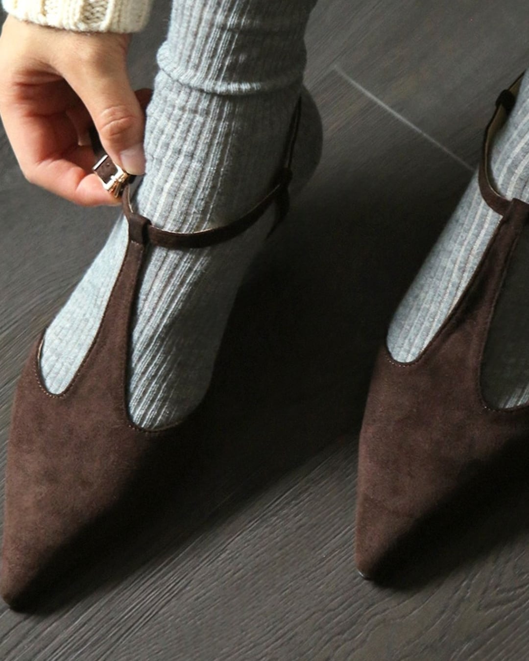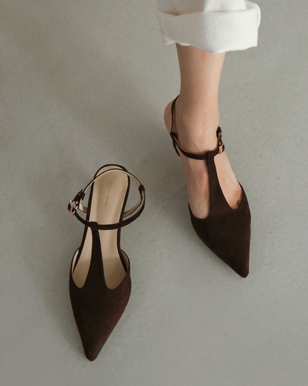 スエードストラップフラットパンプス