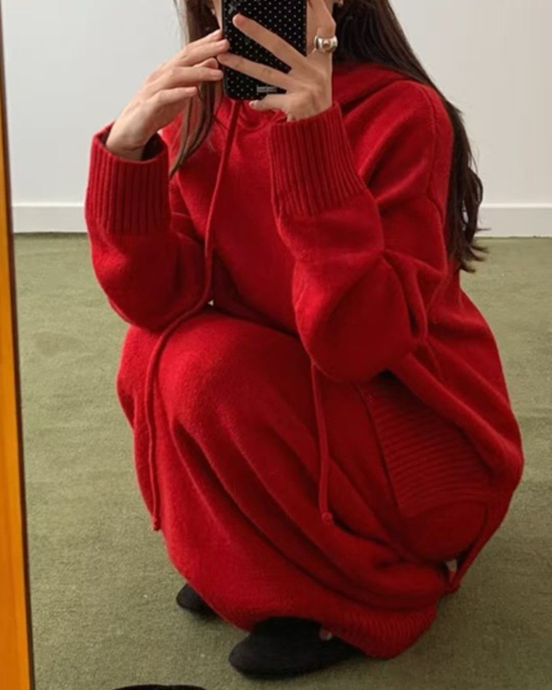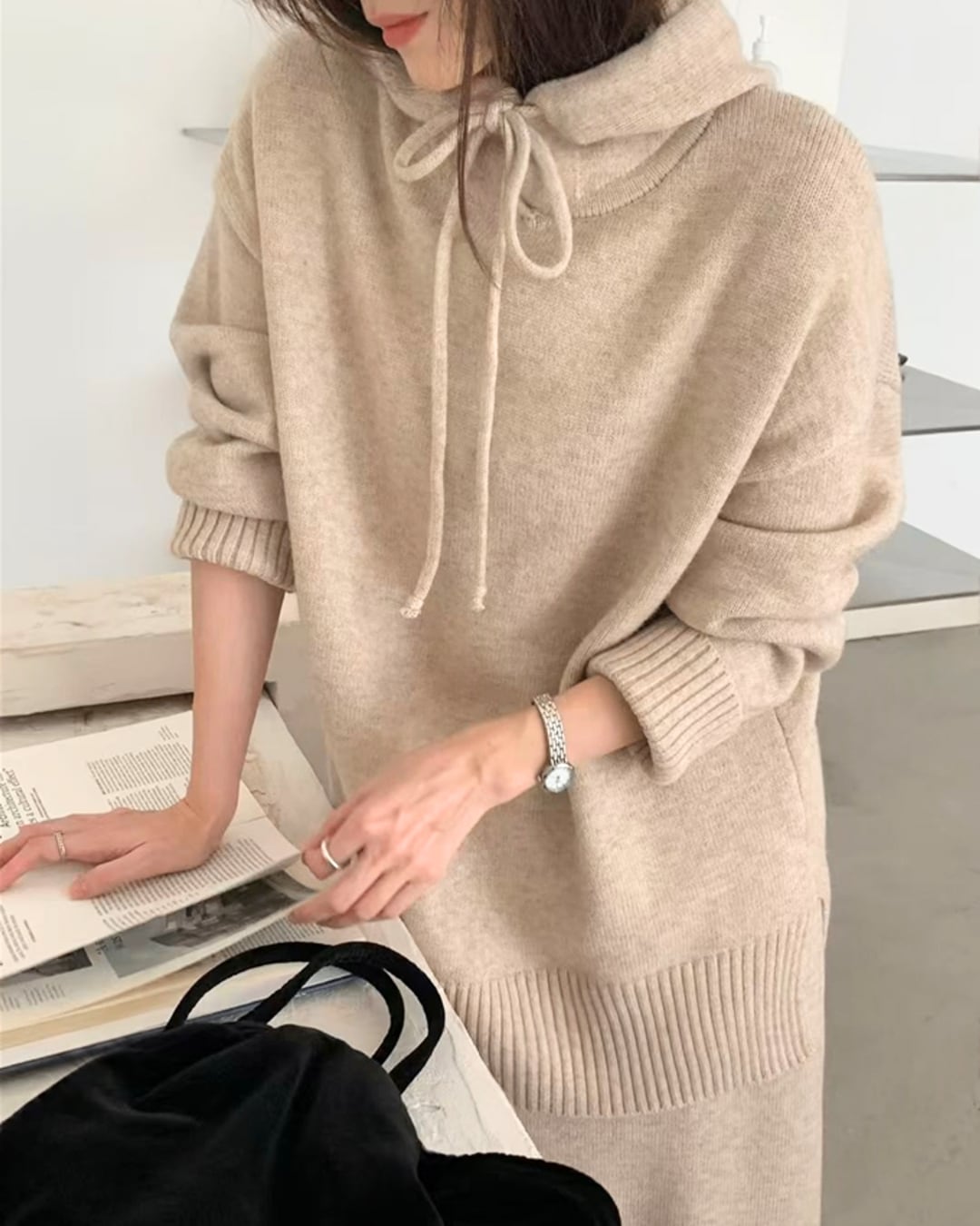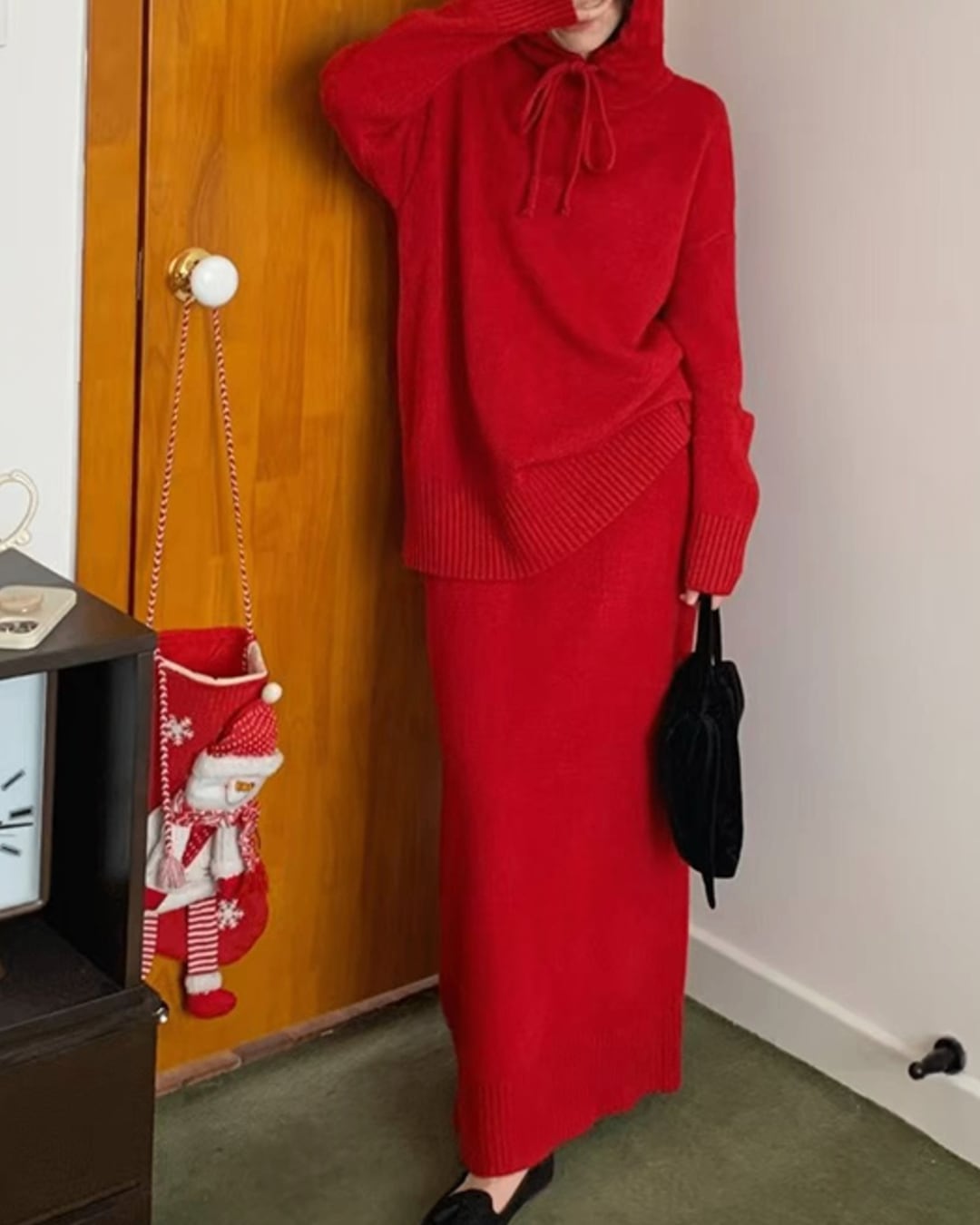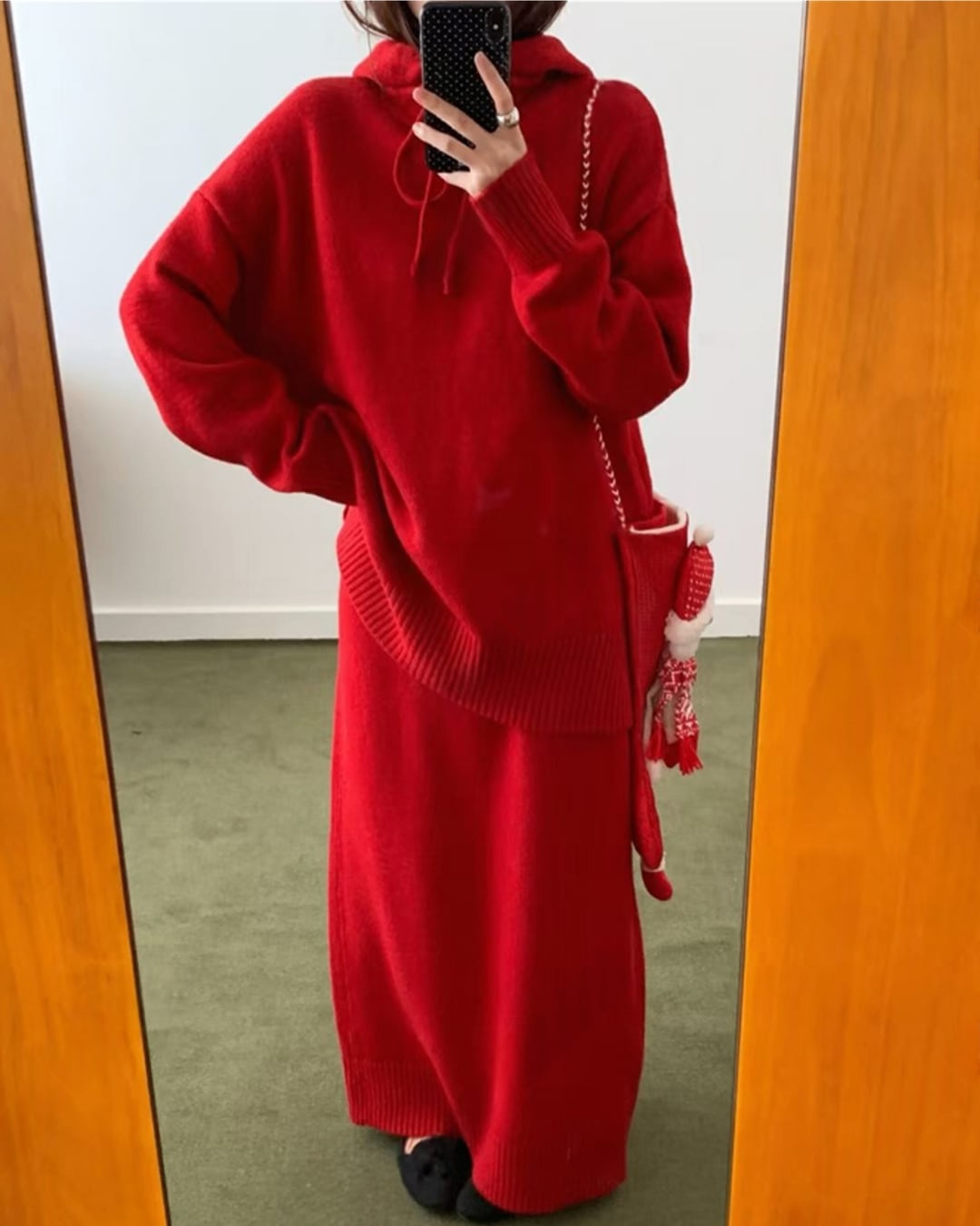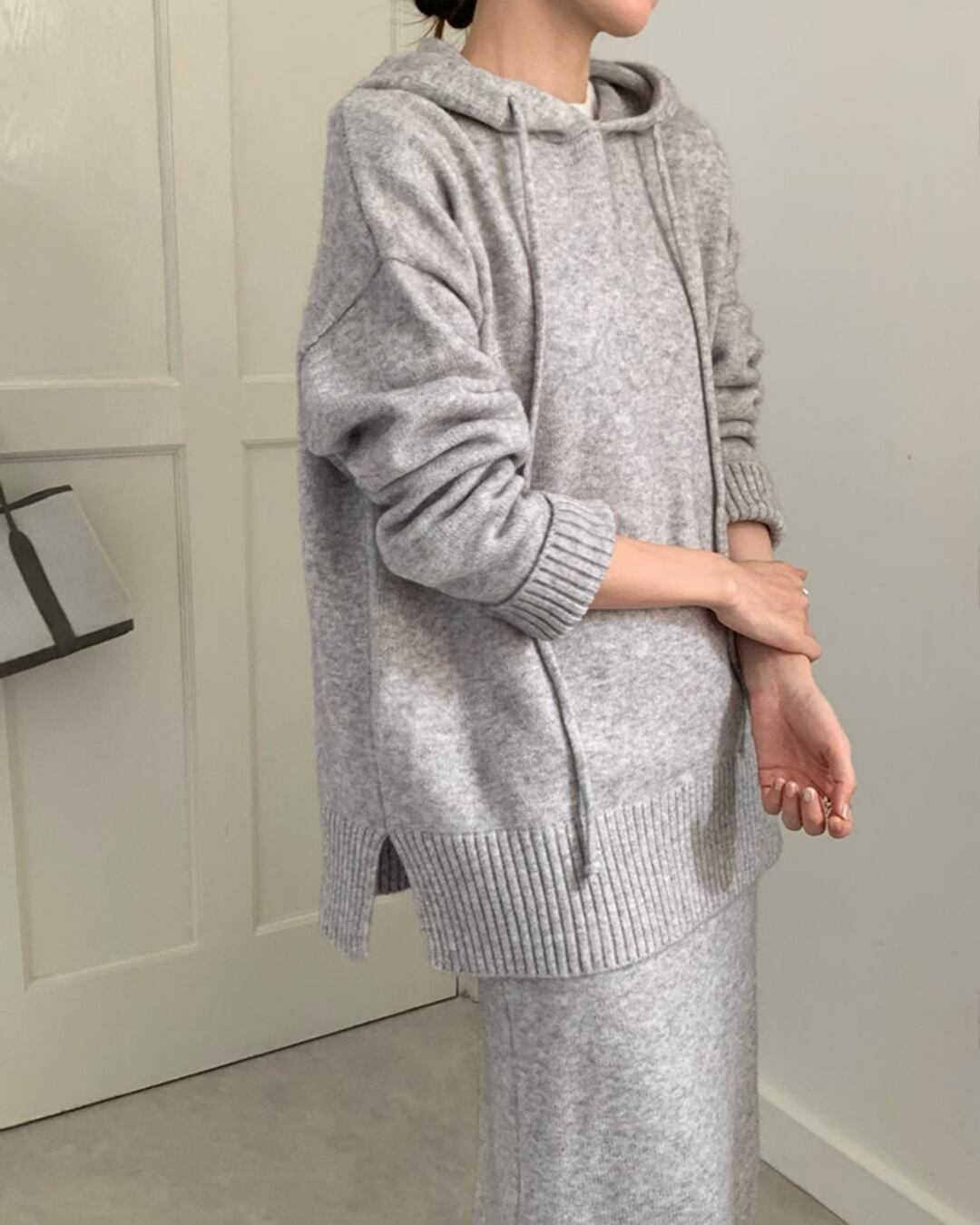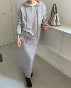 #ニットセットアップ #フーディー #ロングスカート #ウール混 #大人カジュアル