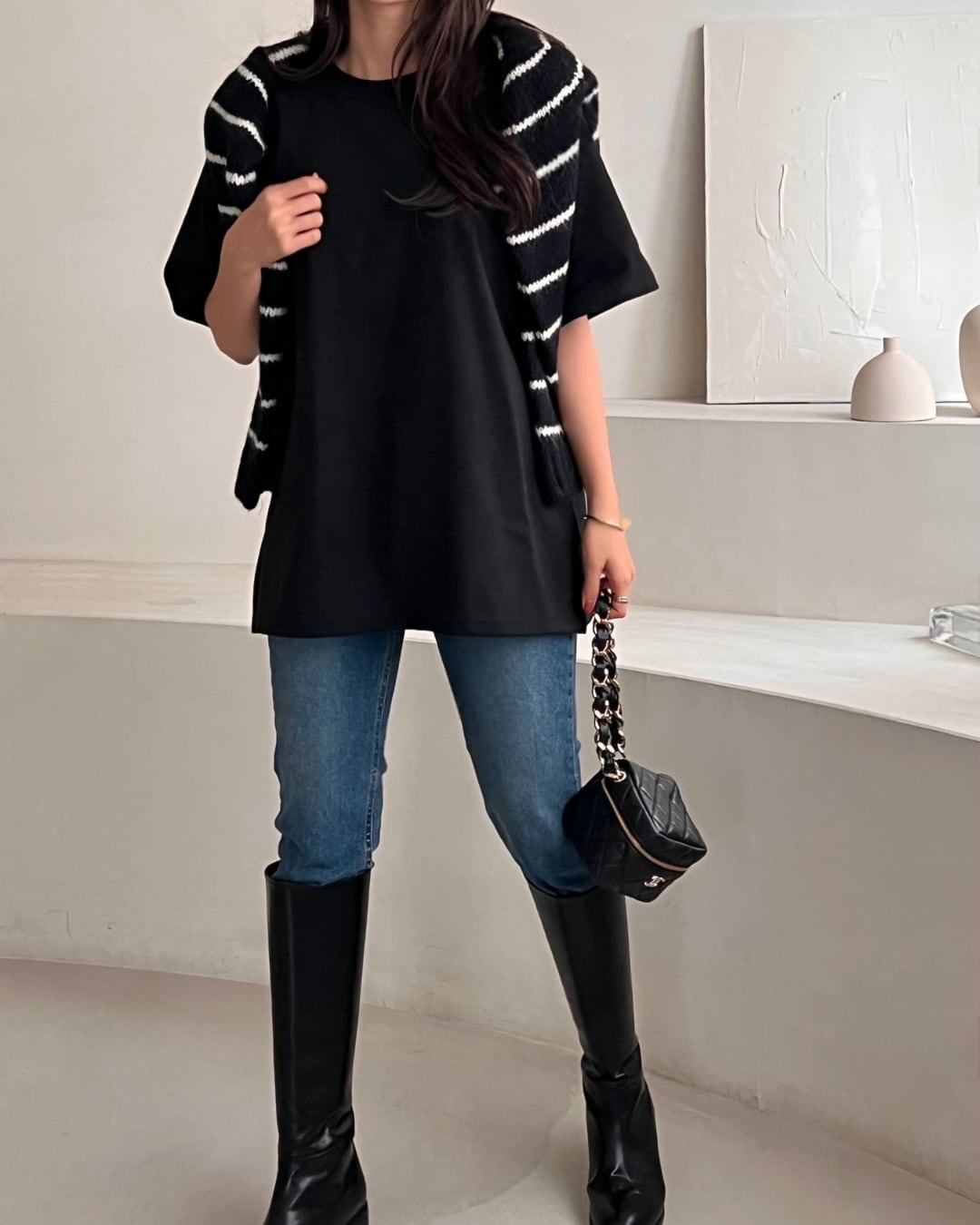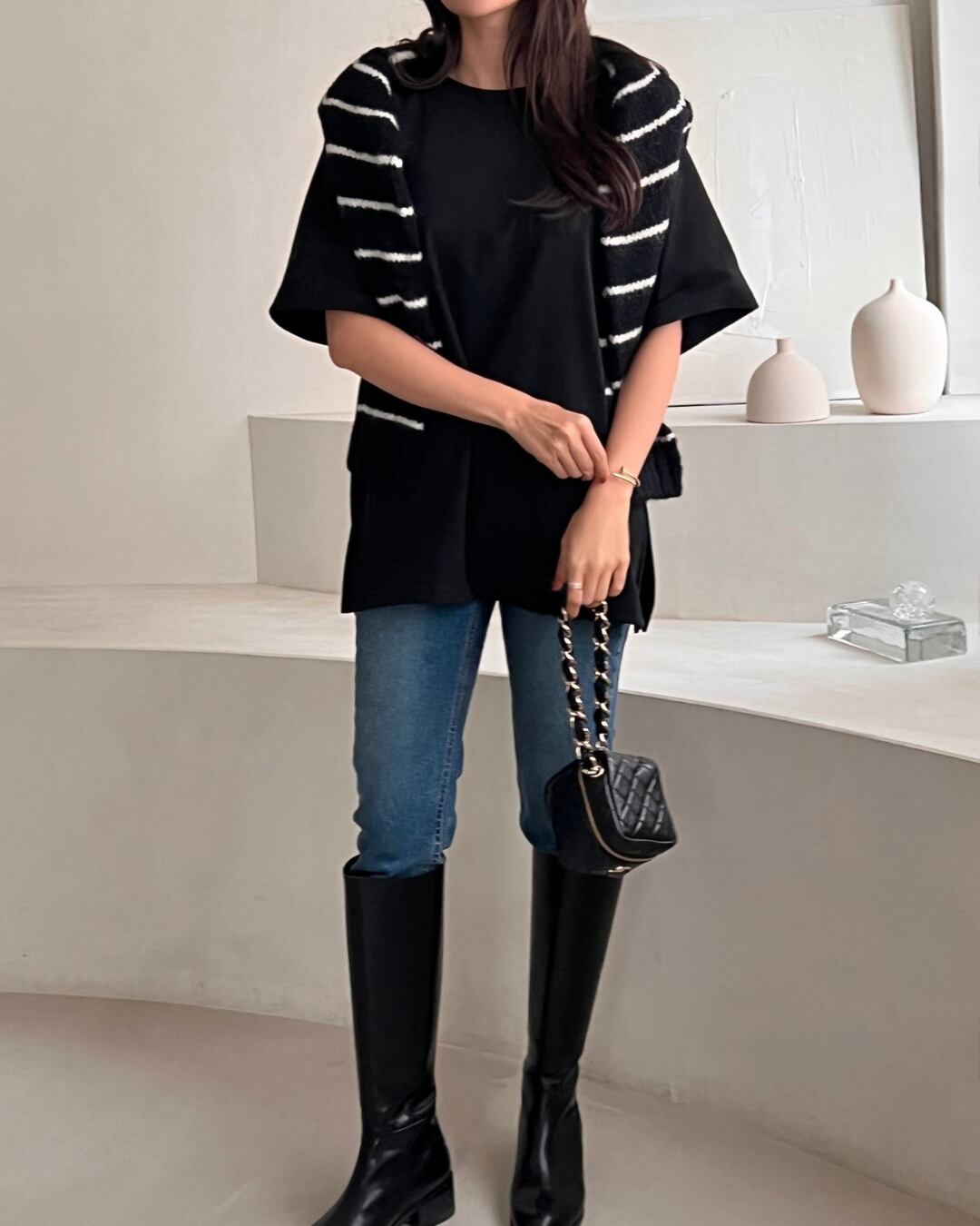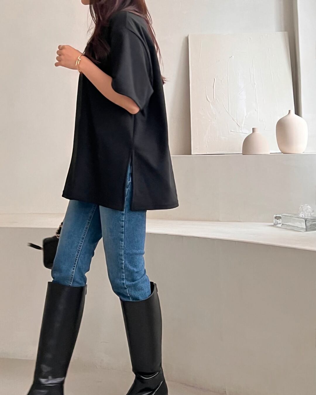 冬にぴったりの裏起毛素材で、暖かさと快適さを提供するラウンドネックTシャツ。シンプルでデイリー使いにも最適です。