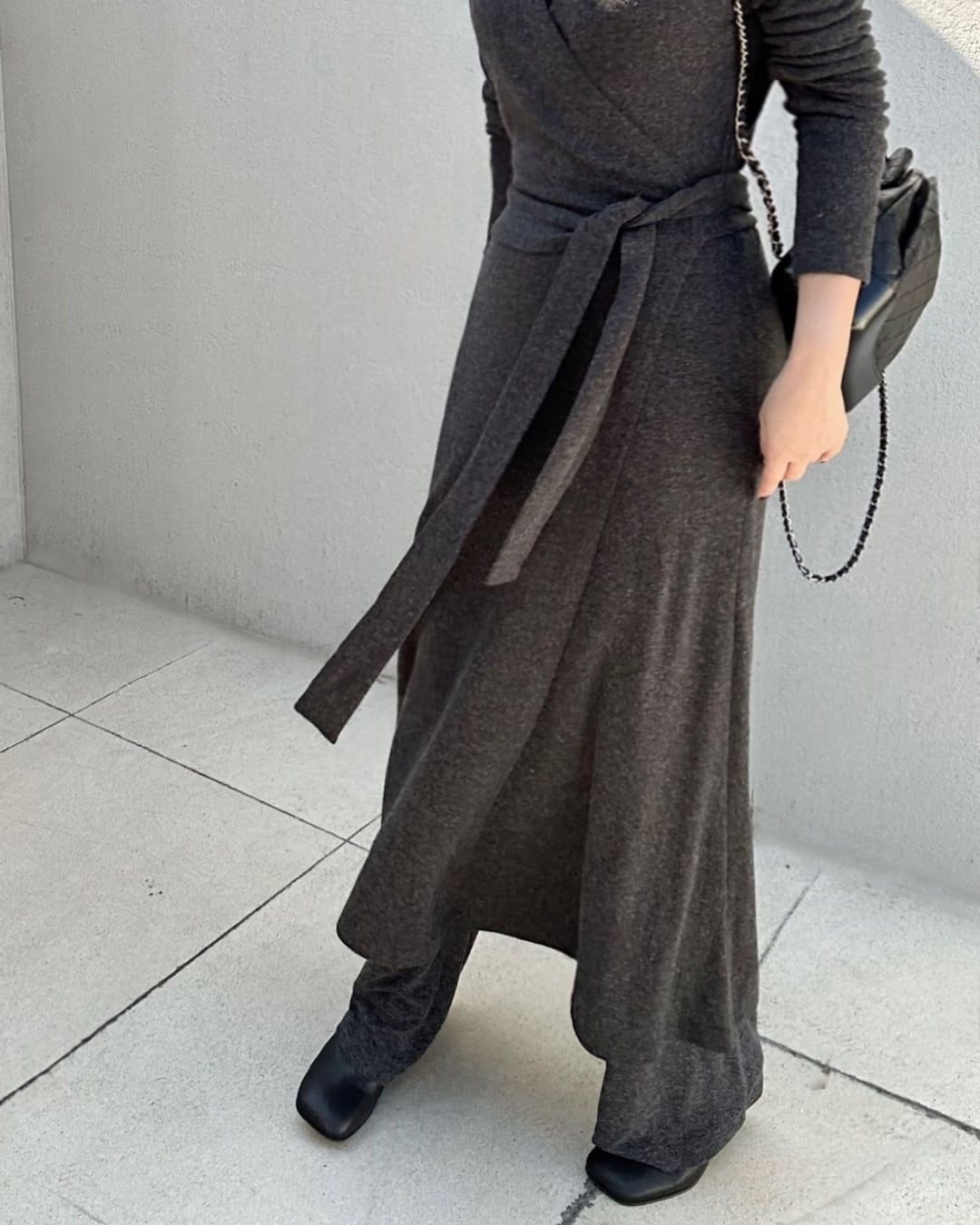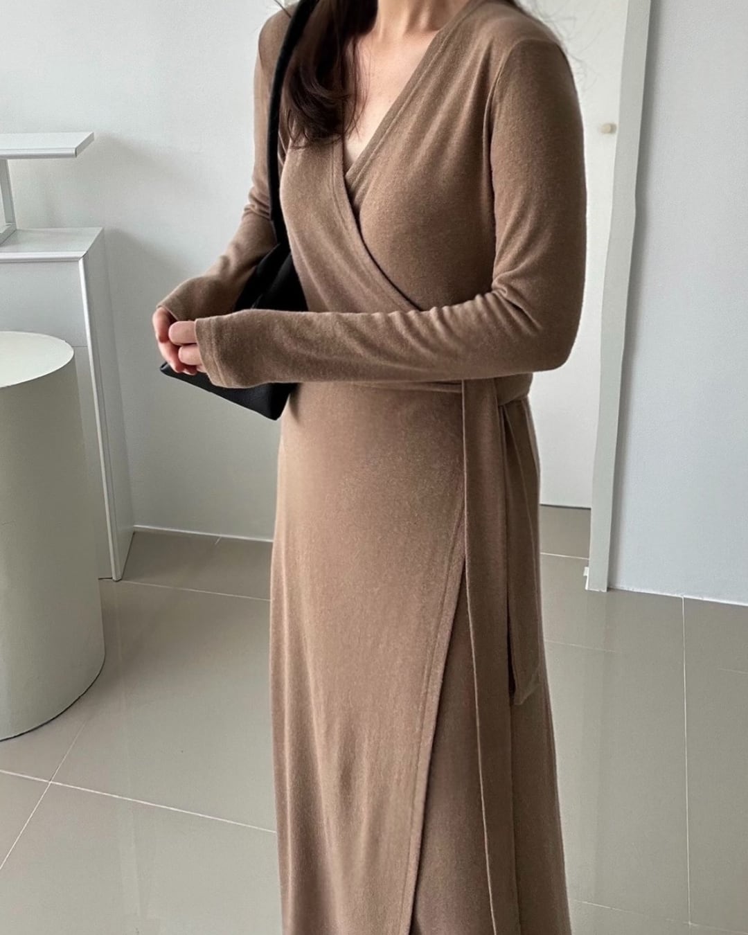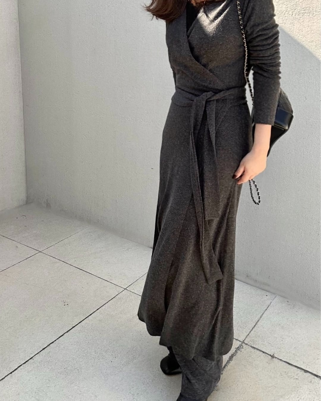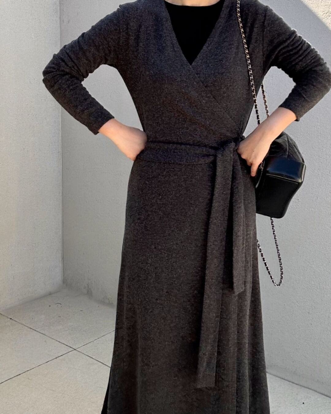 #ニットワンピース #ロングワンピース #ラップワンピース #アンゴラ混 #大人コーデ