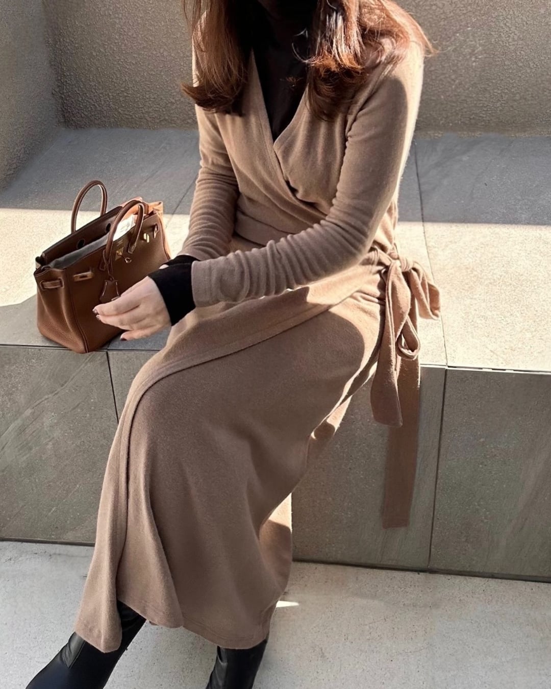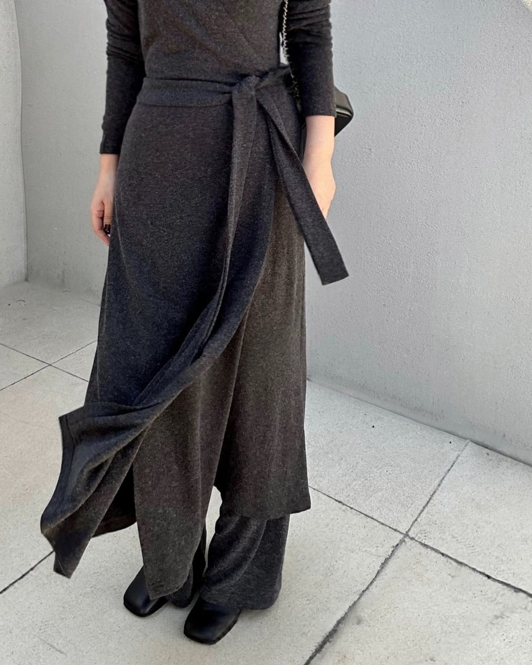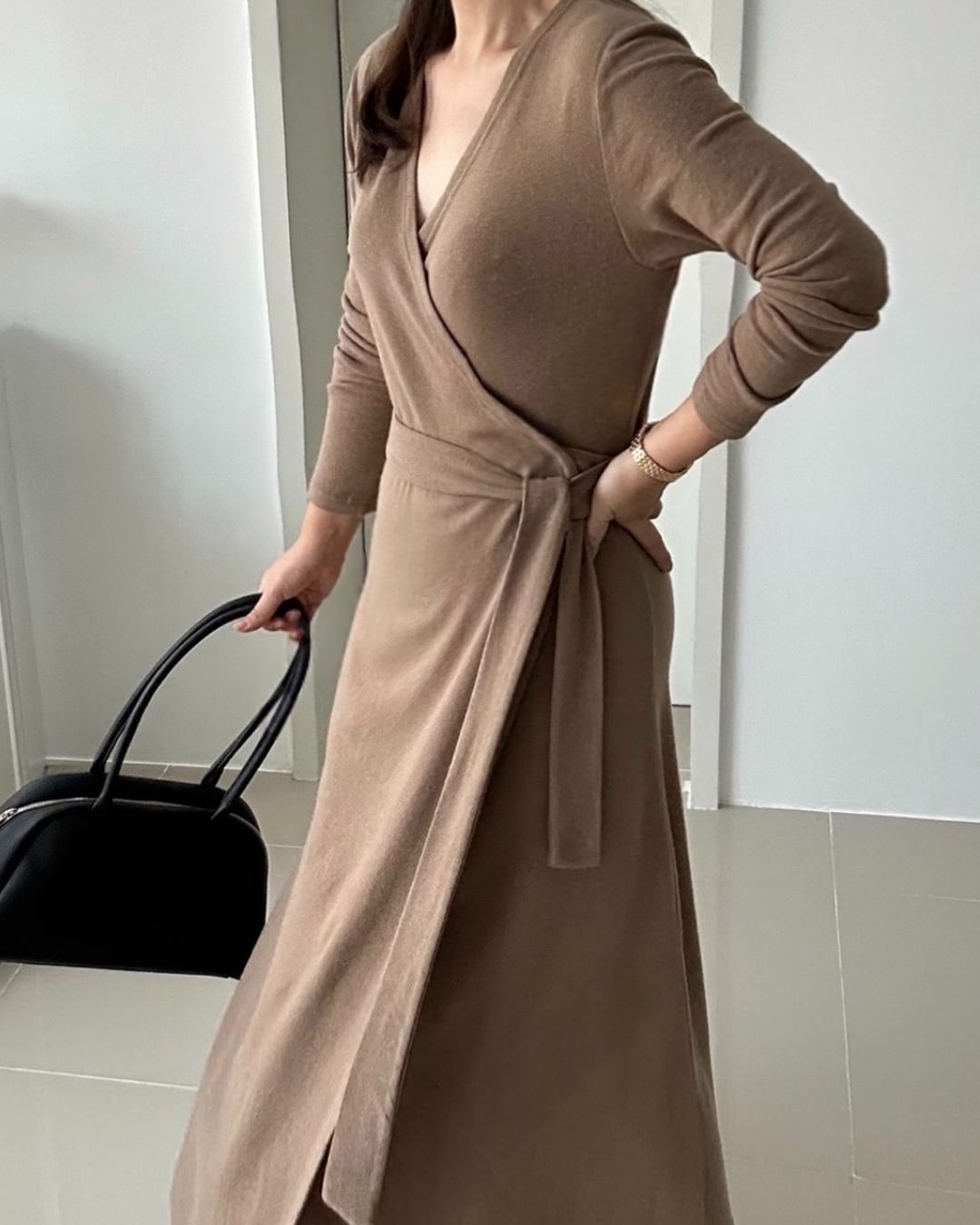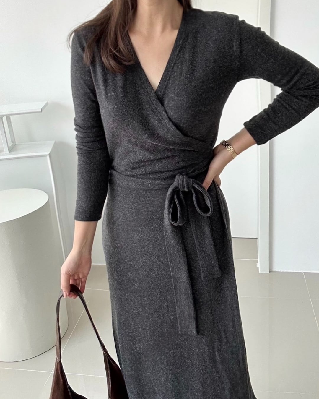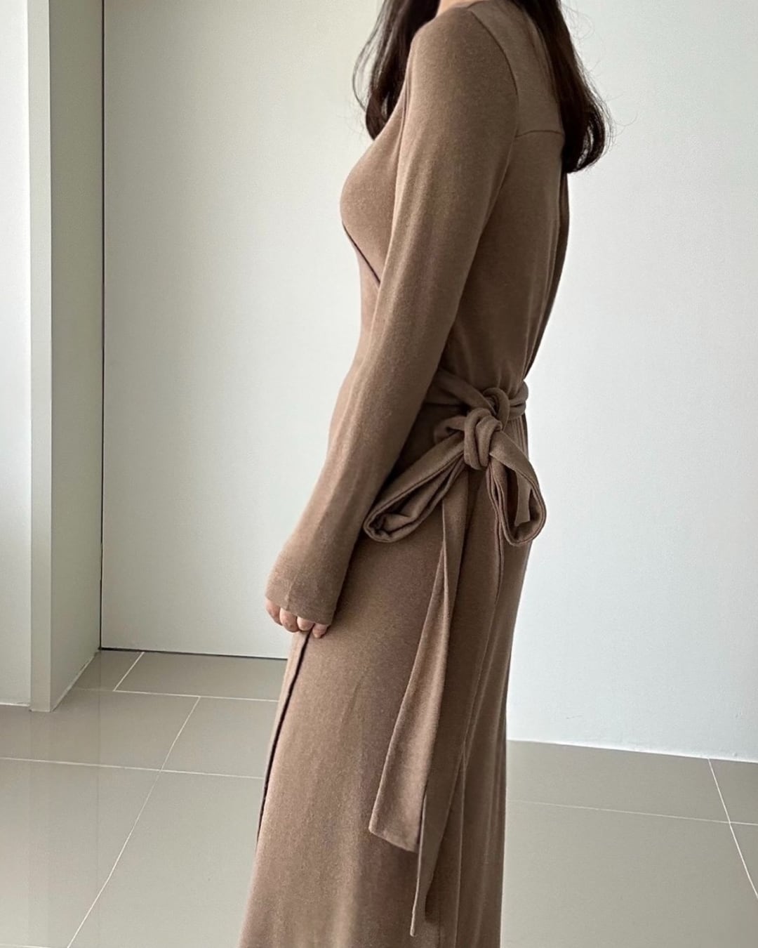 #ニットワンピース #ロングワンピース #ラップワンピース #アンゴラ混 #大人コーデ
