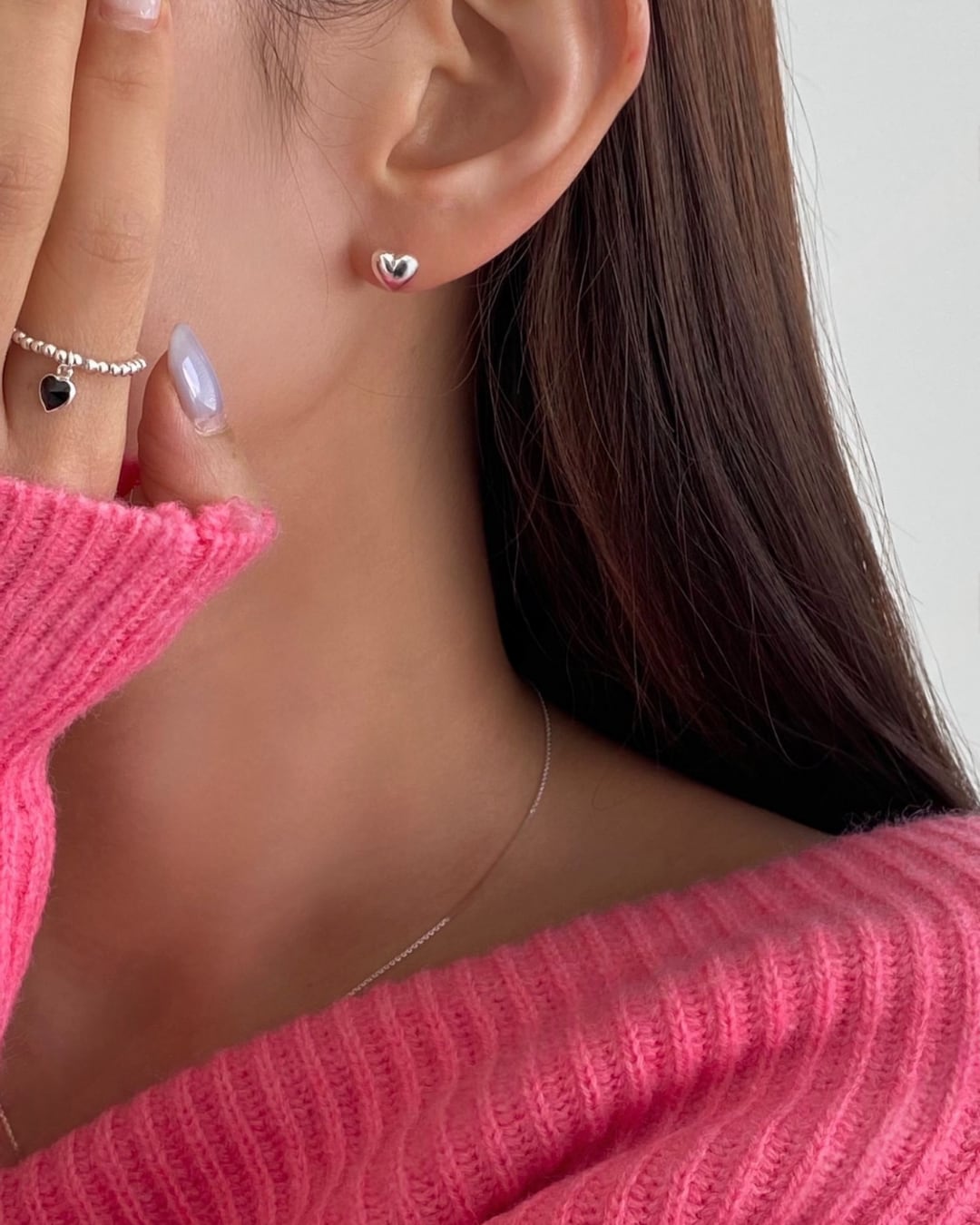 ころんとした立体的なハートモチーフが可愛らしいミニピアス。小ぶりながら艶のある質感で、耳元にさりげない華やかさをプラスします。シルバーとゴールドの2色展開で、デイリーからギフトにもおすすめのアイテムです。