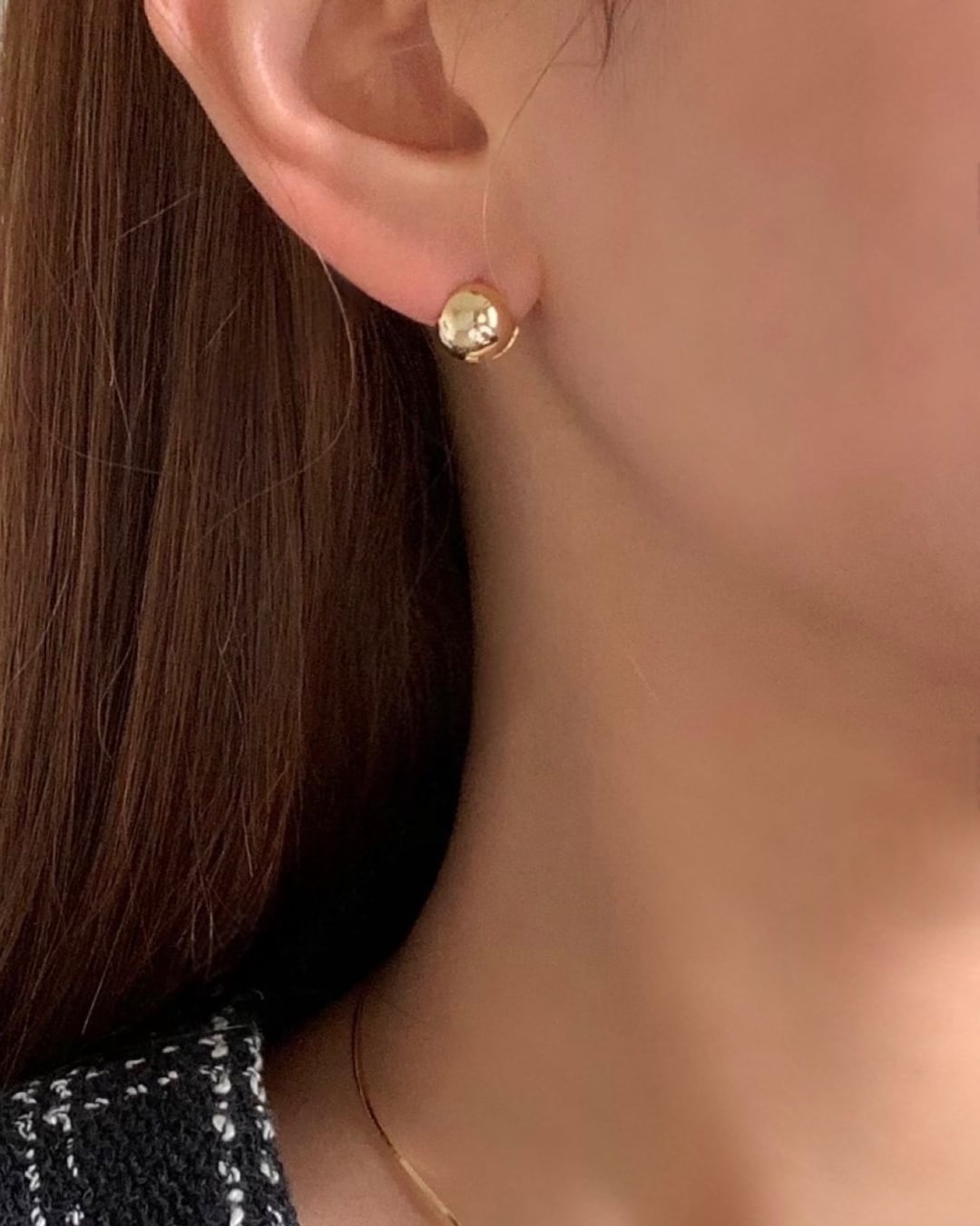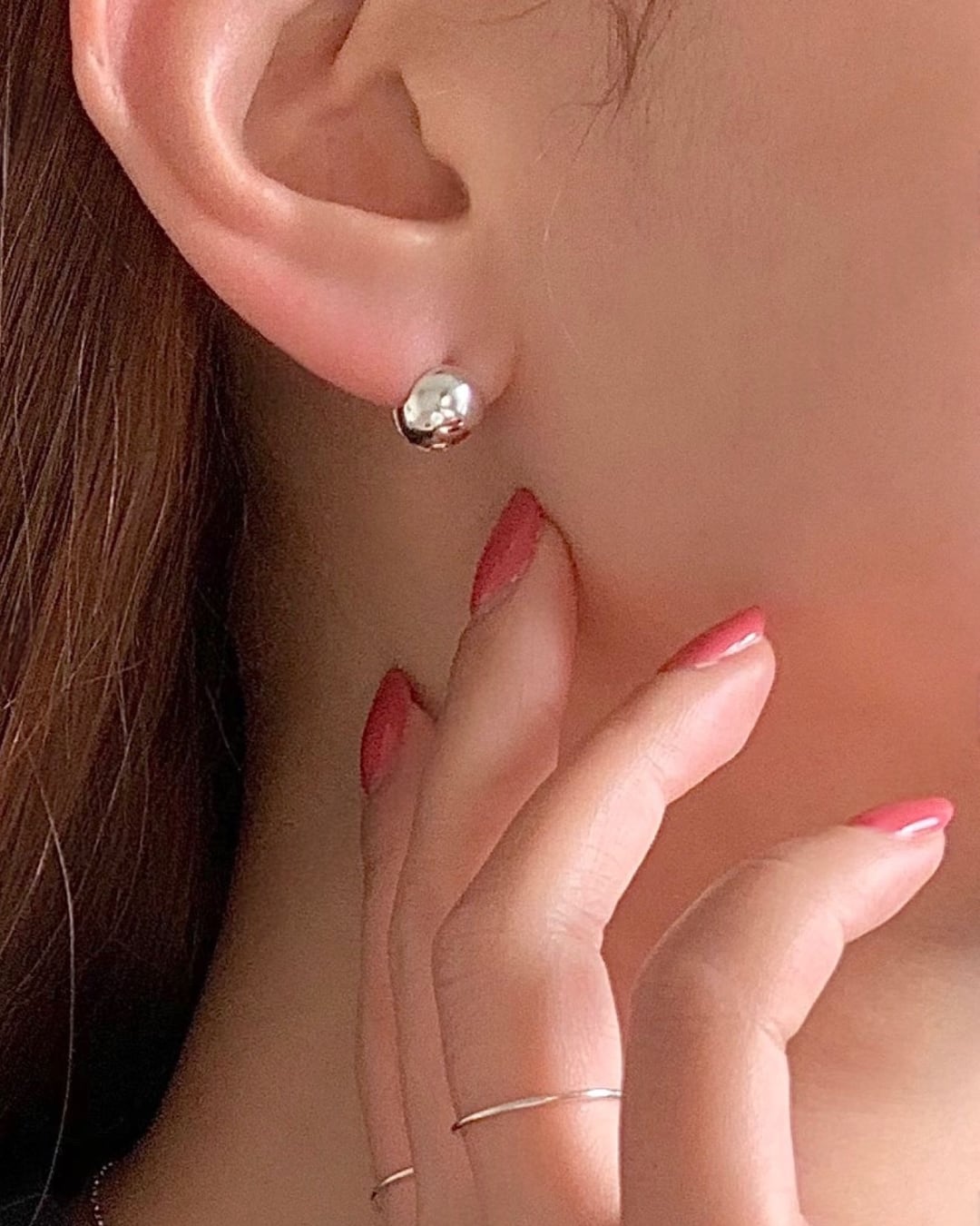 ころんとした丸みのあるボールデザインが特徴のワンタッチピアス。シルバー925素材を使用し、上品な艶感と程よい存在感を演出します。着脱しやすい仕様で、デイリーからきれいめスタイルまで幅広く活躍するアイテムです。