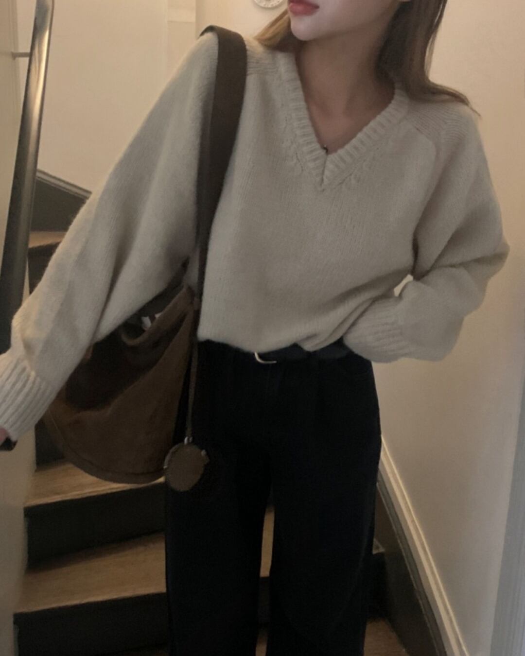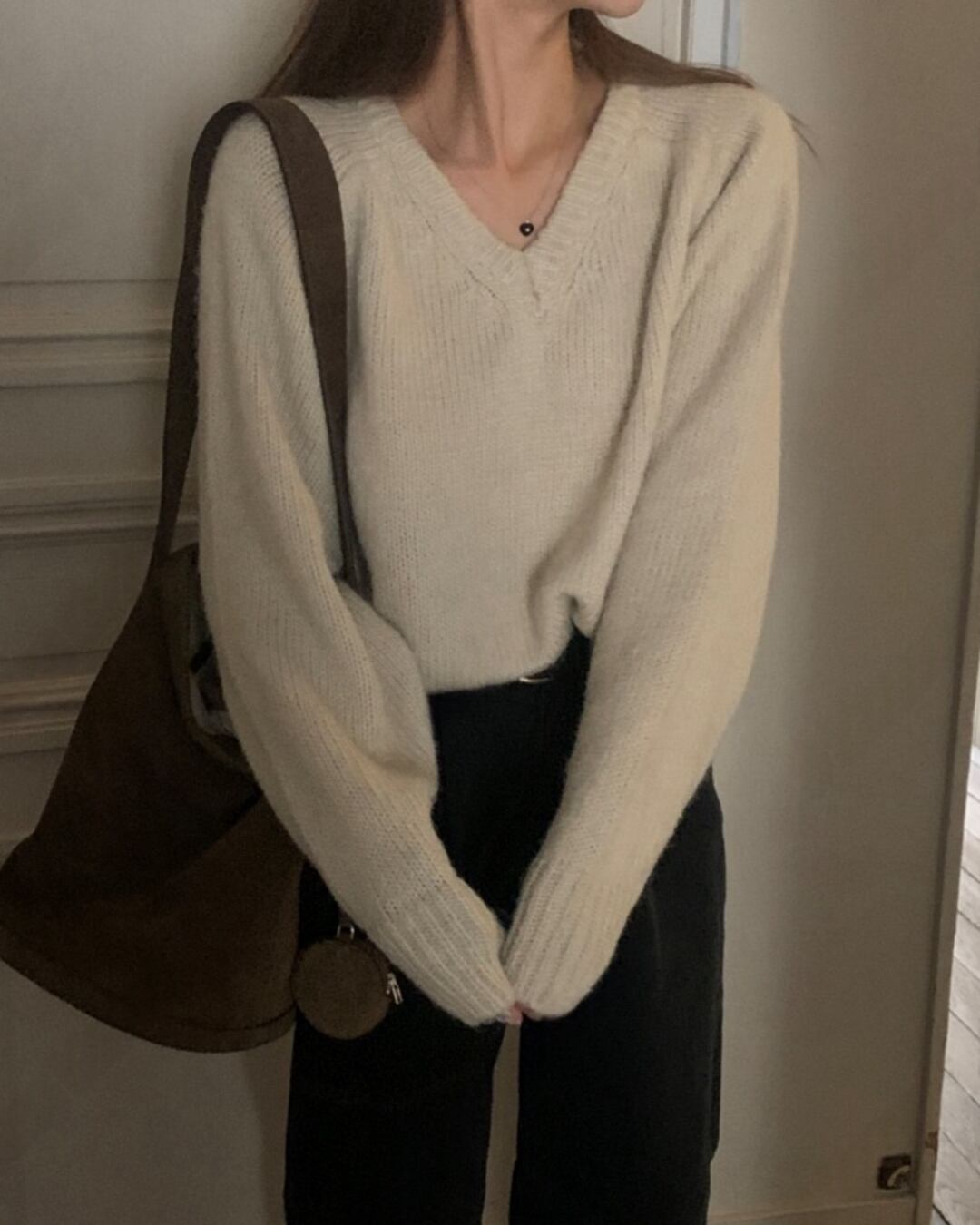 #モヘアニット #Vネックニット #秋冬ニット #大人カジュアル #レイヤードコーデ