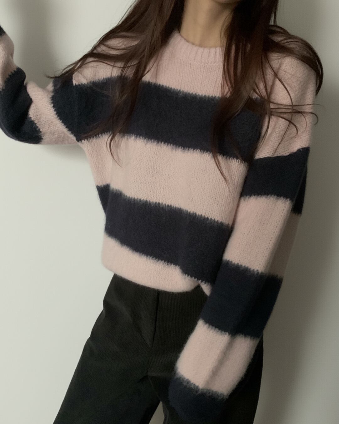 ふんわりとしたアルパカ素材を使用したボーダーニットプルオーバー。柔らかな肌触りと軽い着心地が魅力で、シンプルながら存在感のある配色がコーデのアクセントに。程よい丈感でパンツにもスカートにも合わせやすい一枚です。