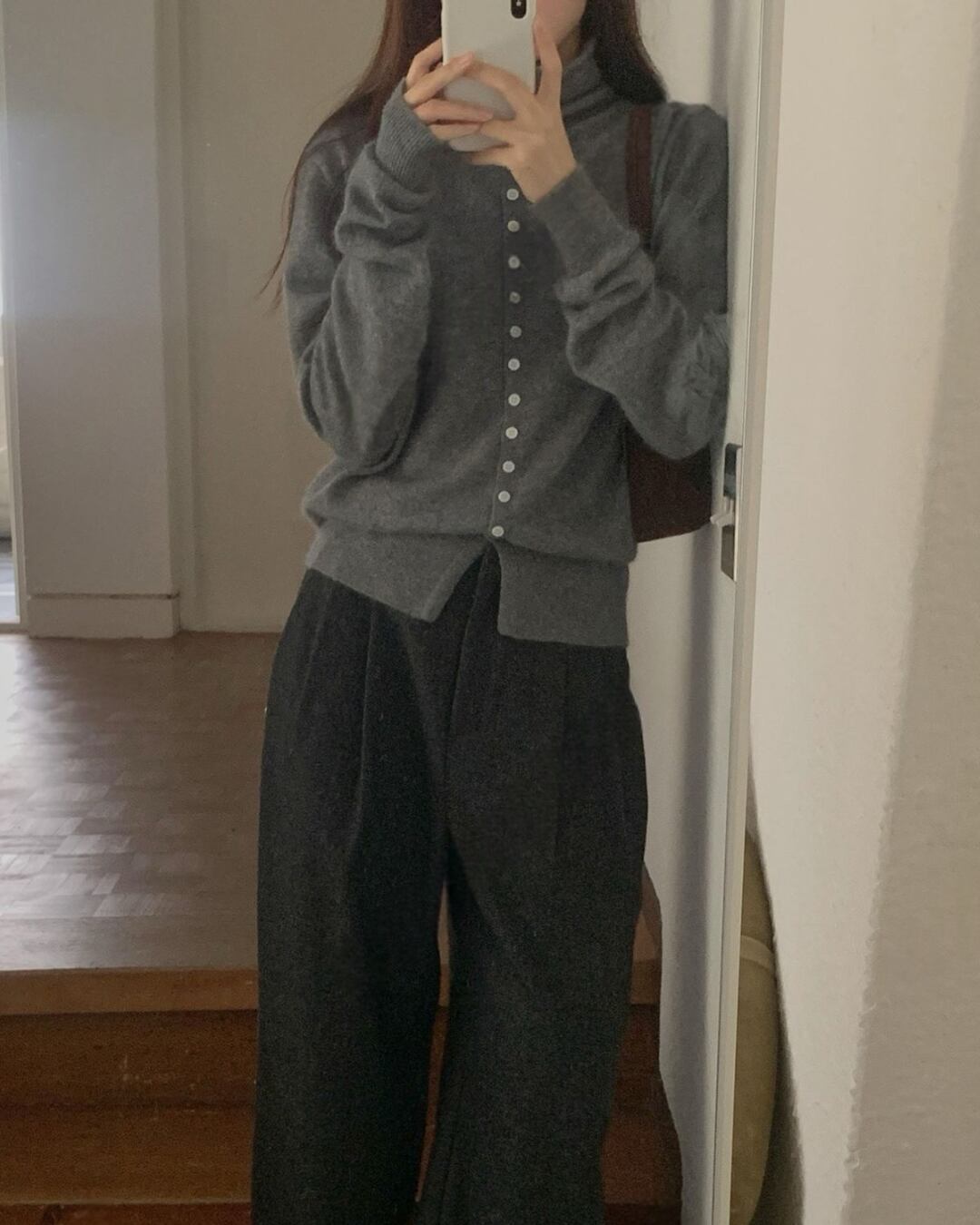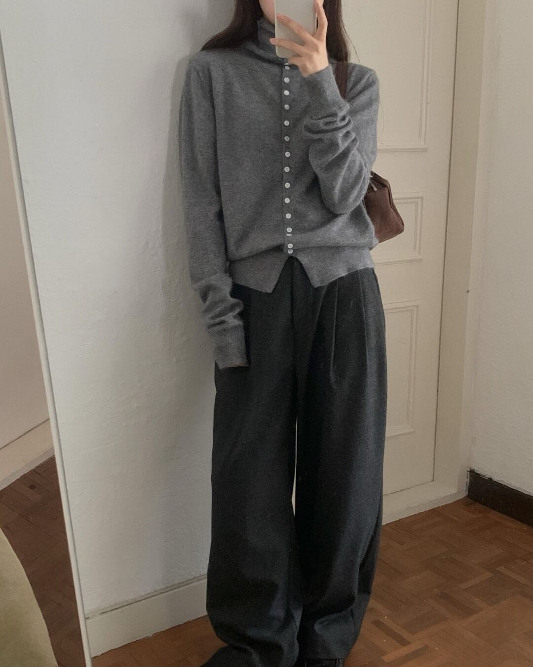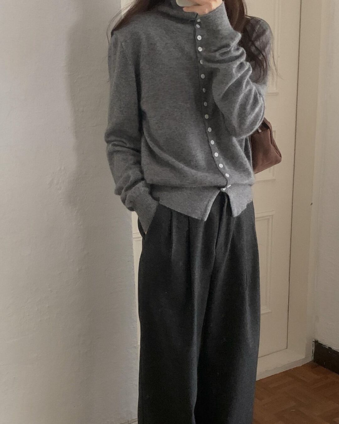#ニット #ラクーンニット #ハイネック #カーディガン #秋冬コーデ