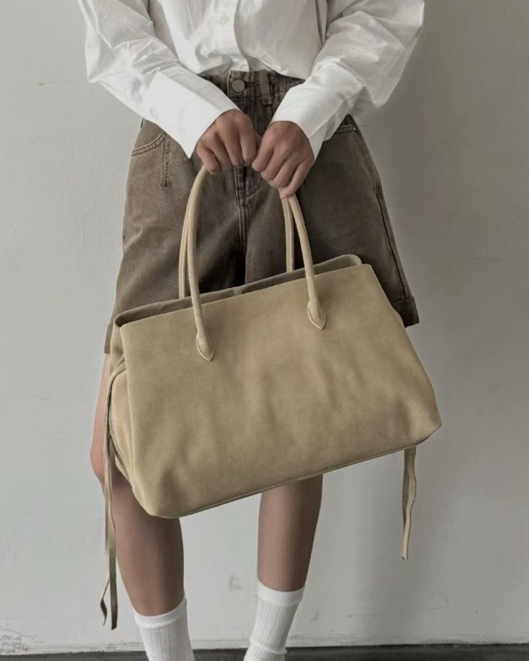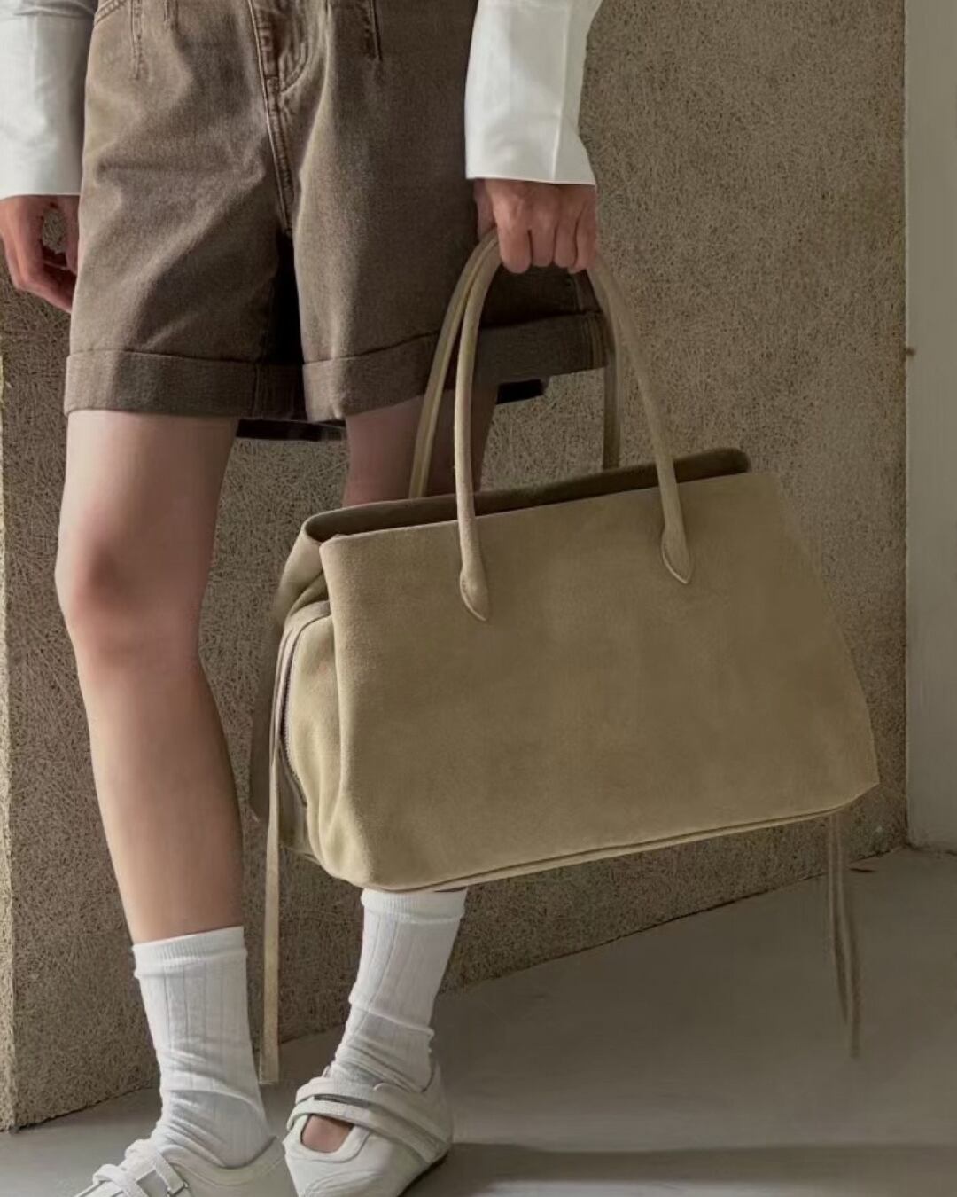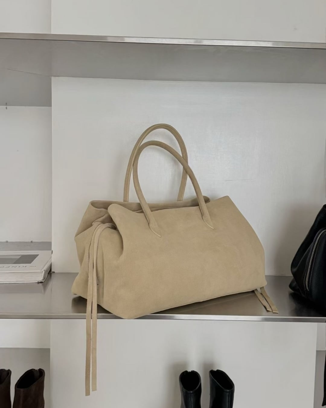 上品な風合いの天然スエードレザーを使用した、ミニマルデザインのスクエアショルダーバッグ。柔らかな質感と落ち着いたカラー展開で、コーディネートに自然に馴染みつつ洗練された印象を与えます。程よいサイズ感で、デイリーに必要な荷物をしっかり収納可能。カジュアルからきれいめまで幅広いスタイリングに対応する、大人のための万能バッグです。