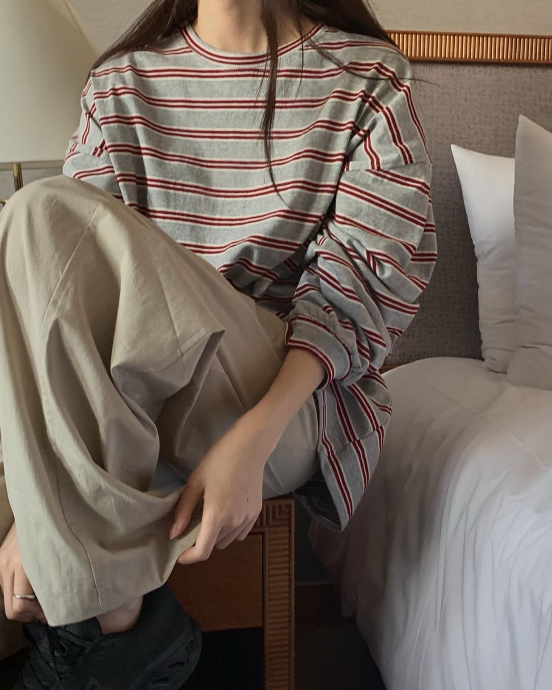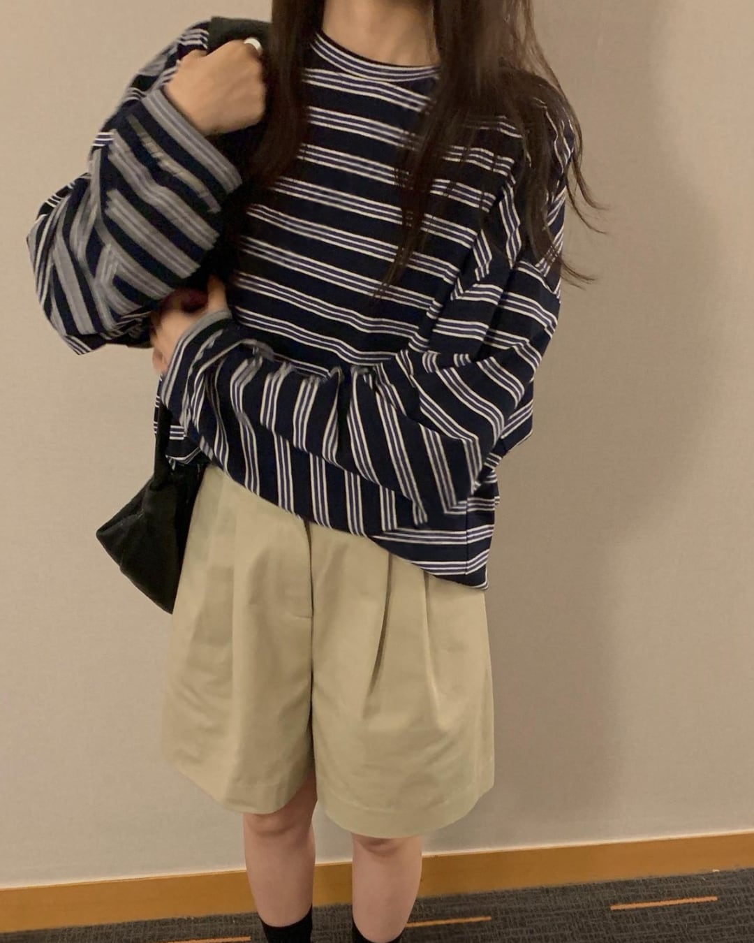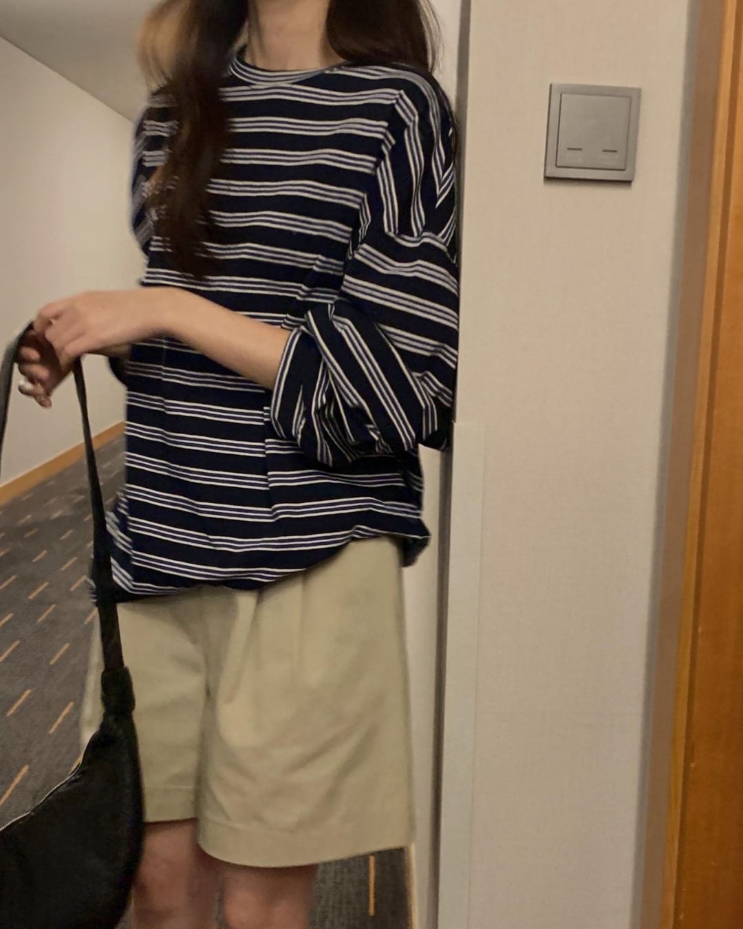 #ボーダーT #ロングTシャツ #コットントップス #デイリーコーデ #カジュアルコーデ