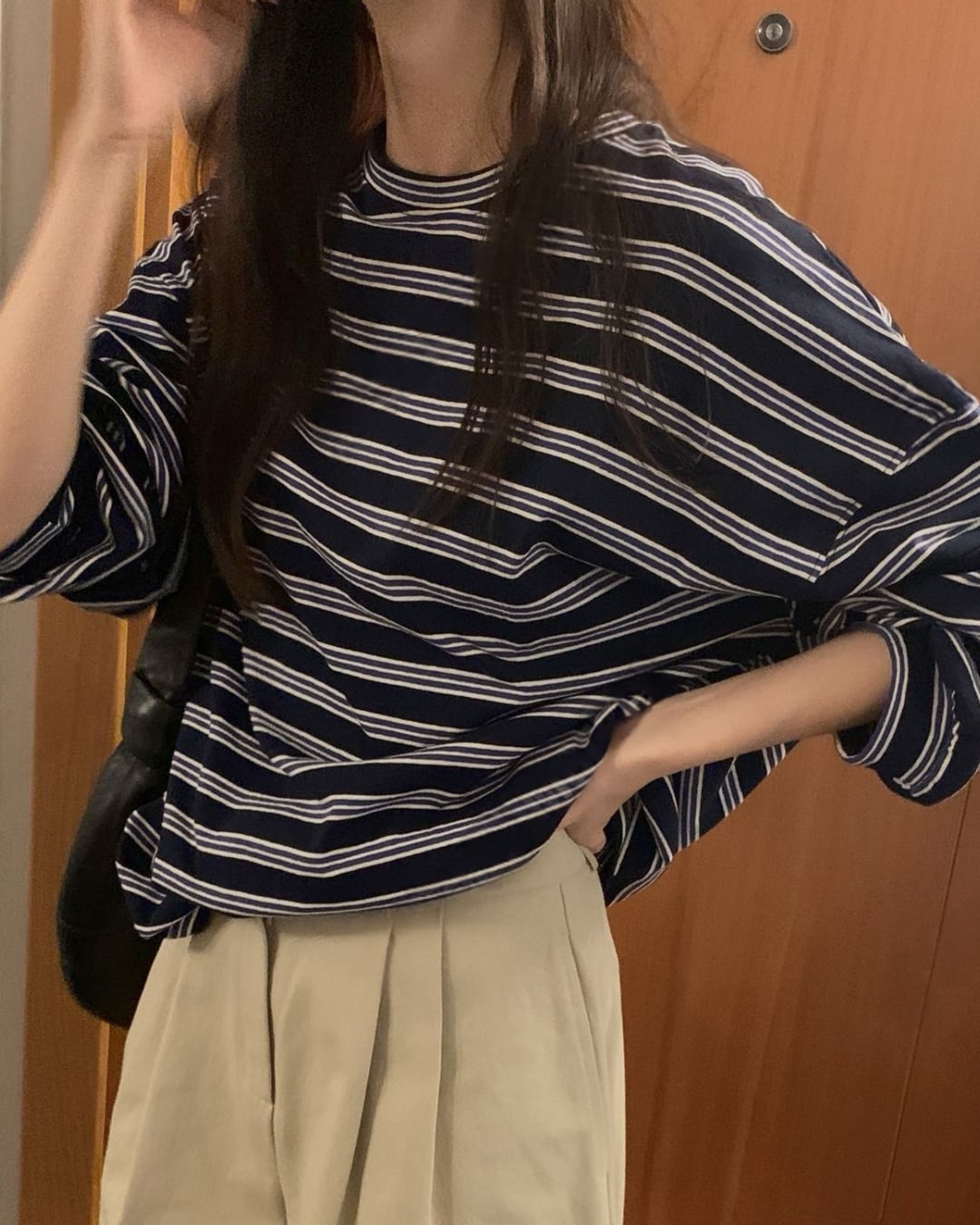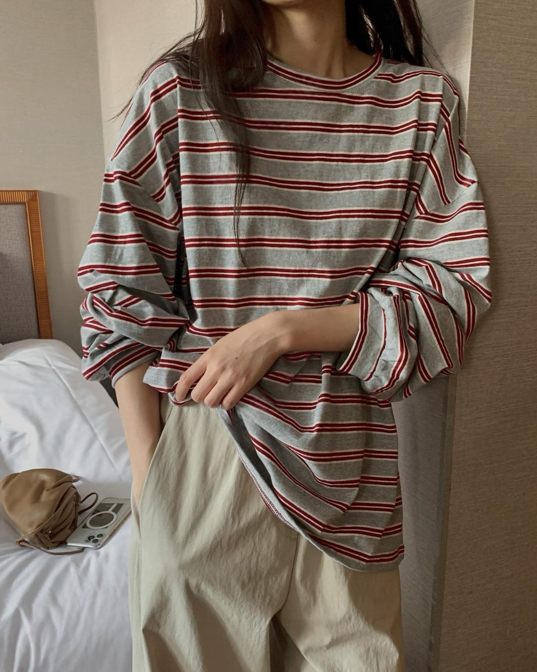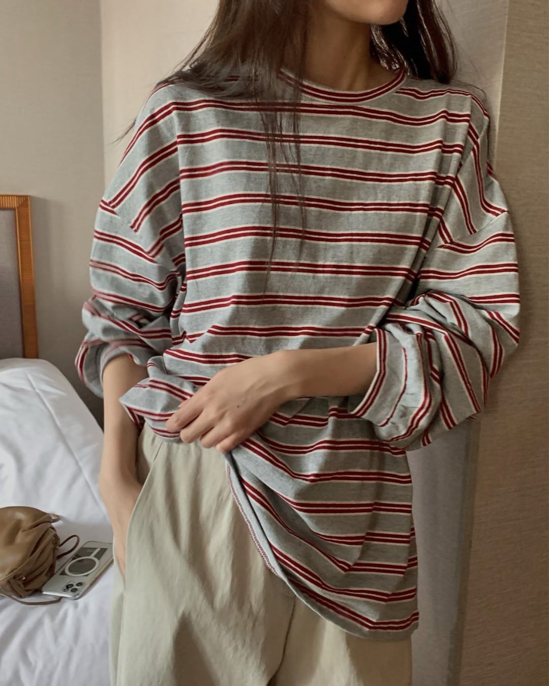 #ボーダーT #ロングTシャツ #コットントップス #デイリーコーデ #カジュアルコーデ
