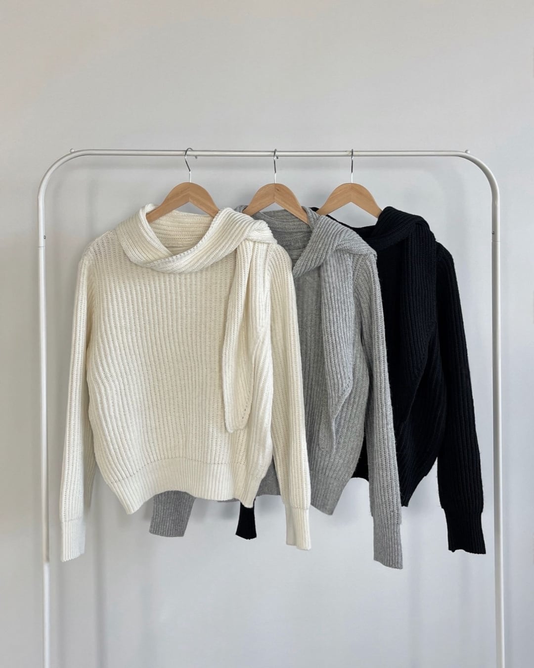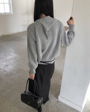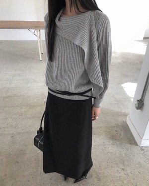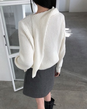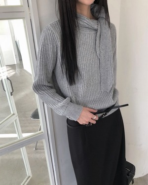 マフラーを巻いたようなデザインが目を引くマフラードッキングニット。首元に自然なボリュームが生まれ、防寒性とデザイン性を兼ね備えた一枚です。シンプルながらも存在感があり、スカートやパンツと合わせるだけで洗練された冬コーデが完成します。