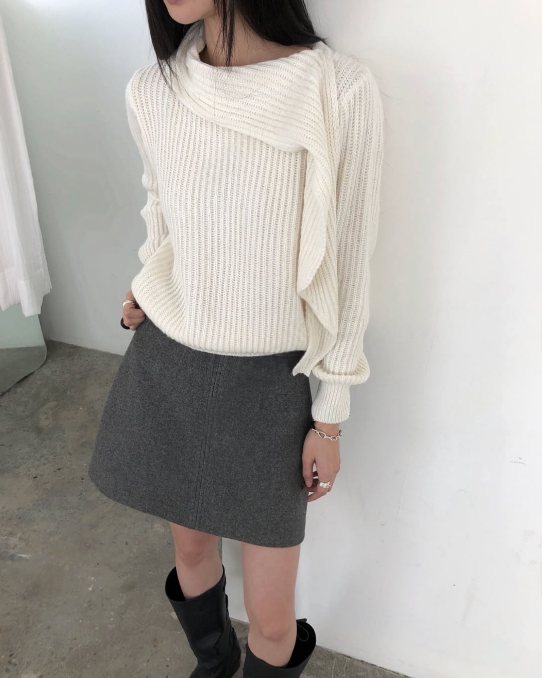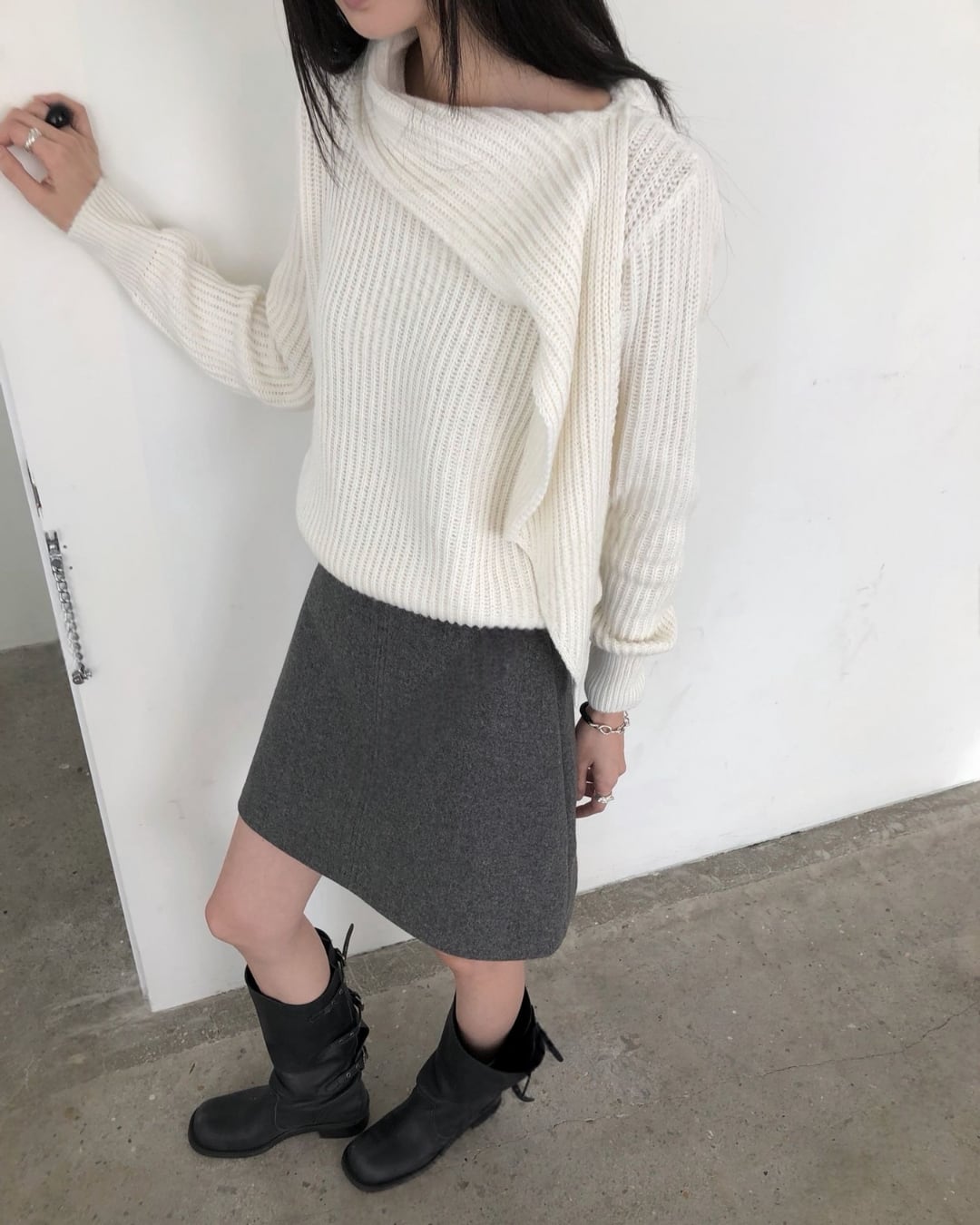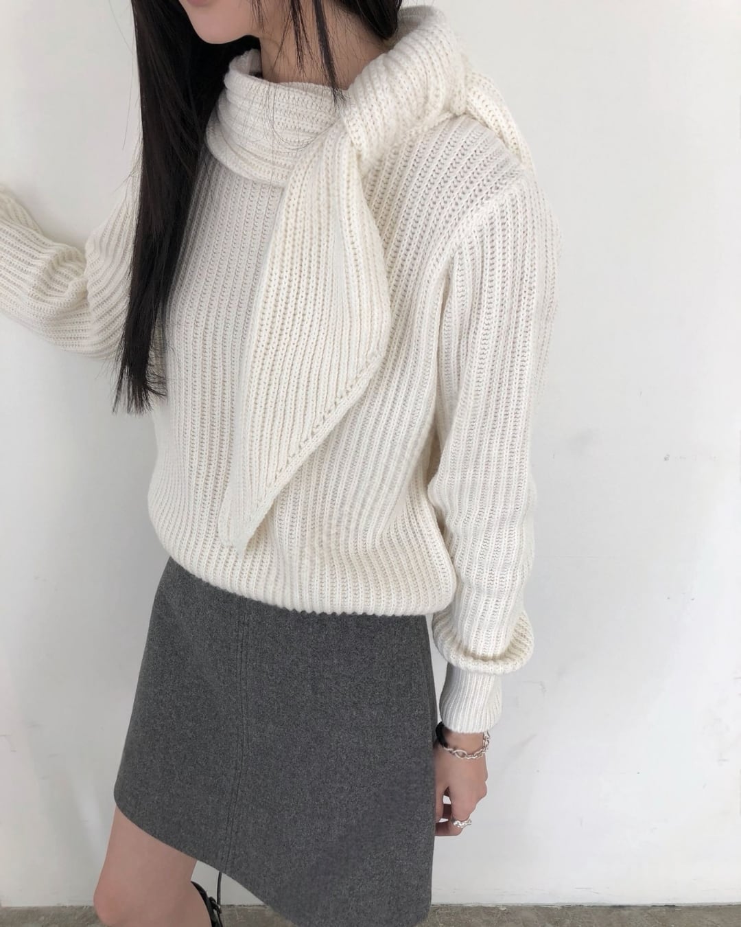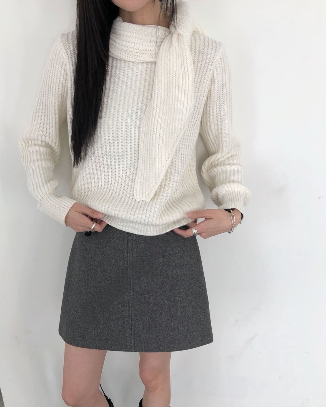 #マフラーニット #ドッキングニット #冬ニット #大人カジュアル #シンプルコーデ