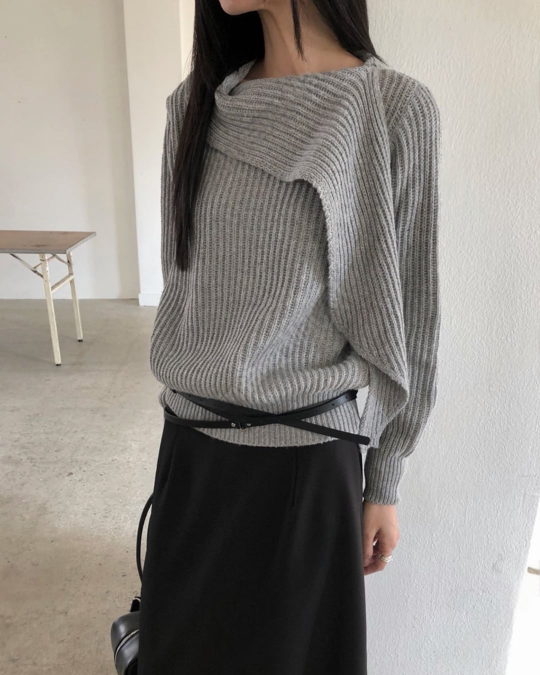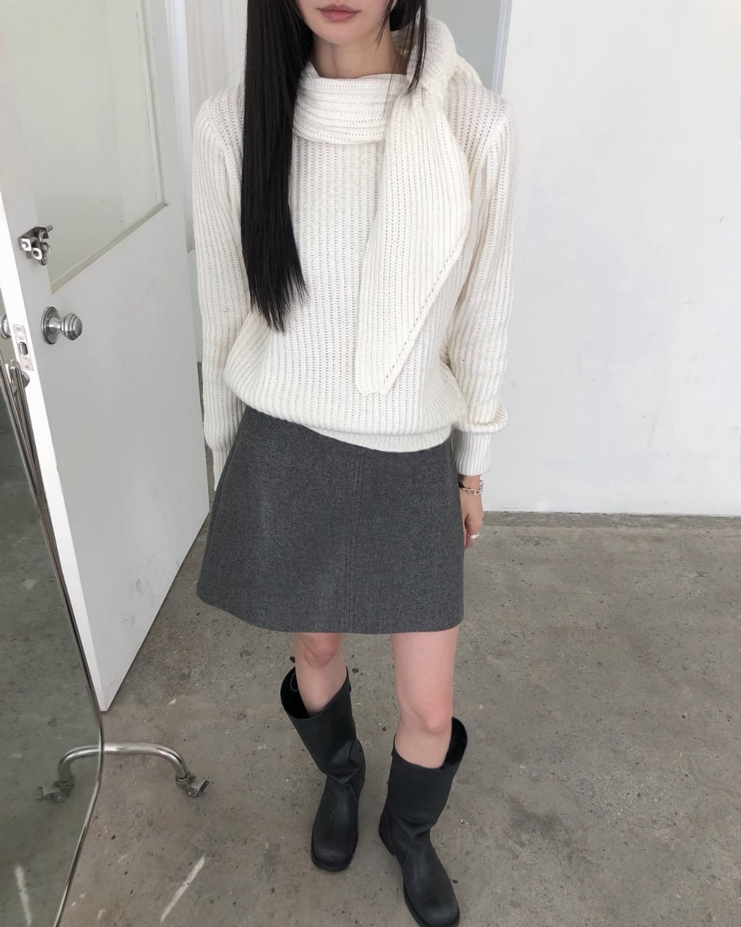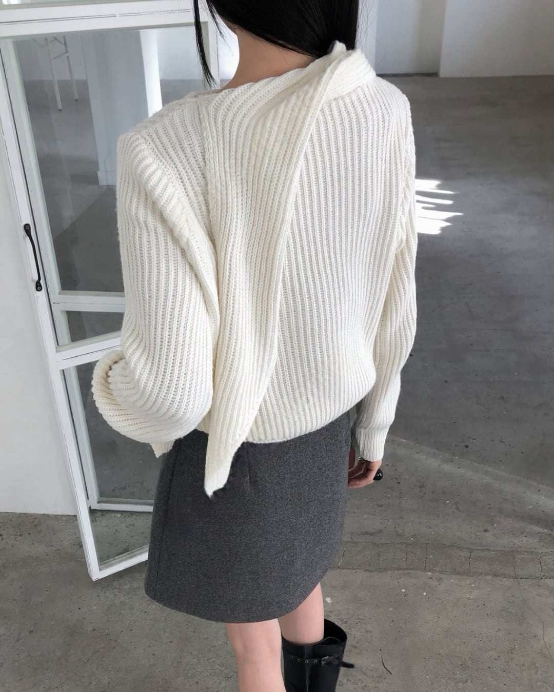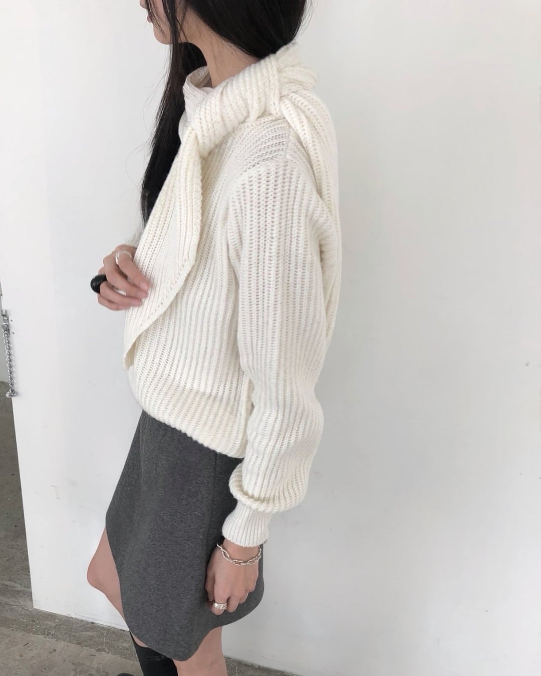 #マフラーニット #ドッキングニット #冬ニット #大人カジュアル #シンプルコーデ